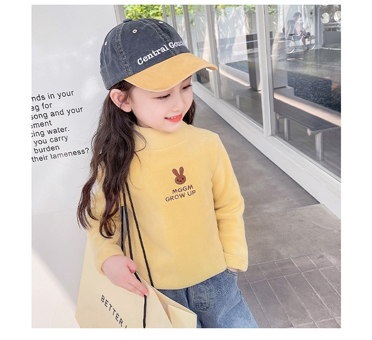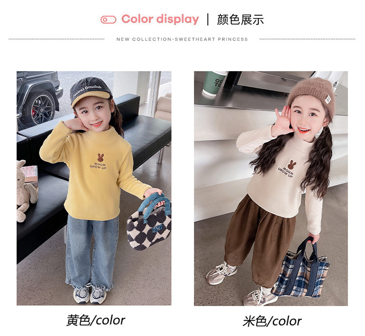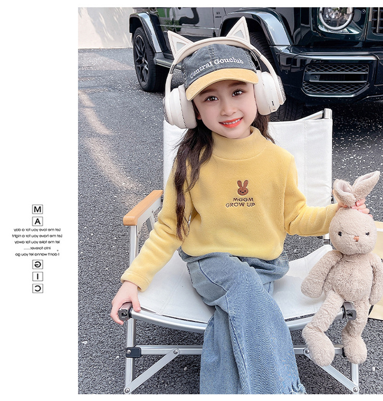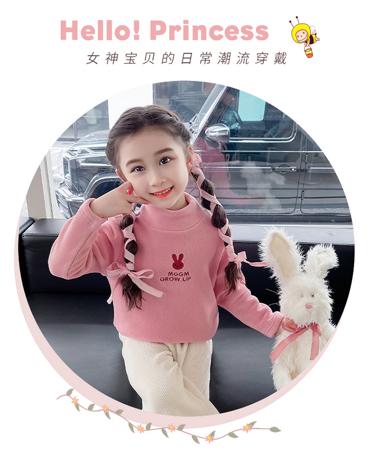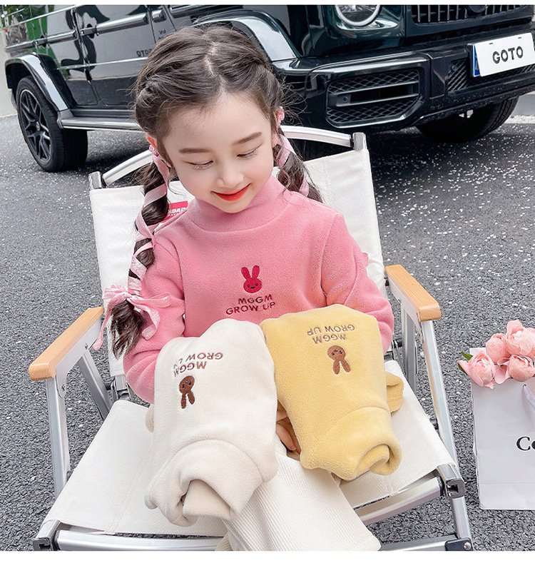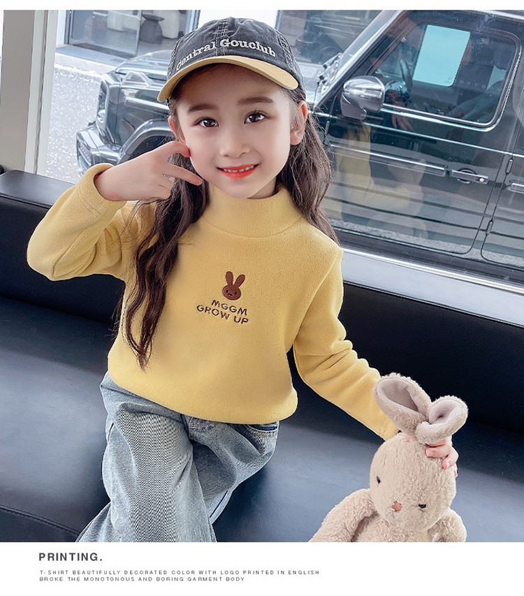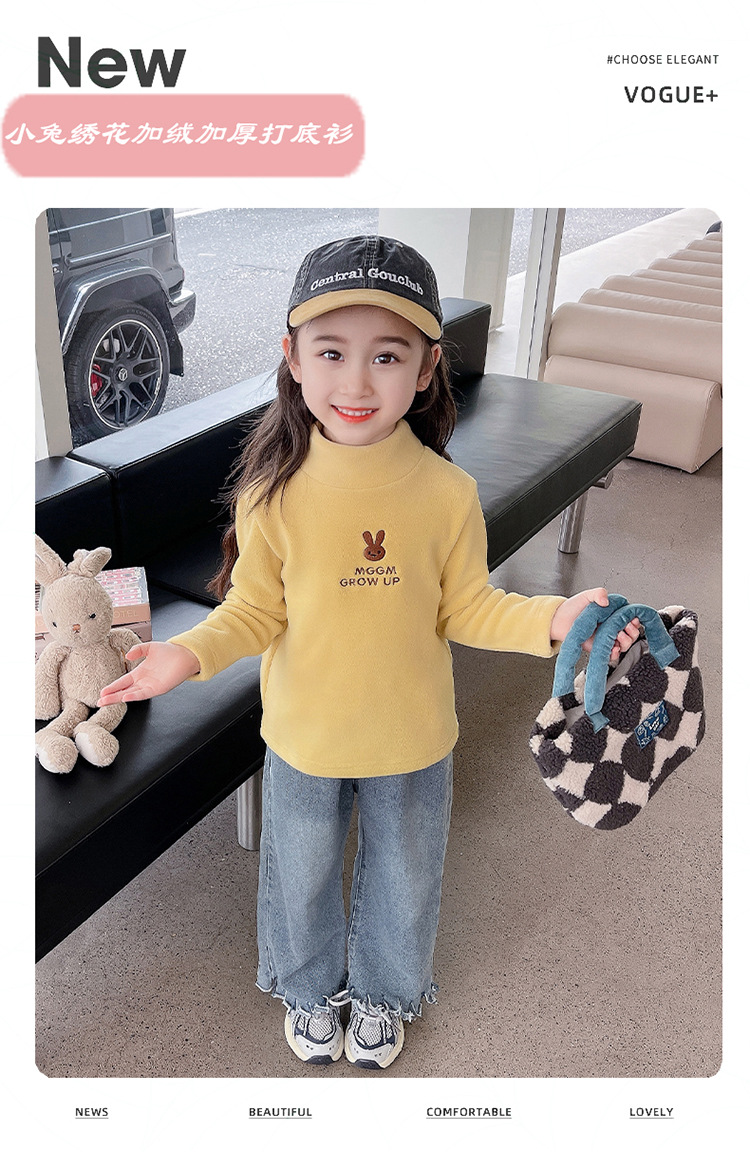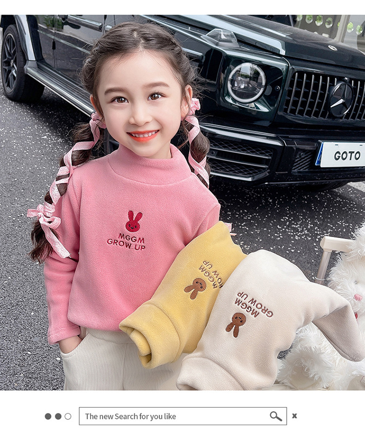 소녀 기모 만화베이스 셔츠 가을과 겨울 2024 새로운 어린이 따뜻한 탑 아기의 겨울 두꺼운 내복스토어 가기