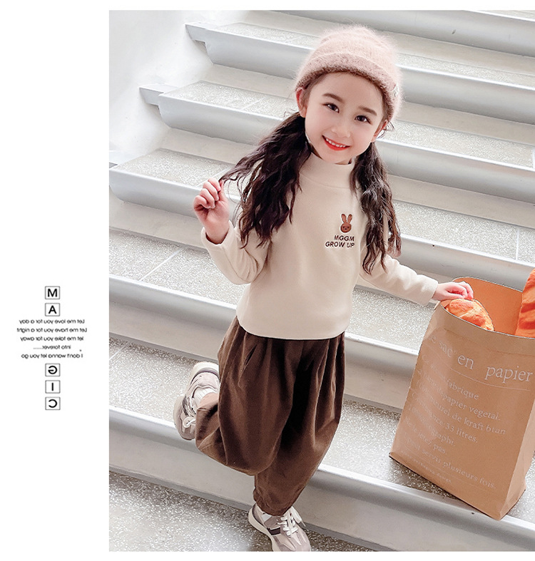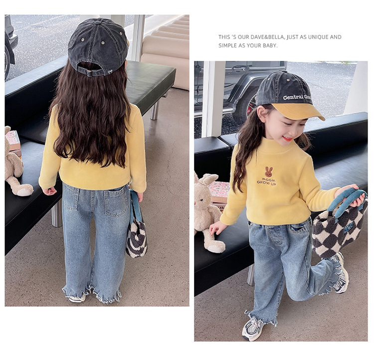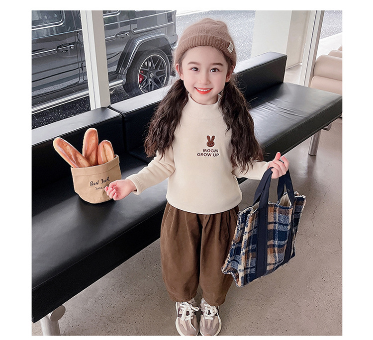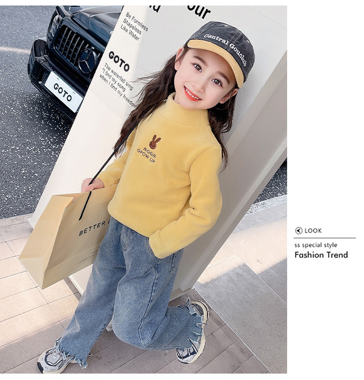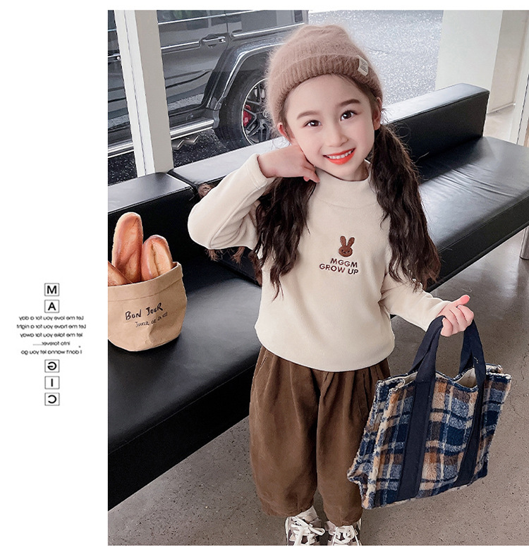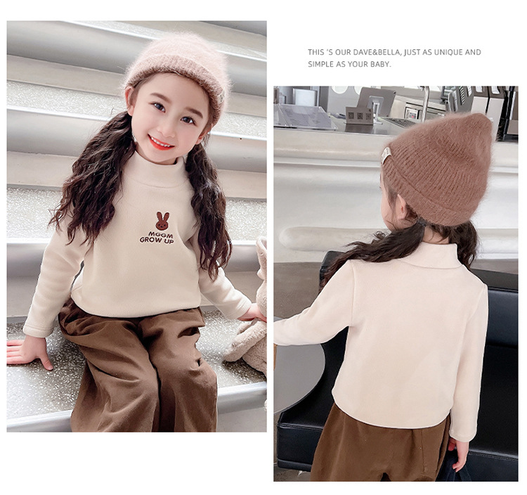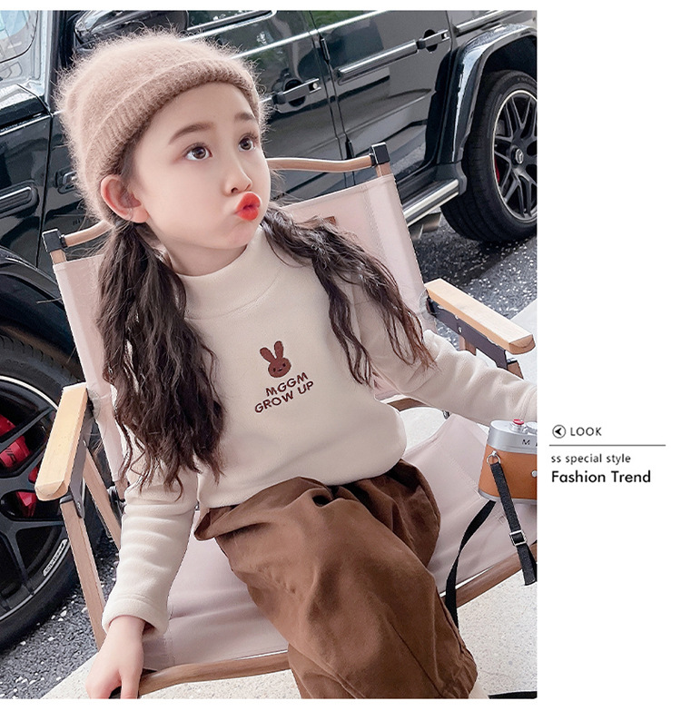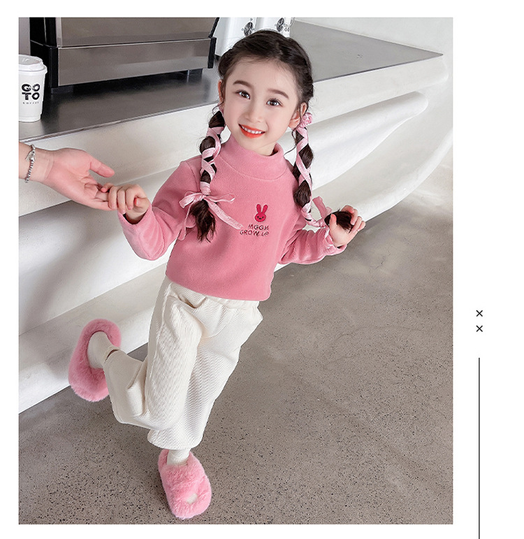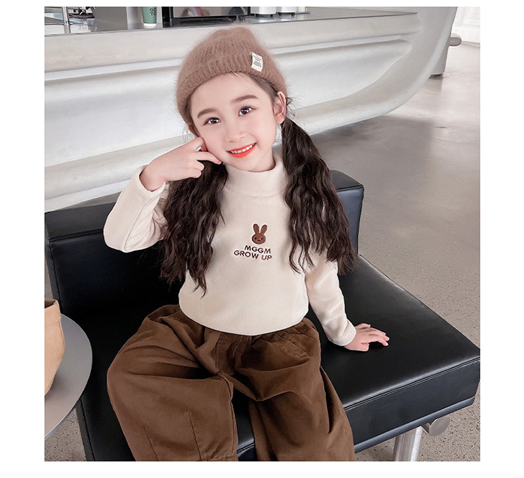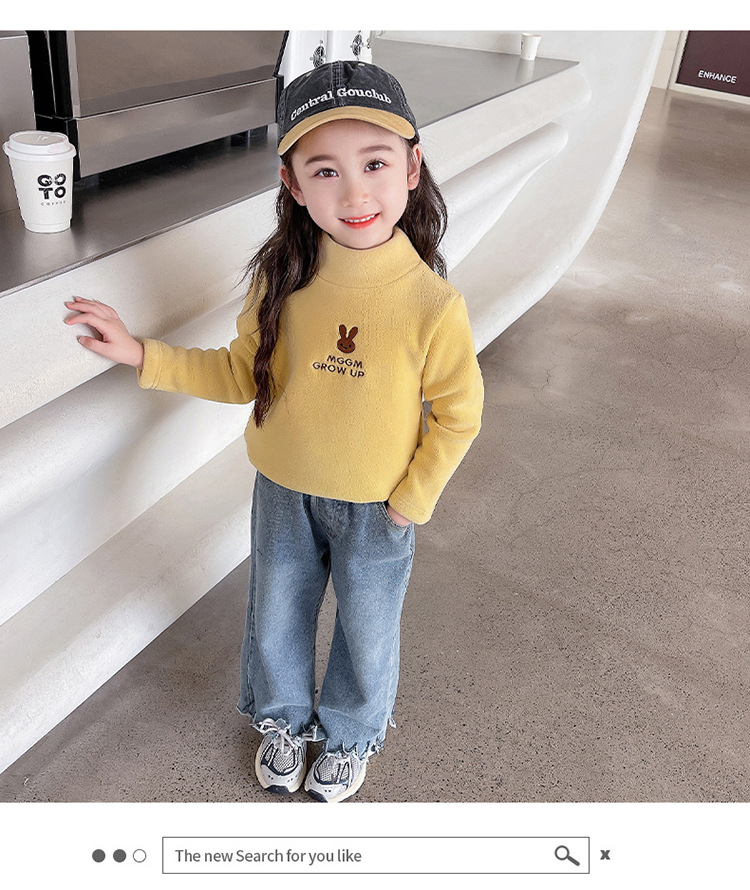 소녀 기모 만화베이스 셔츠 가을과 겨울 2024 새로운 어린이 따뜻한 탑 아기의 겨울 두꺼운 내복스토어 가기