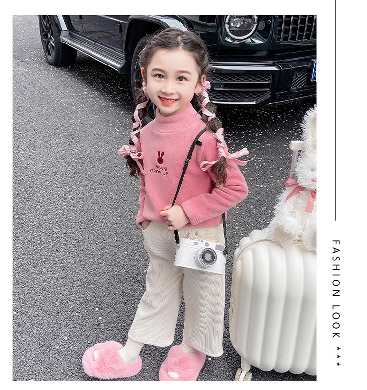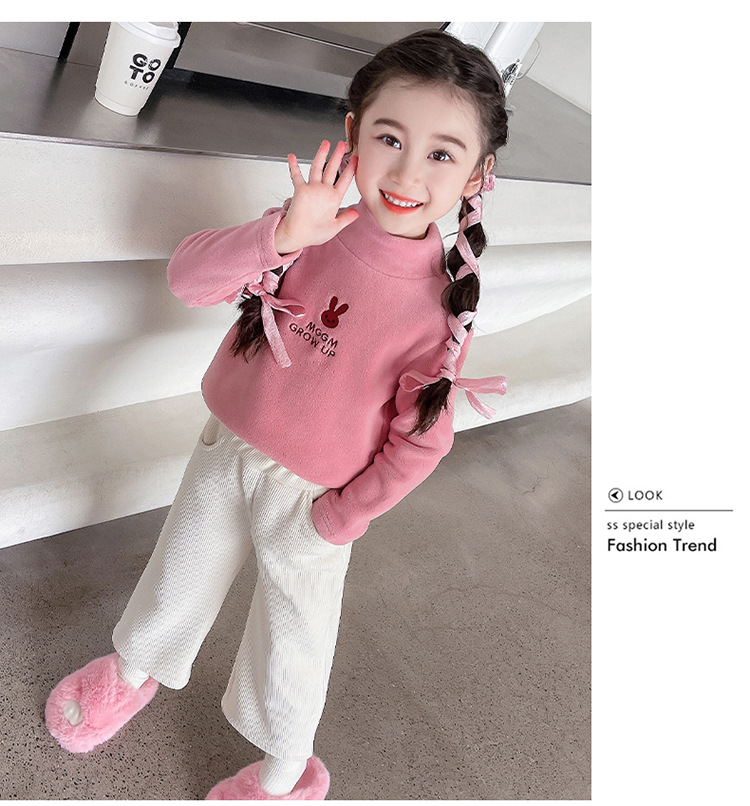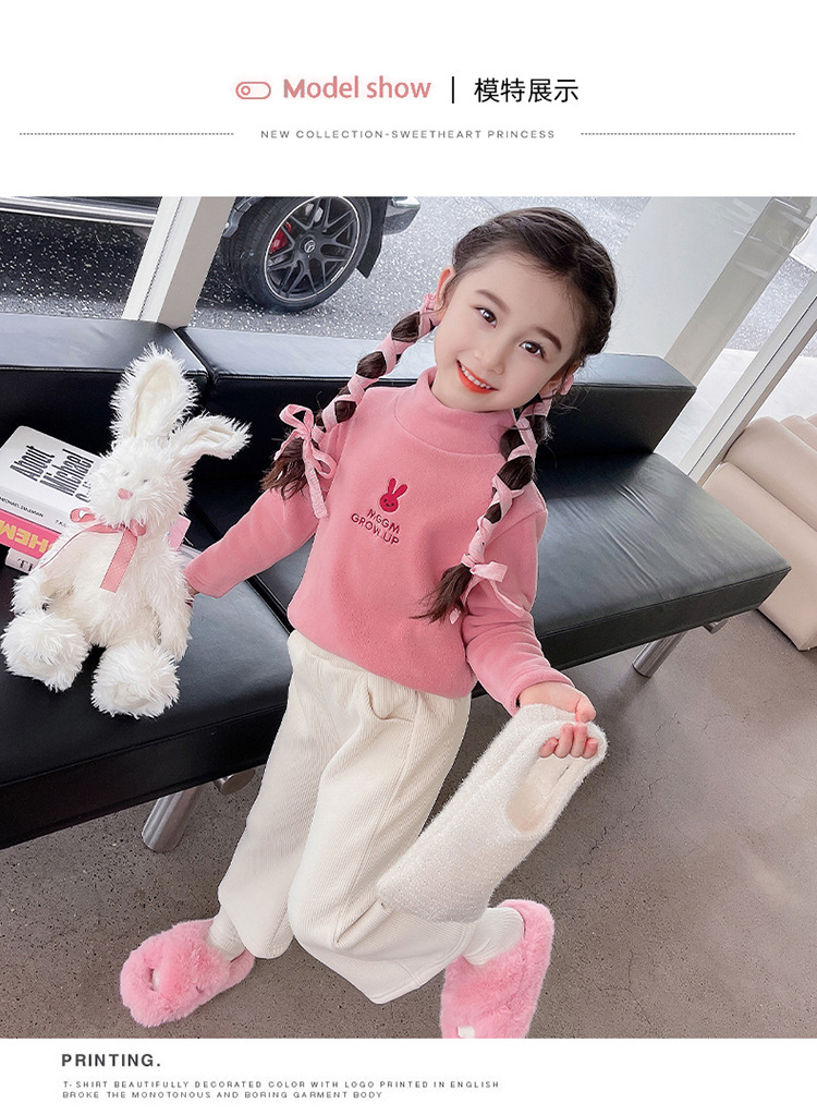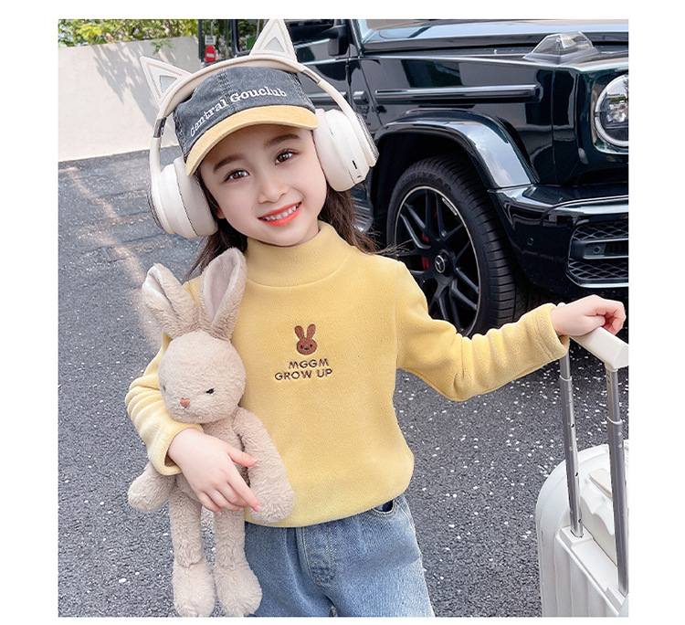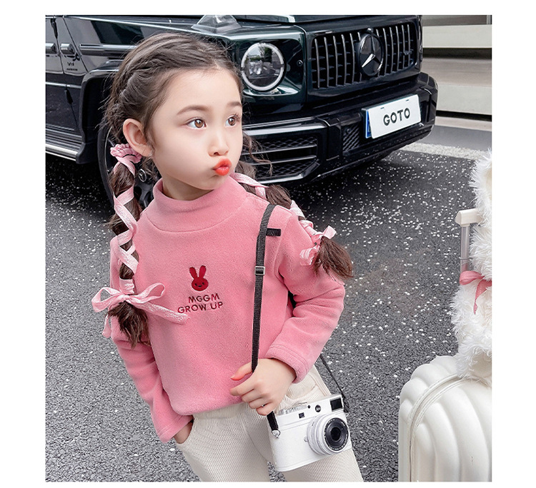소녀 기모 만화베이스 셔츠 가을과 겨울 2024 새로운 어린이 따뜻한 탑 아기의 겨울 두꺼운 내복