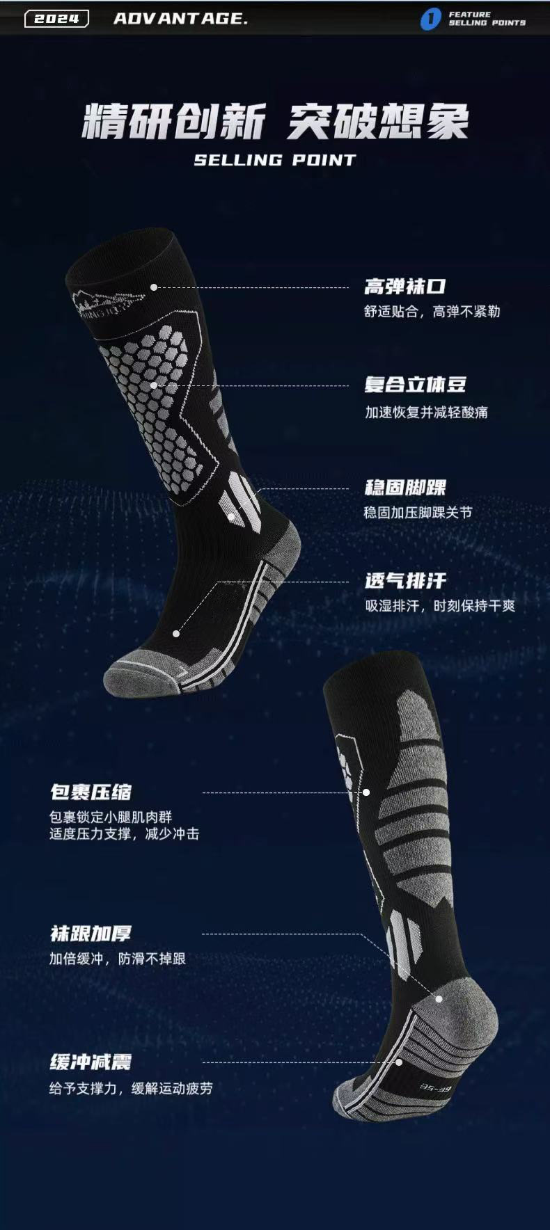 전문 압축 스키 양말, 긴 양말, 야외 스포츠 사이클링, 달리기 및 스키, 두껍고 따뜻하고 방한 스노우 양말스토어 가기