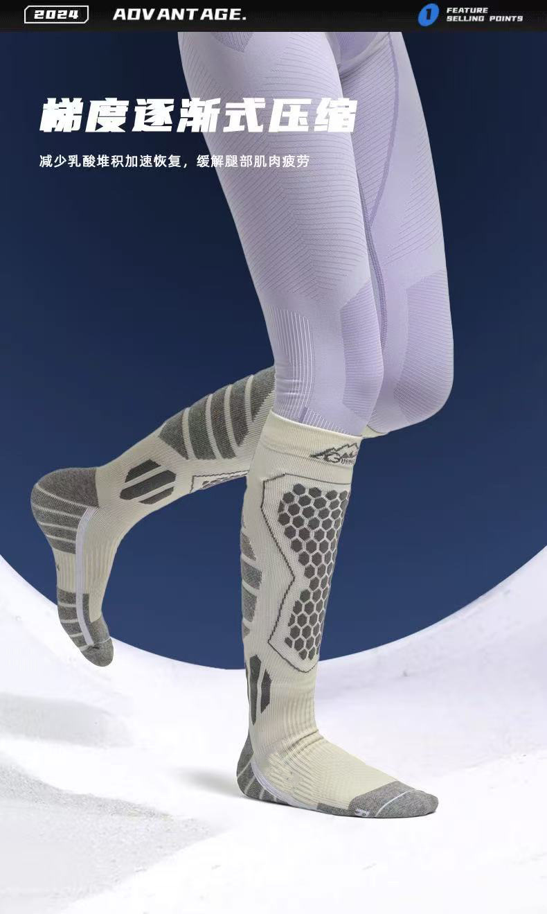 전문 압축 스키 양말, 긴 양말, 야외 스포츠 사이클링, 달리기 및 스키, 두껍고 따뜻하고 방한 스노우 양말