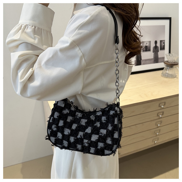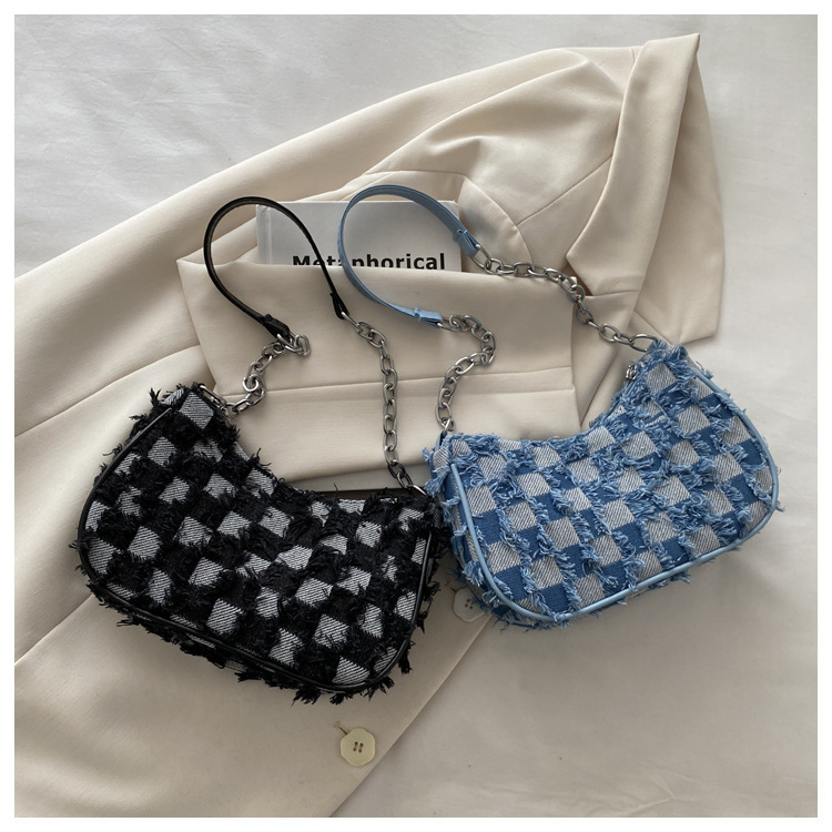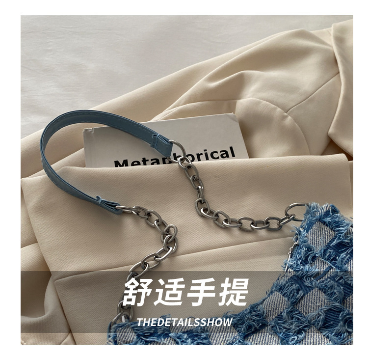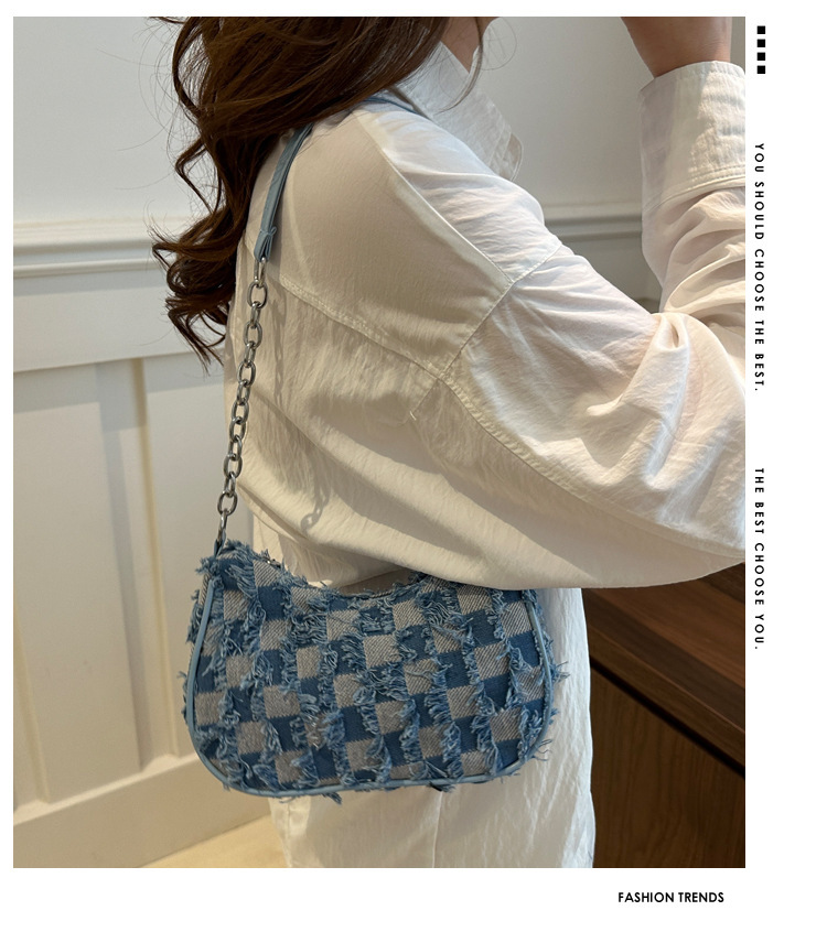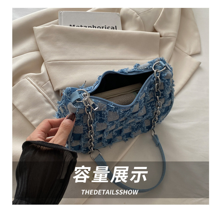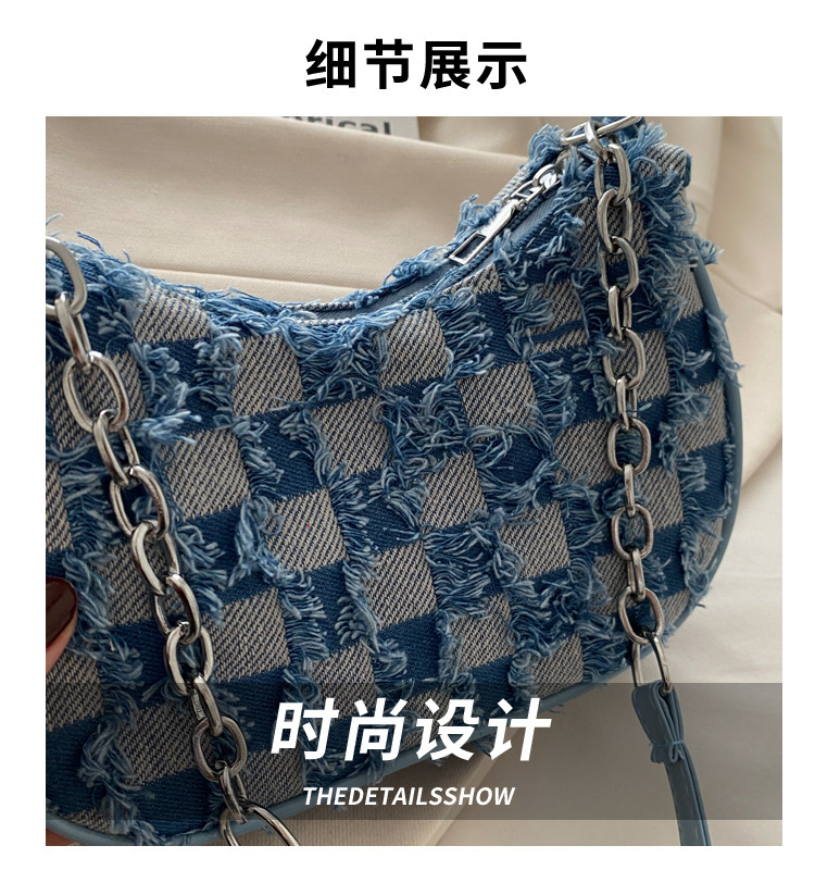 2024 세련된 패션 디자인 캐주얼 쿨 그라디언트 스타 데님 체인 크로스 바디 어깨 작은 광장 여성용 가방스토어 가기