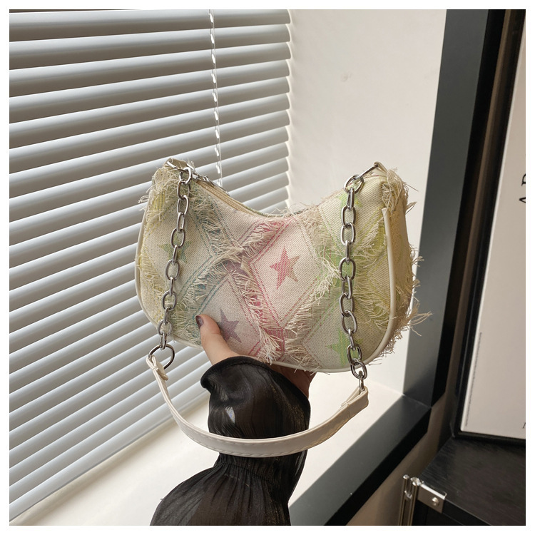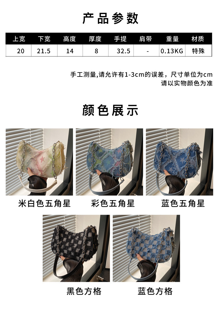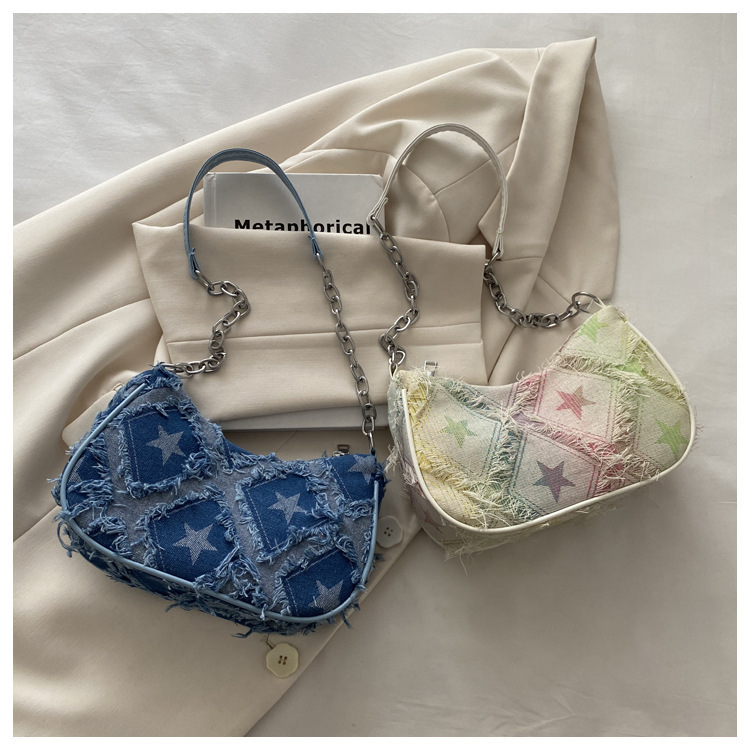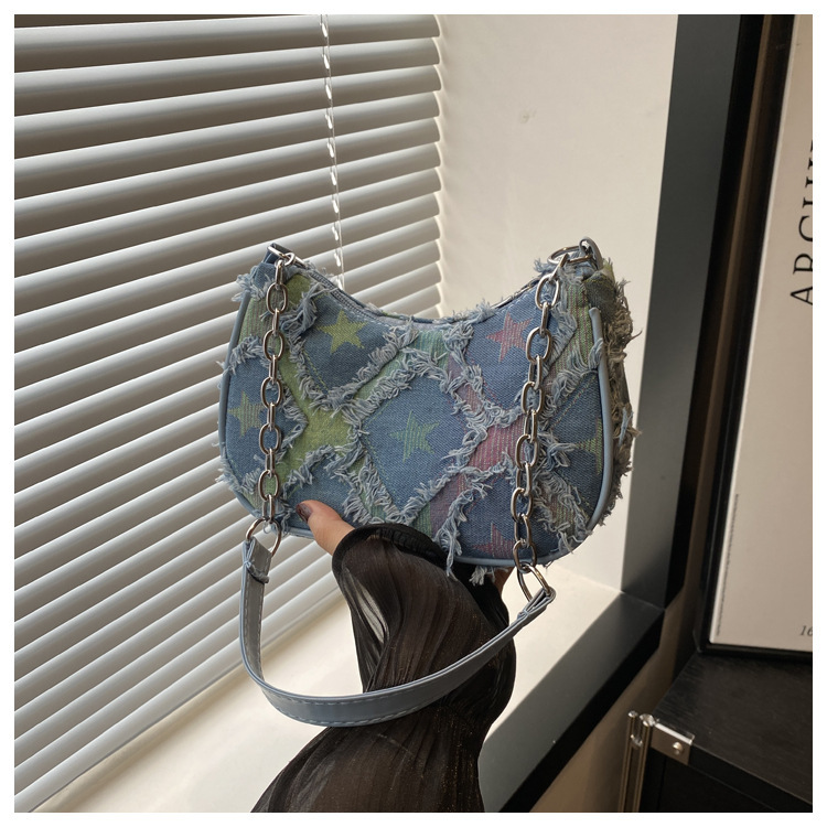 个性渐变星星牛仔布2024洋气时尚设计休闲链条斜挎单肩小方女包
