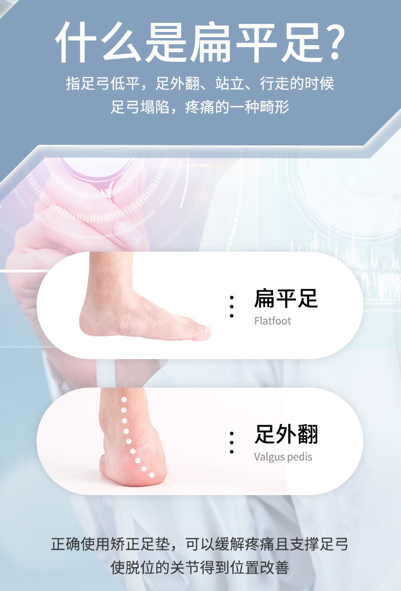 발 아치 패드, 물리적 교정 깔창, 스포츠 충격 흡수, 발 외반 및 다리 형태 교정, 특수 평발 깔창