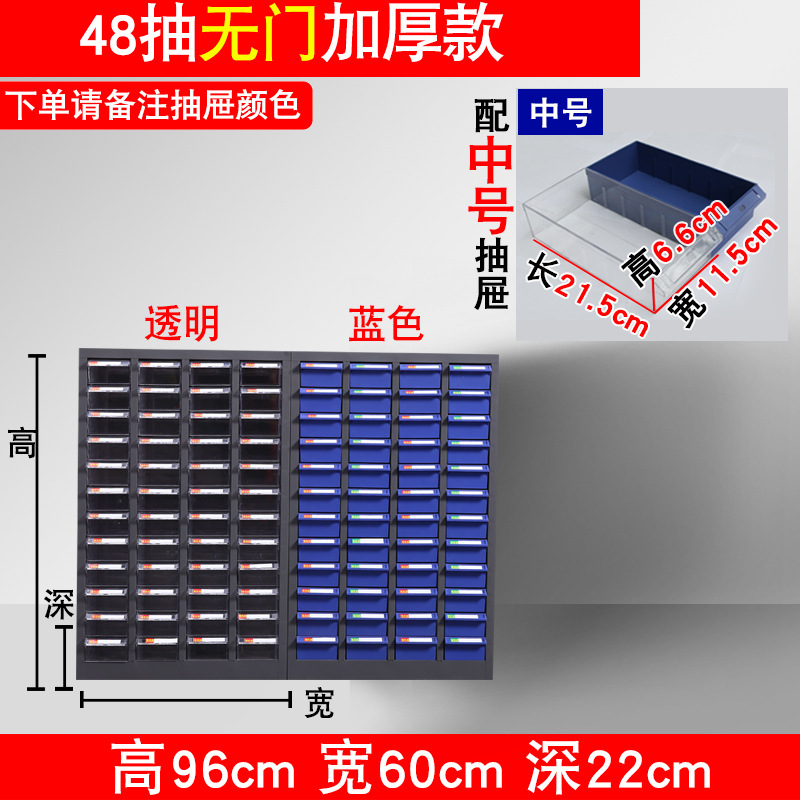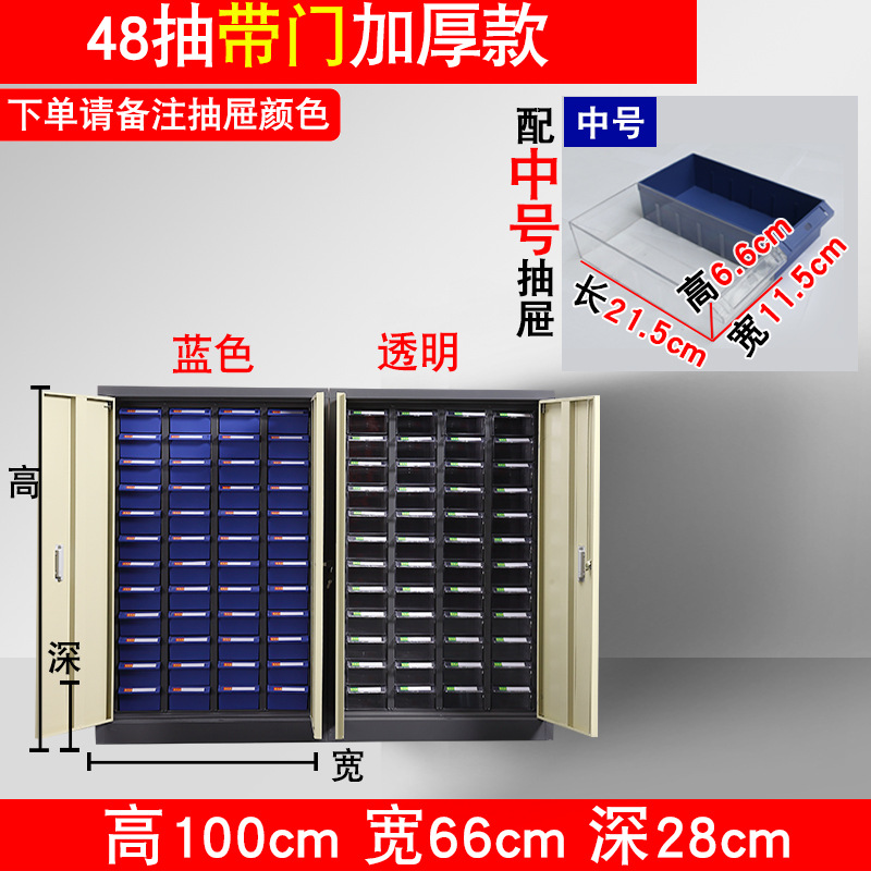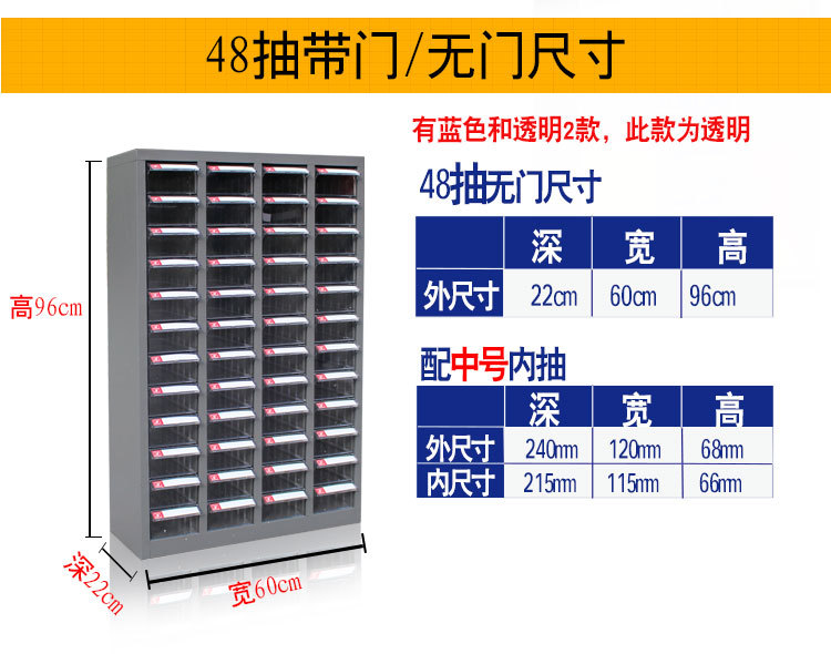 • 도어가 있는 서랍 48개 [투명/파란색]