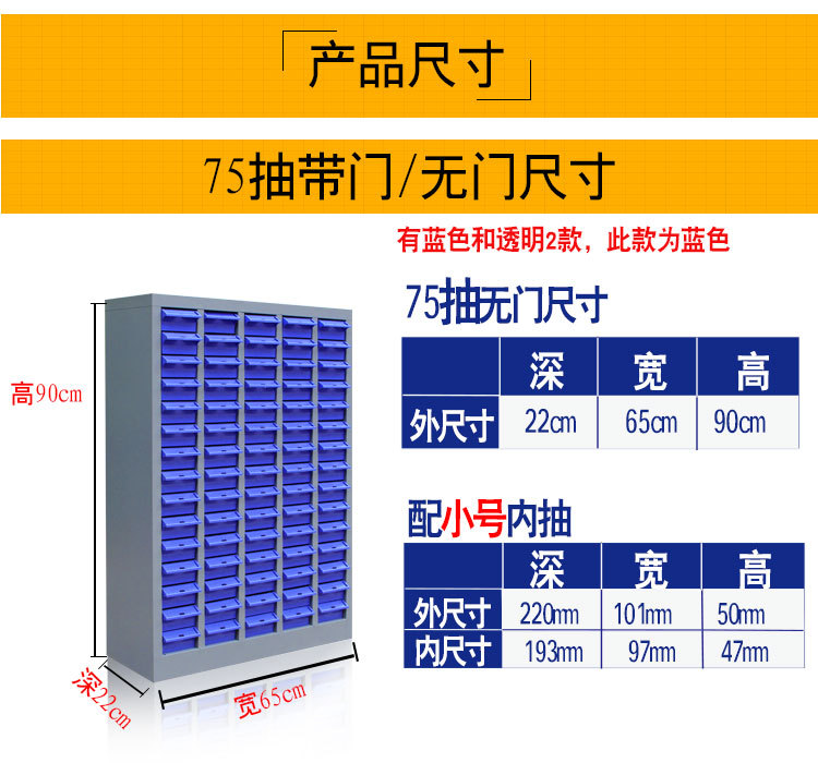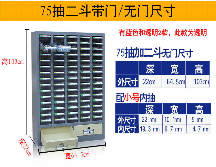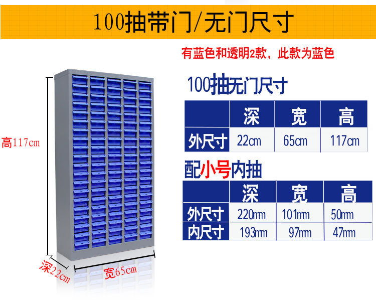 • 하단 도어 포함 100개 서랍 [투명/청색]