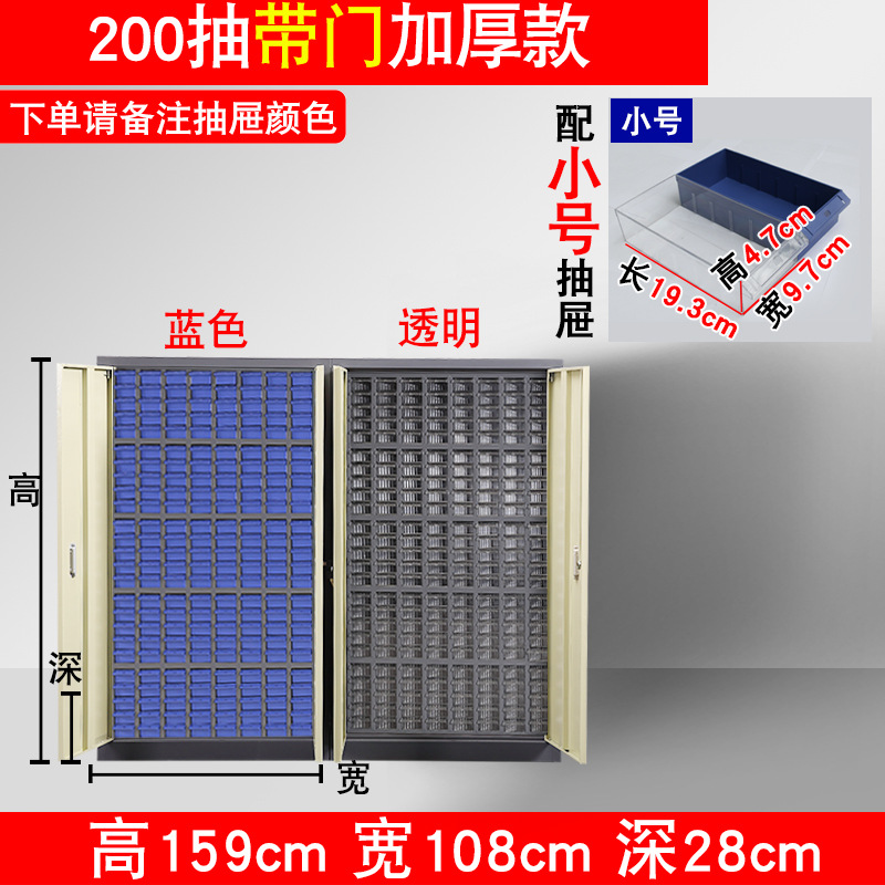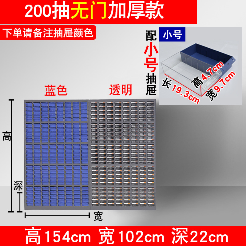 • 문이 있는 서랍 100개와 양동이 2개 [투명/파란색]