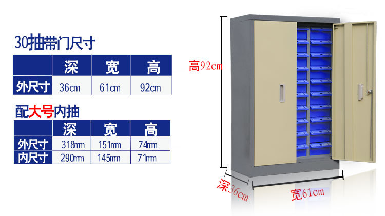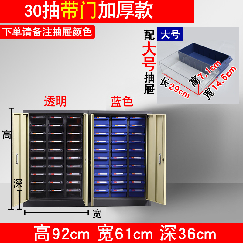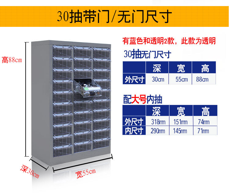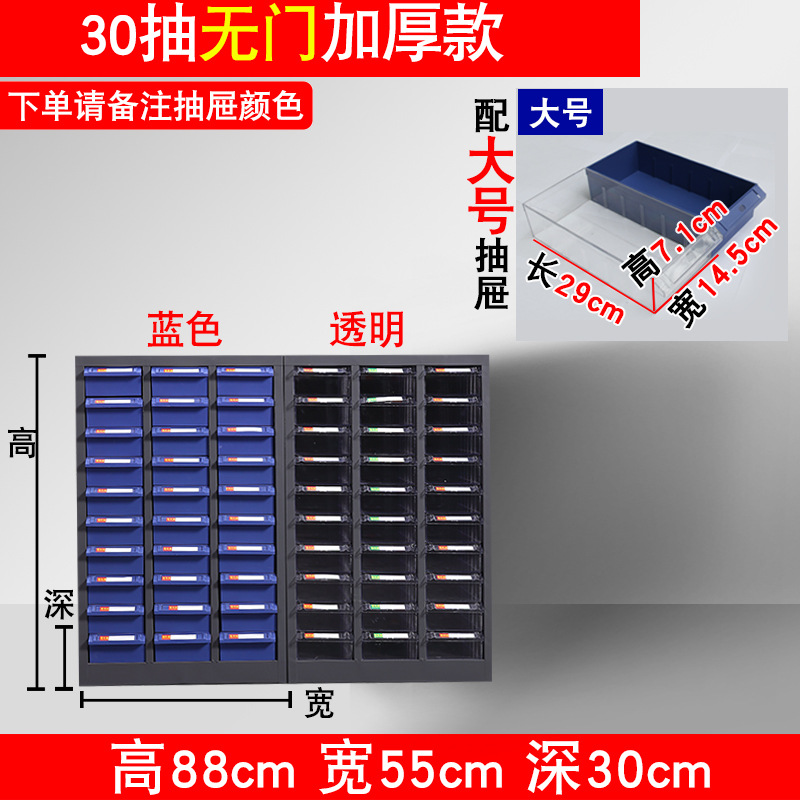 • 서랍 30개, 문 없는 양동이 2개 [투명/청색]