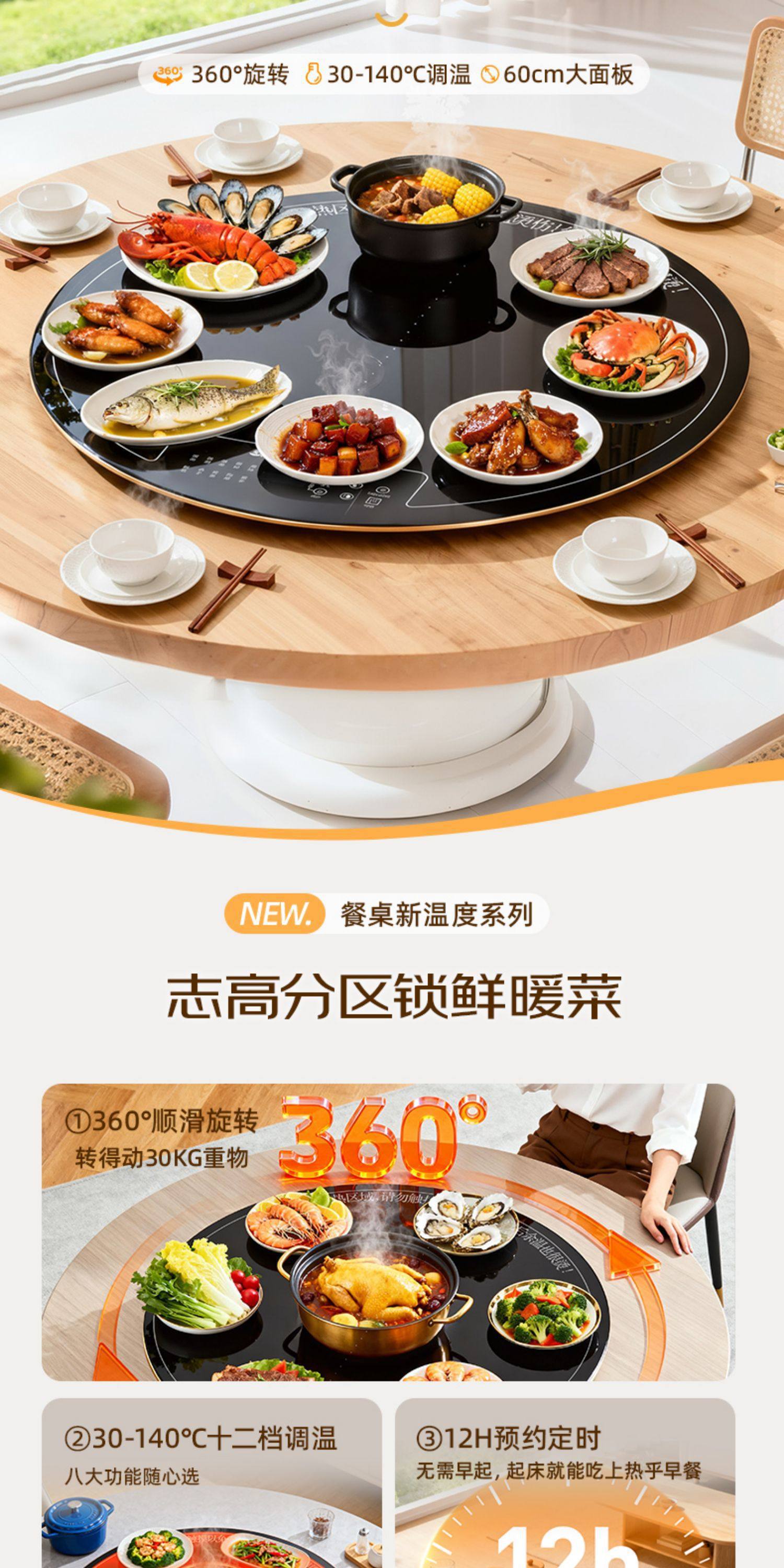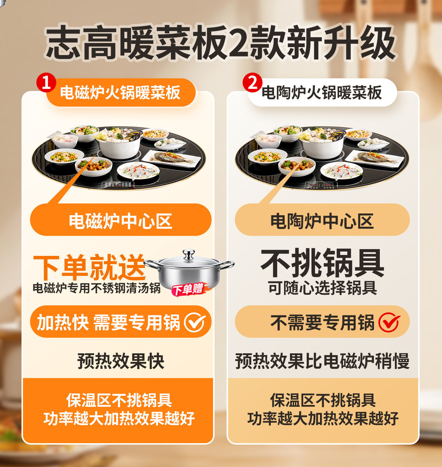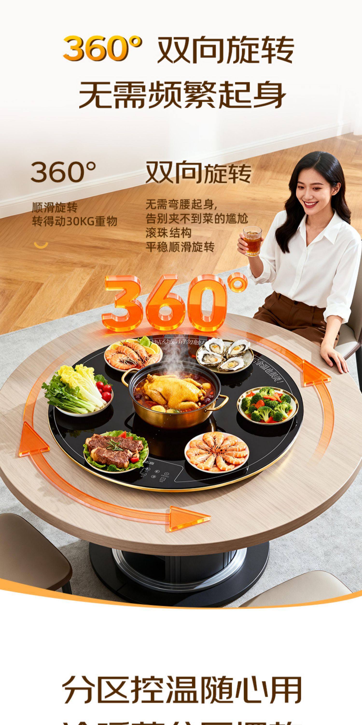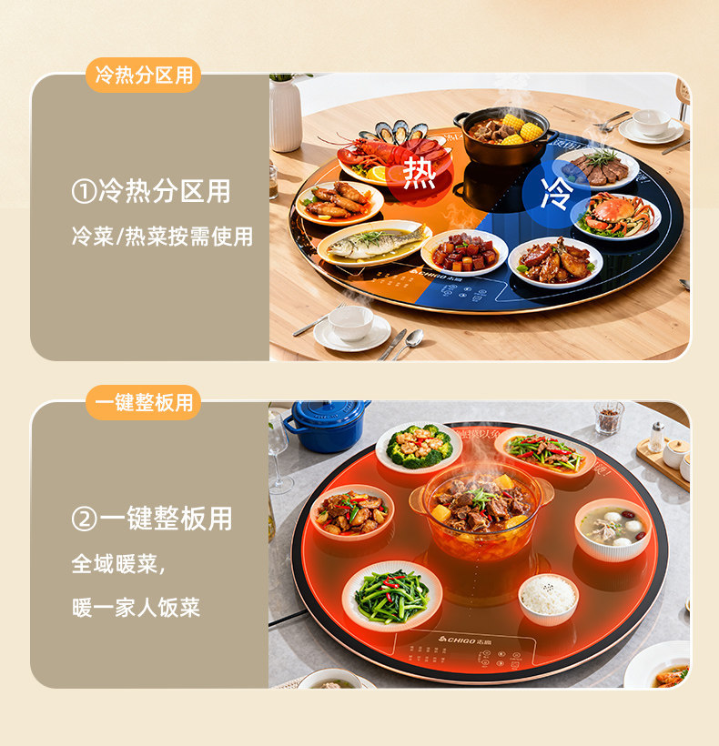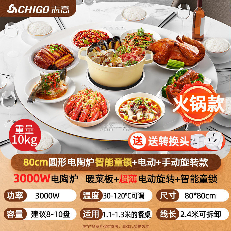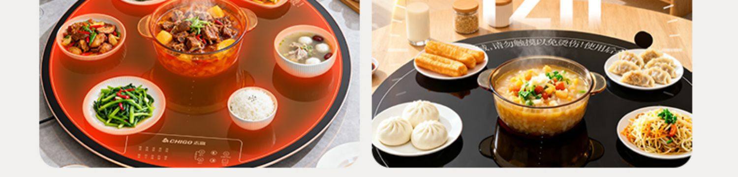 • 80cm 인덕션 냄비형 + 따뜻한 접시 + 전기회전 (2200W)
