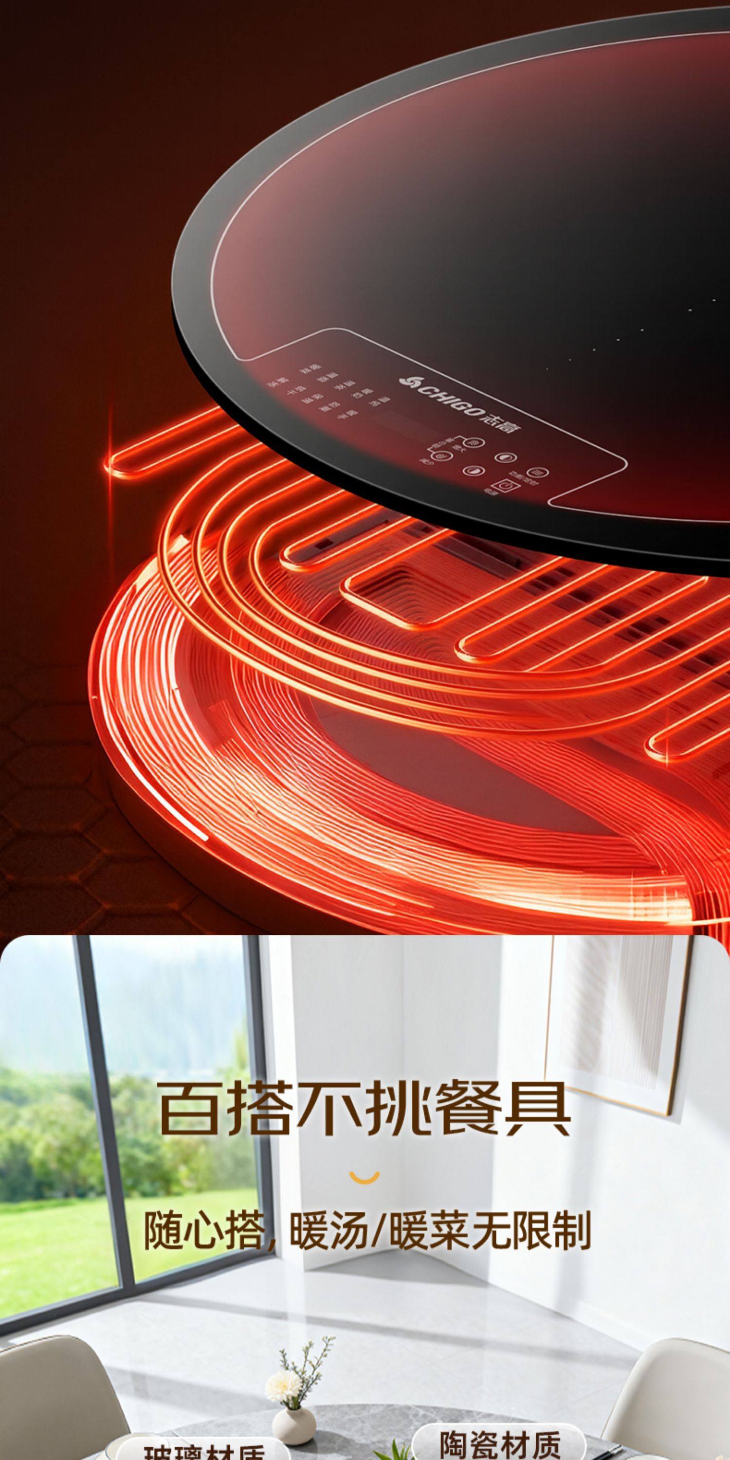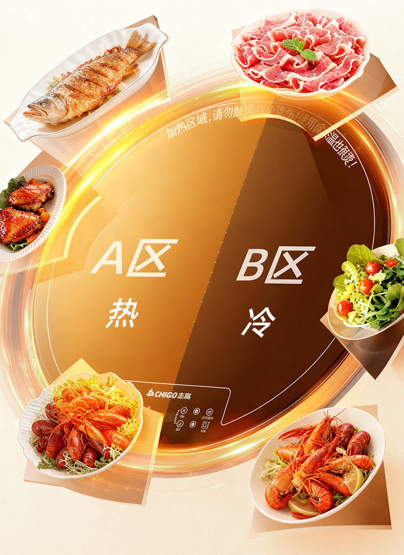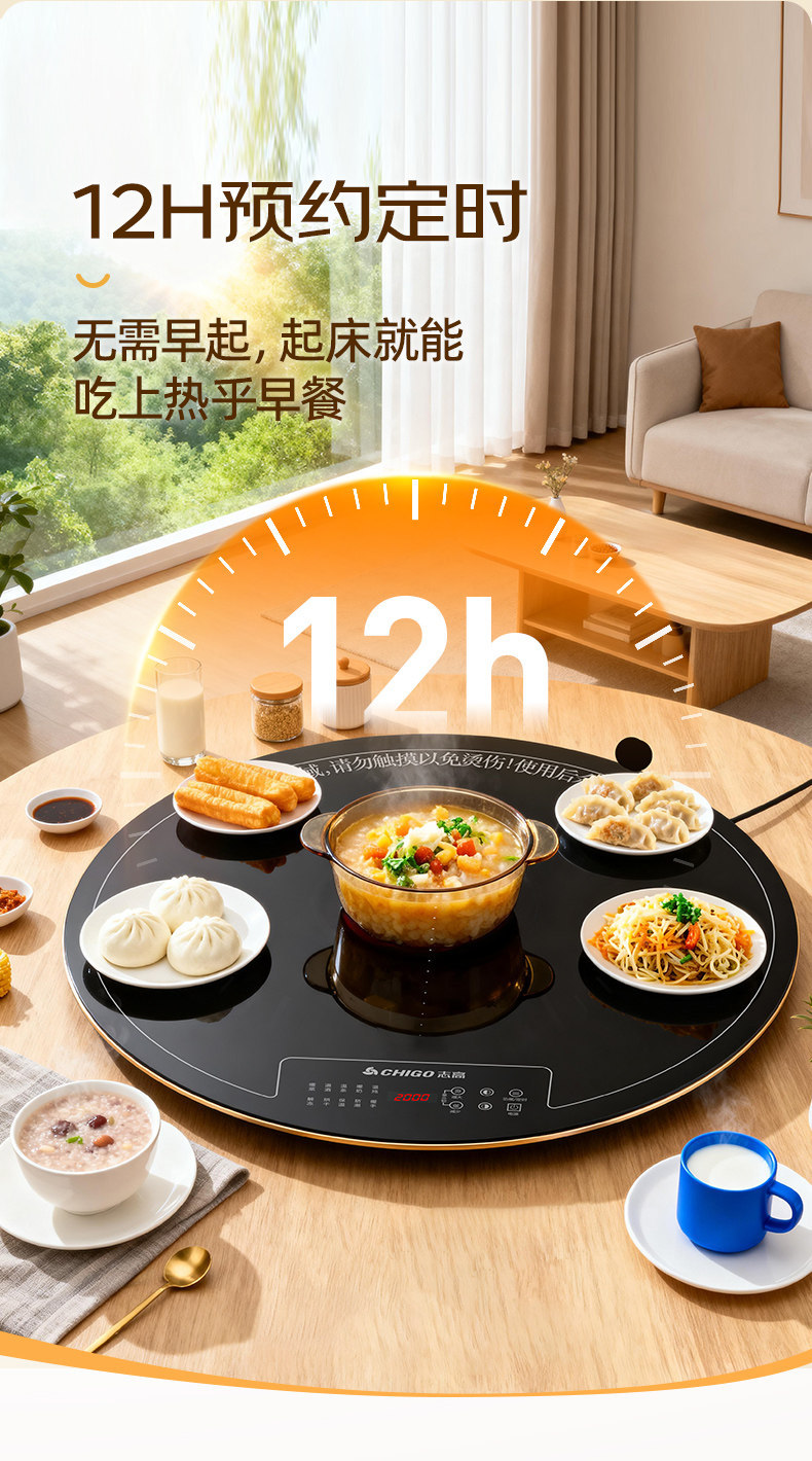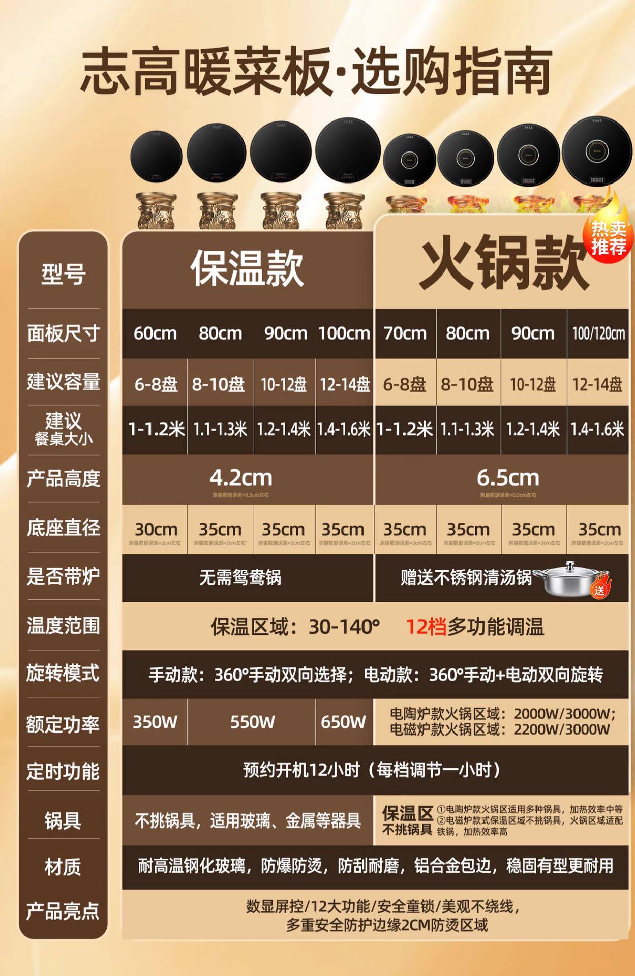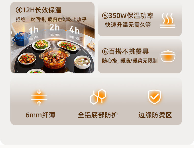 • 80cm 인덕션 냄비형 + 따뜻한 접시 + 전기회전 (2200W)