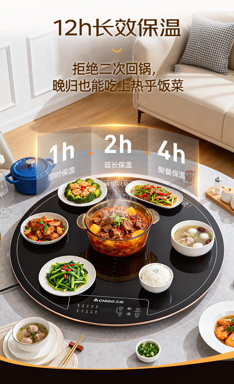 • 70cm 인덕션 밥솥 전골형 + 따뜻한 접시 + 전기회전 (3000W)