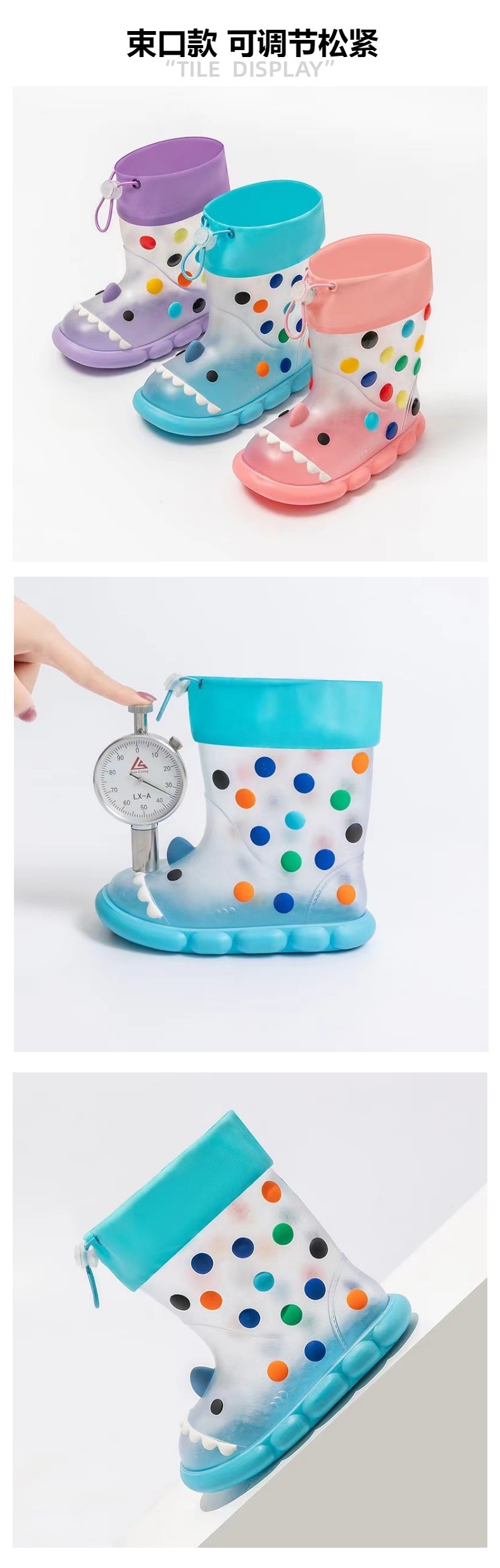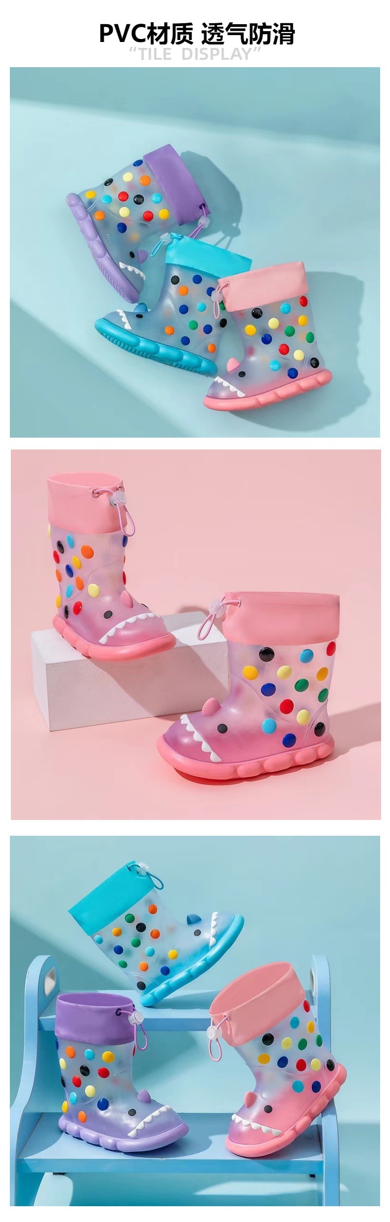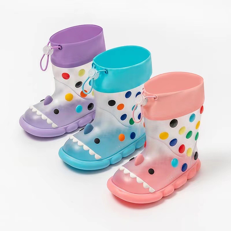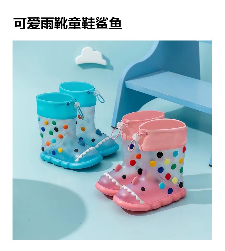 귀여운 상어 착용 어린이 장화 방수 미끄럼 방지 PVC 번트 장화 도매 국경 전자 상거래스토어 가기