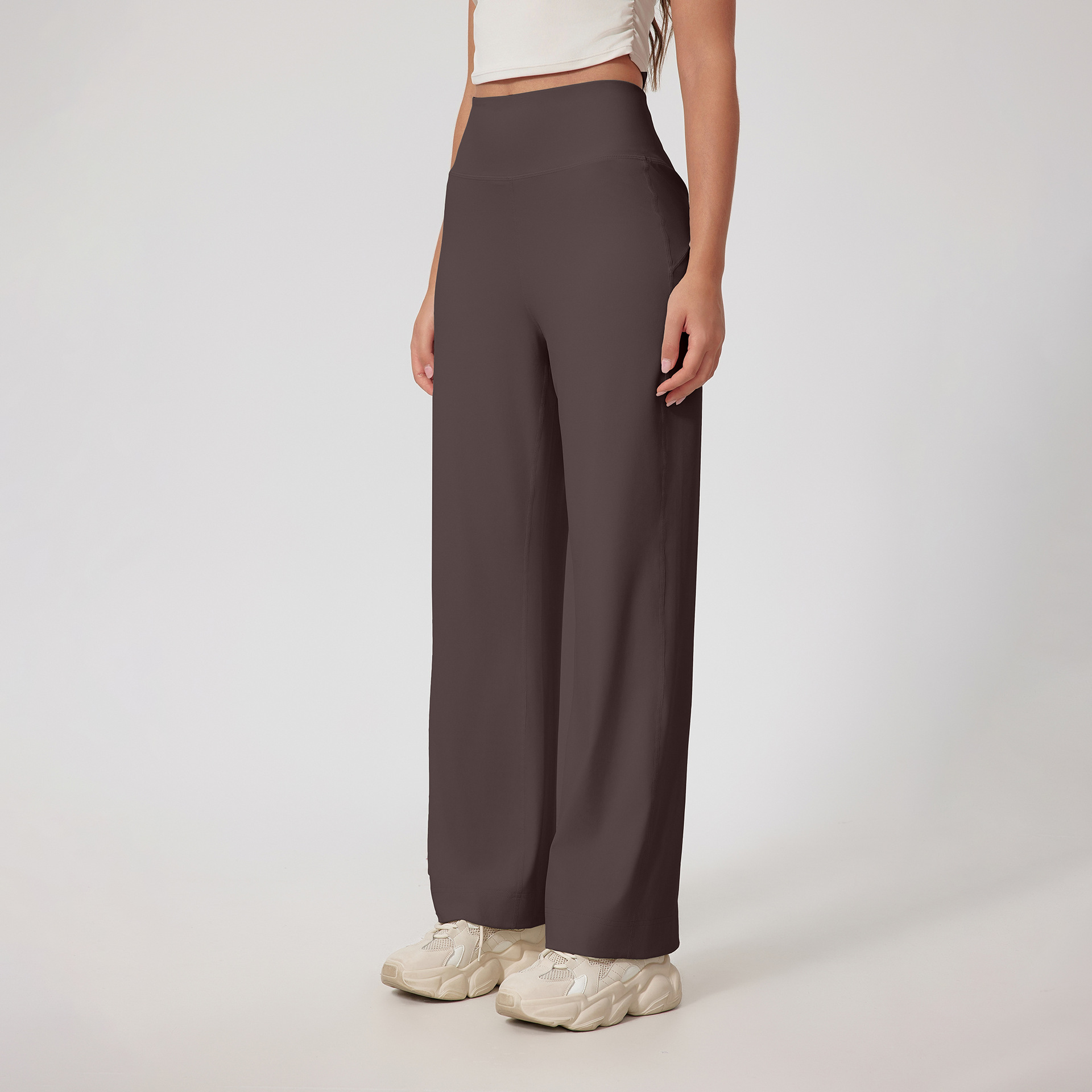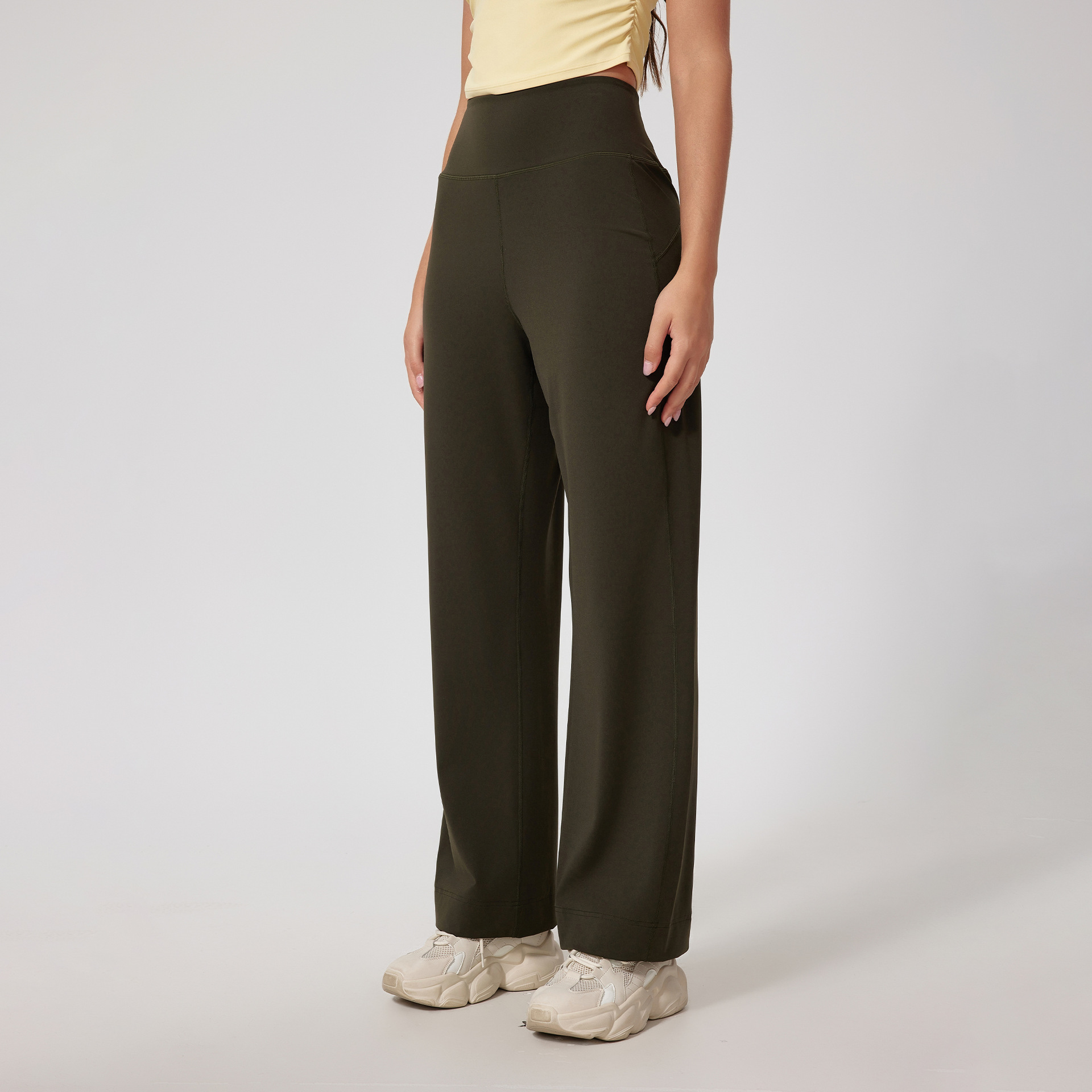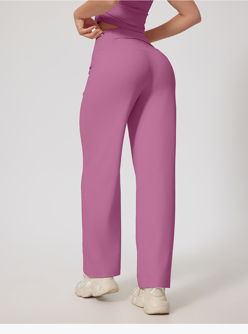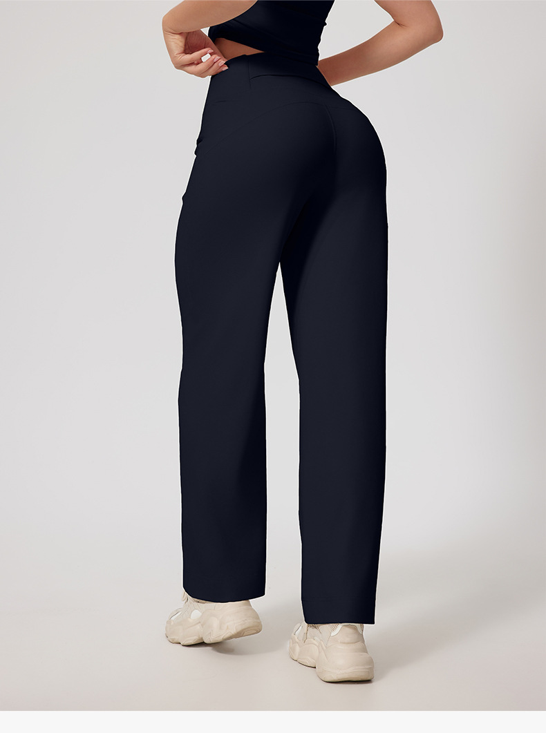 유럽과 미국은 국경을 넘나 드는 새로운 스트레이트 튜브 피트니스 마이크로 혼 바지 높은 허리 요가 바지 허리 허리 포켓 혼 바지