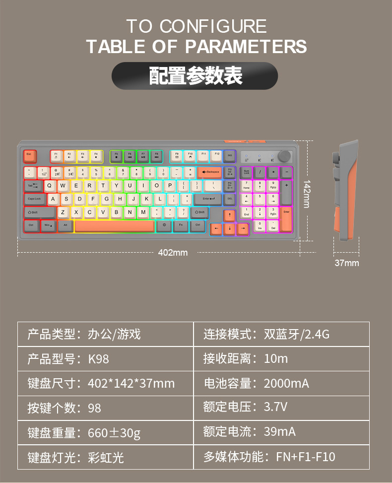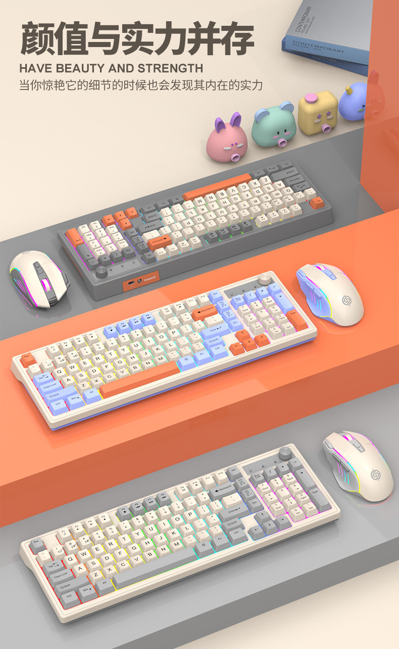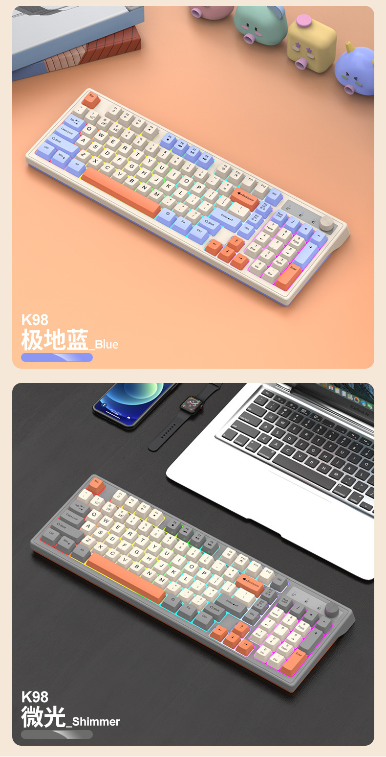 Viper K98 무선 블루투스 듀얼 모드 기계적 느낌 키보드 패션 컬러 매칭 사무실 빛나는 게임 컴퓨터 키보드스토어 가기