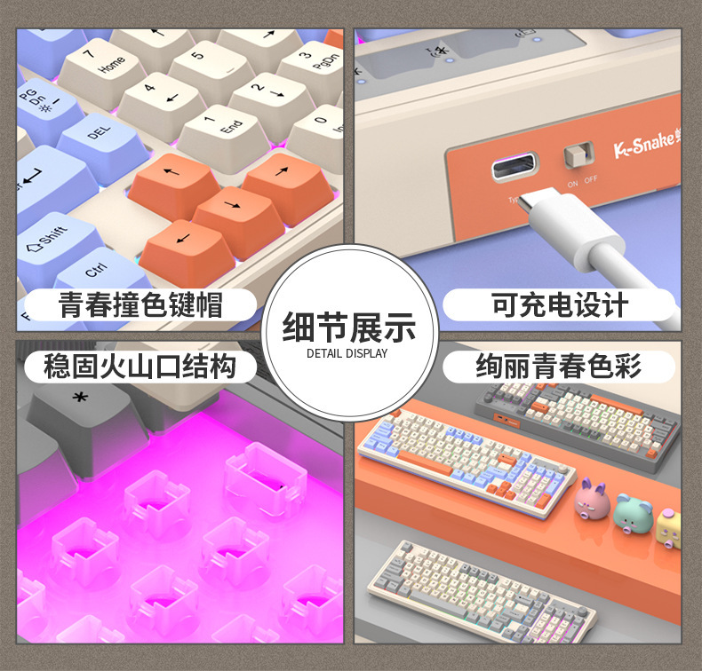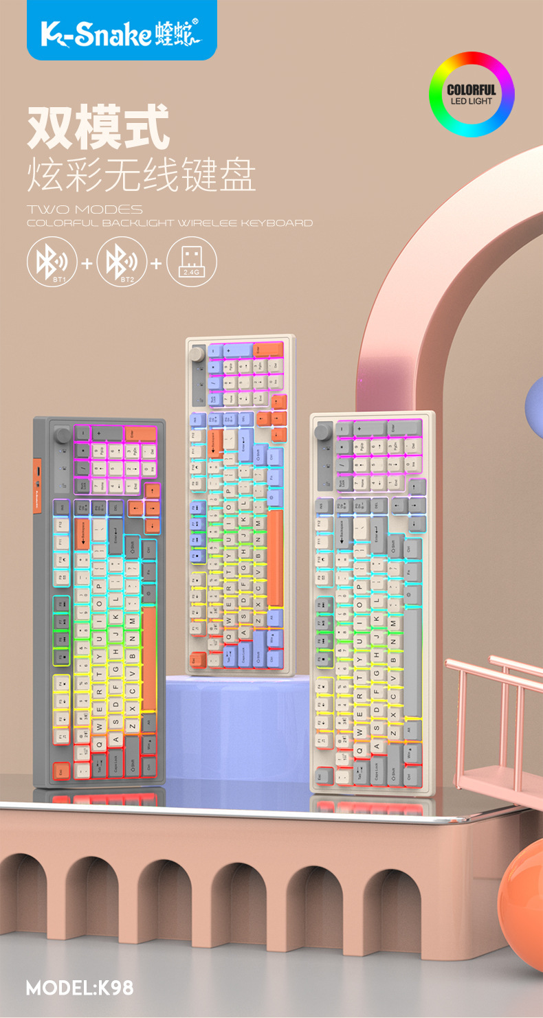 Viper K98 무선 블루투스 듀얼 모드 기계적 느낌 키보드 패션 컬러 매칭 사무실 빛나는 게임 컴퓨터 키보드