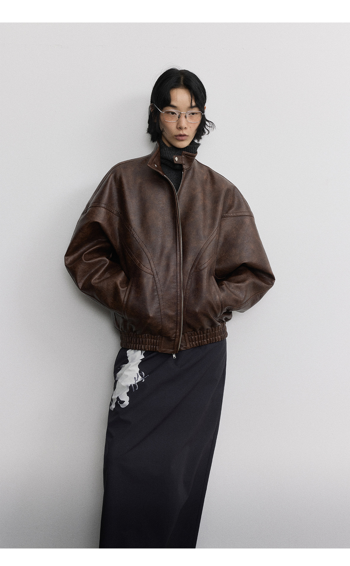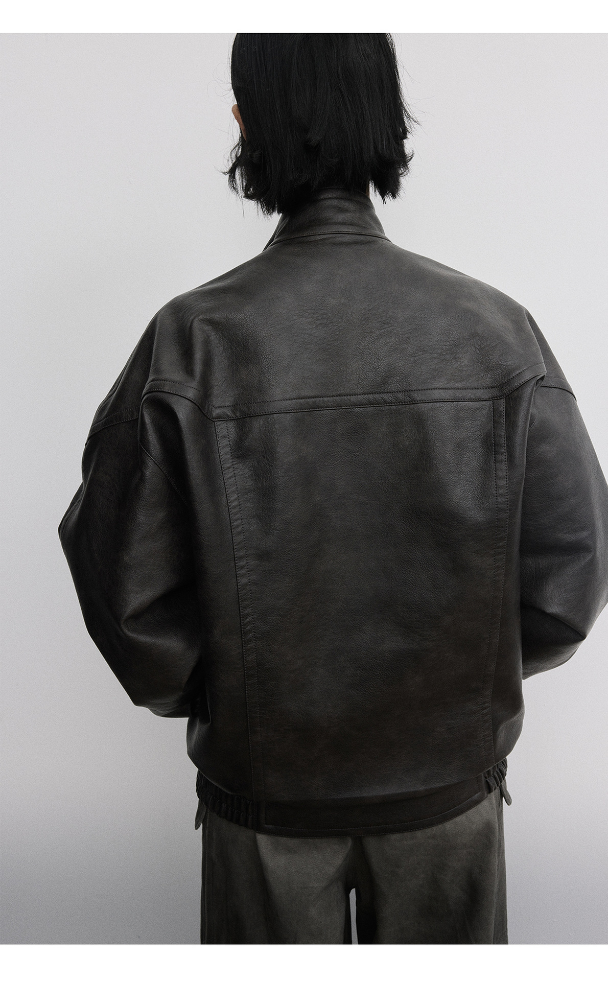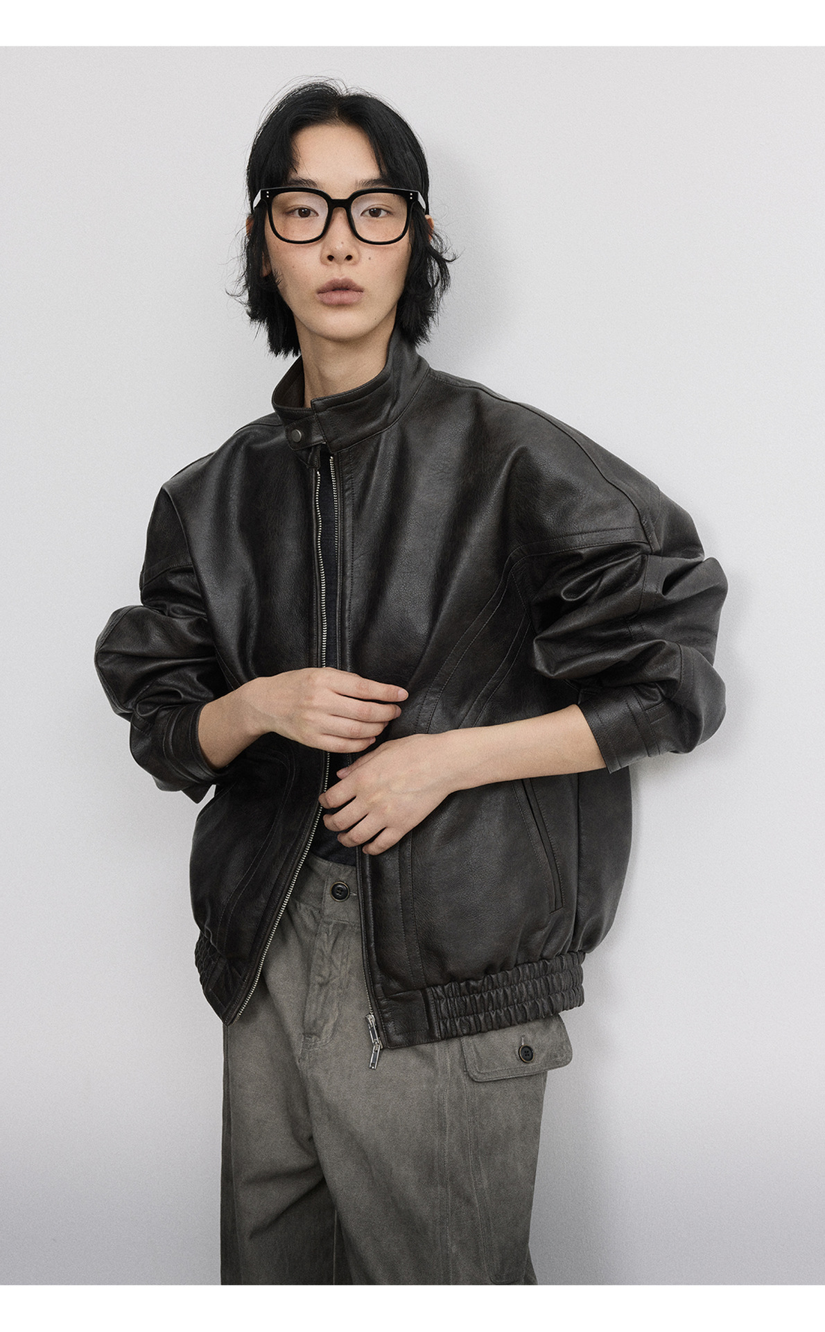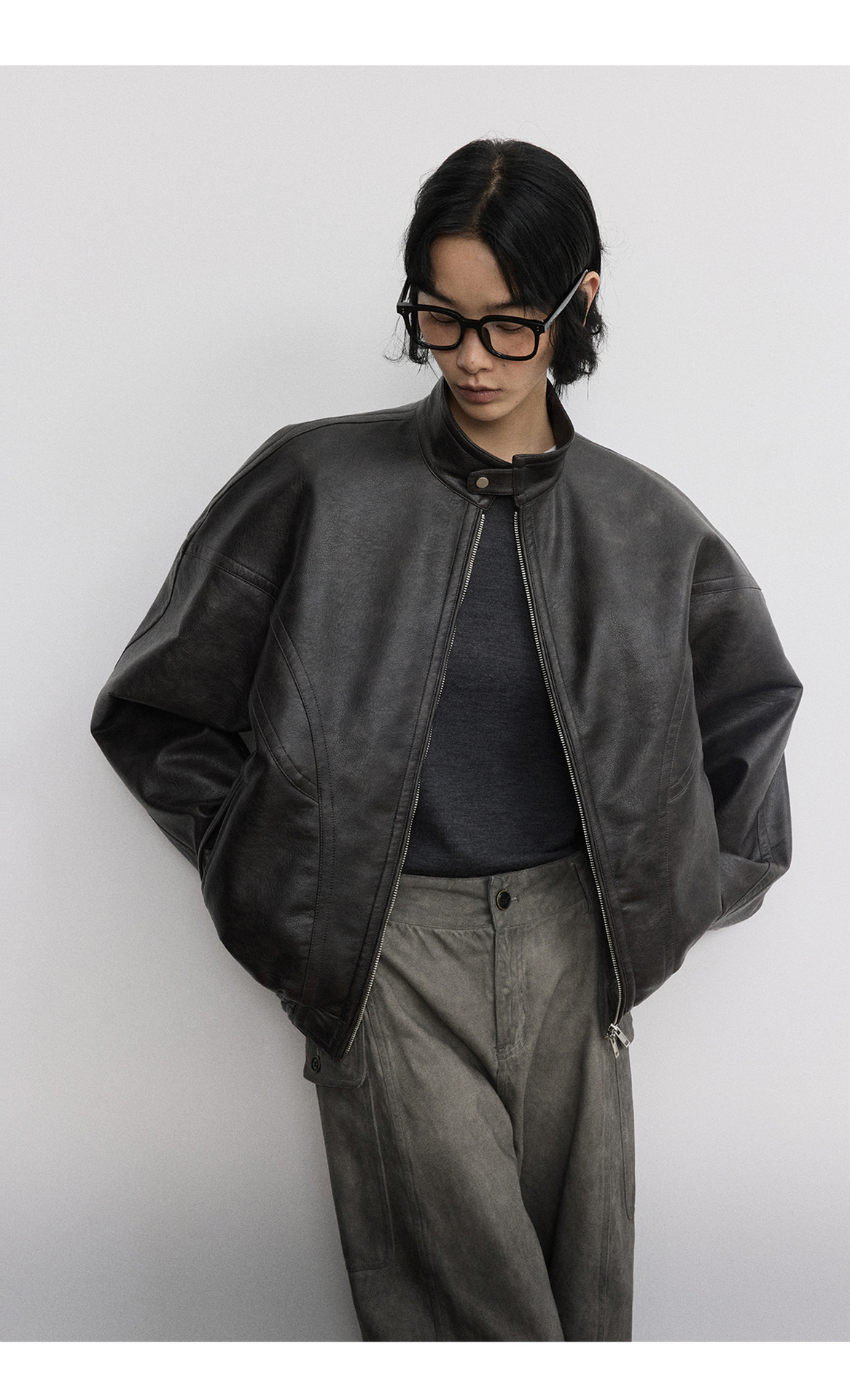 [시간 방문] 여성을위한 새로운 레트로 스탠드 칼라 스티치 다목적 pu 가죽 자켓 느슨한 긴팔 자켓 V7712스토어 가기