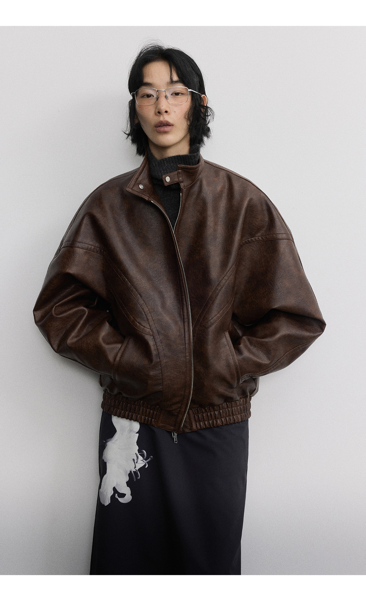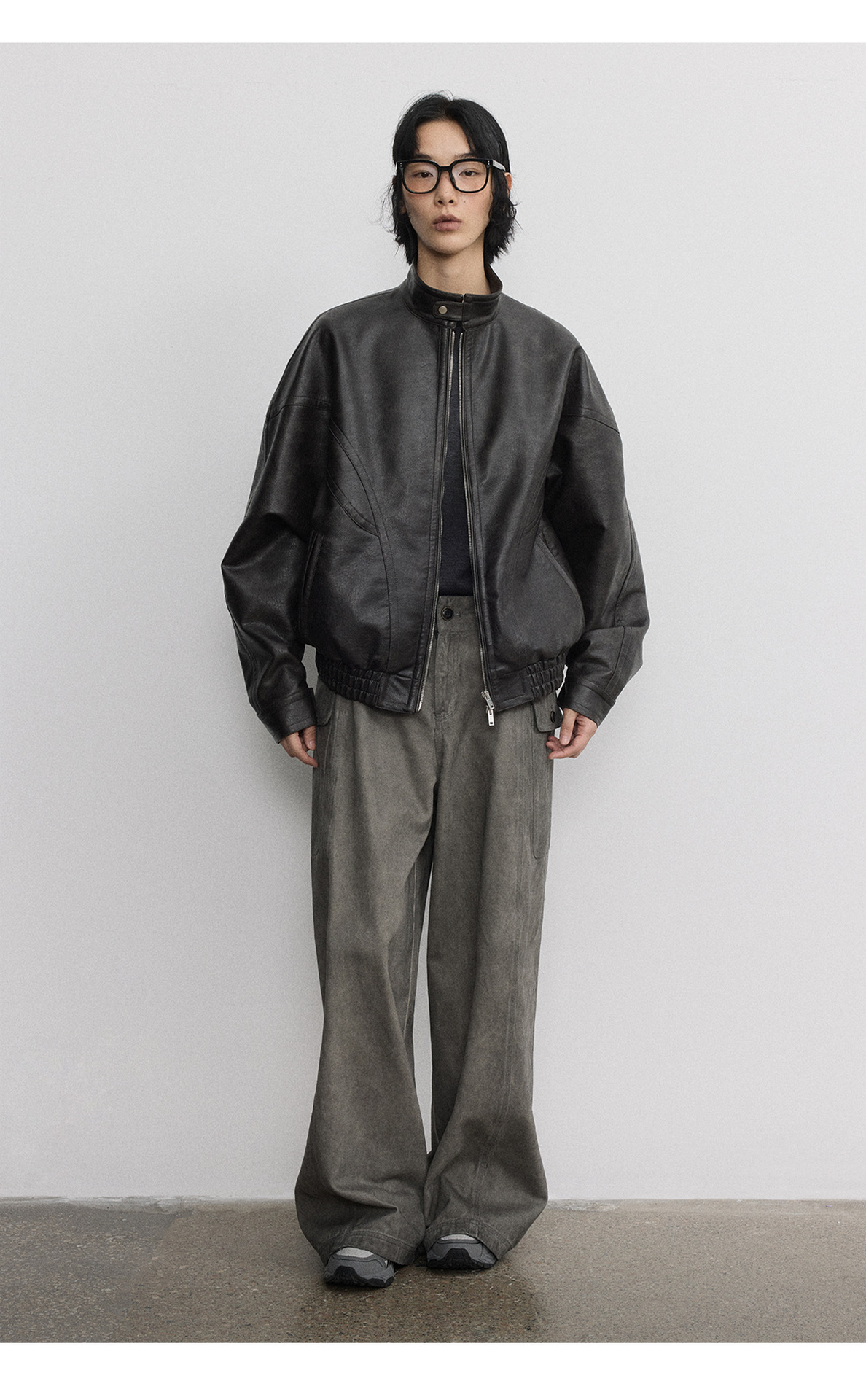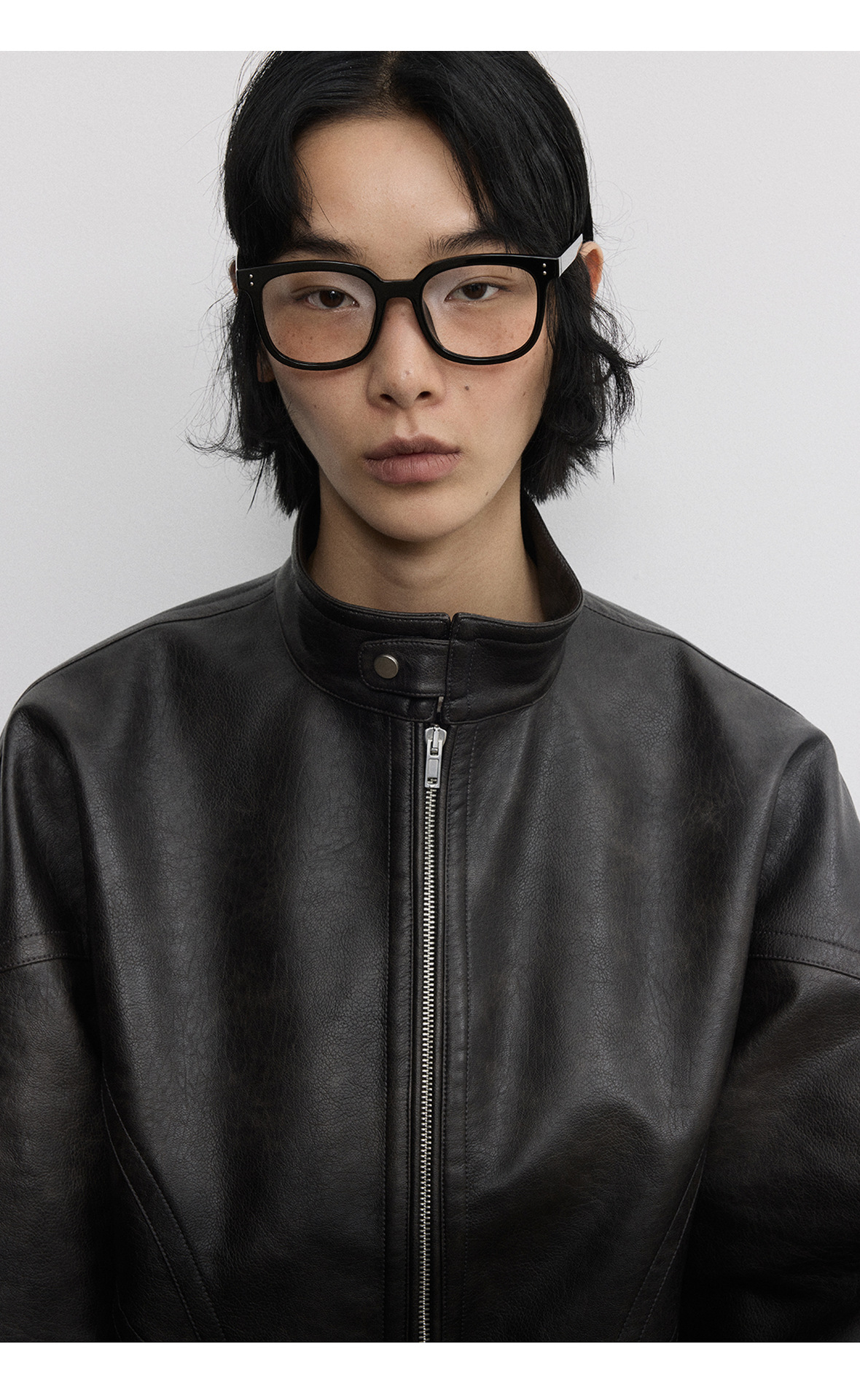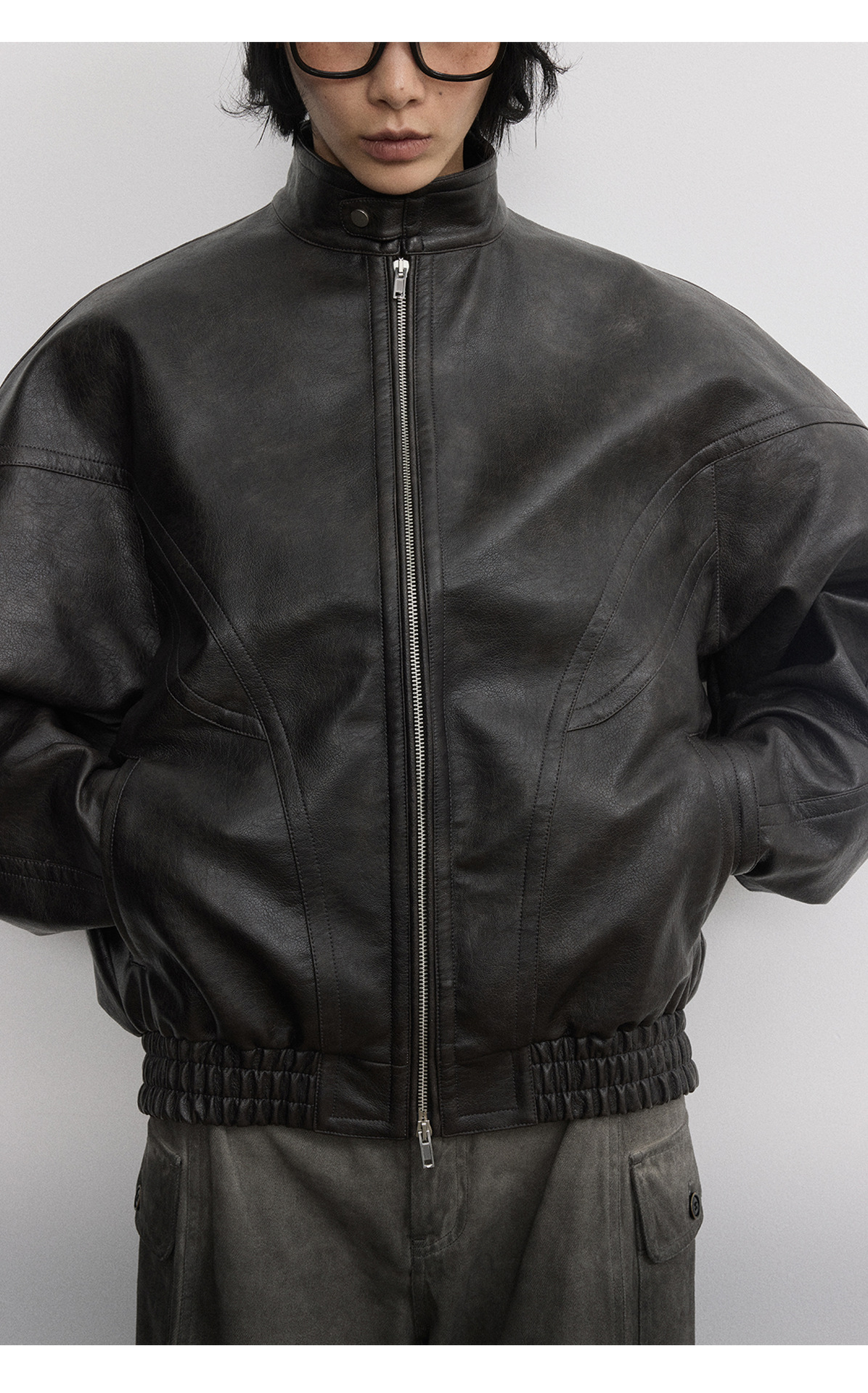 [시간 방문] 여성을위한 새로운 레트로 스탠드 칼라 스티치 다목적 pu 가죽 자켓 느슨한 긴팔 자켓 V7712스토어 가기