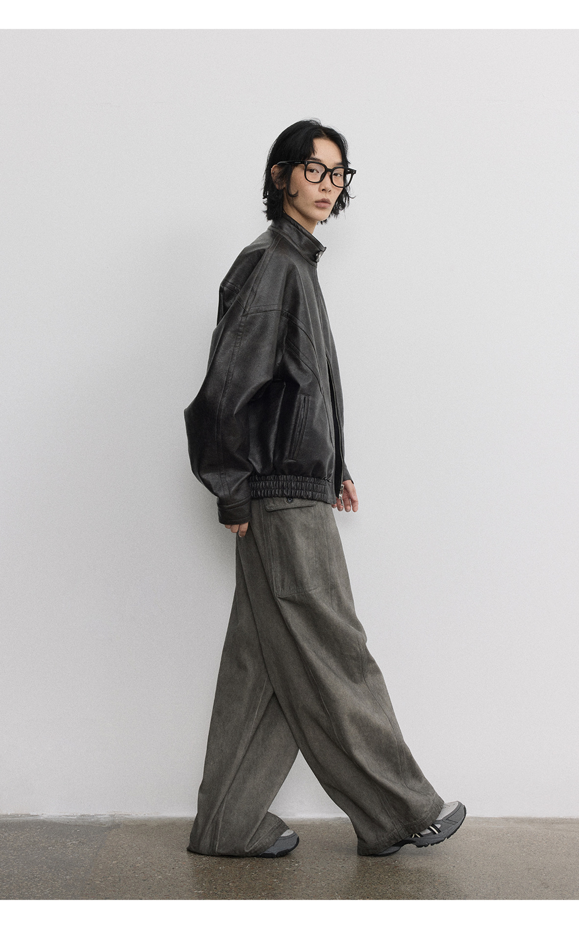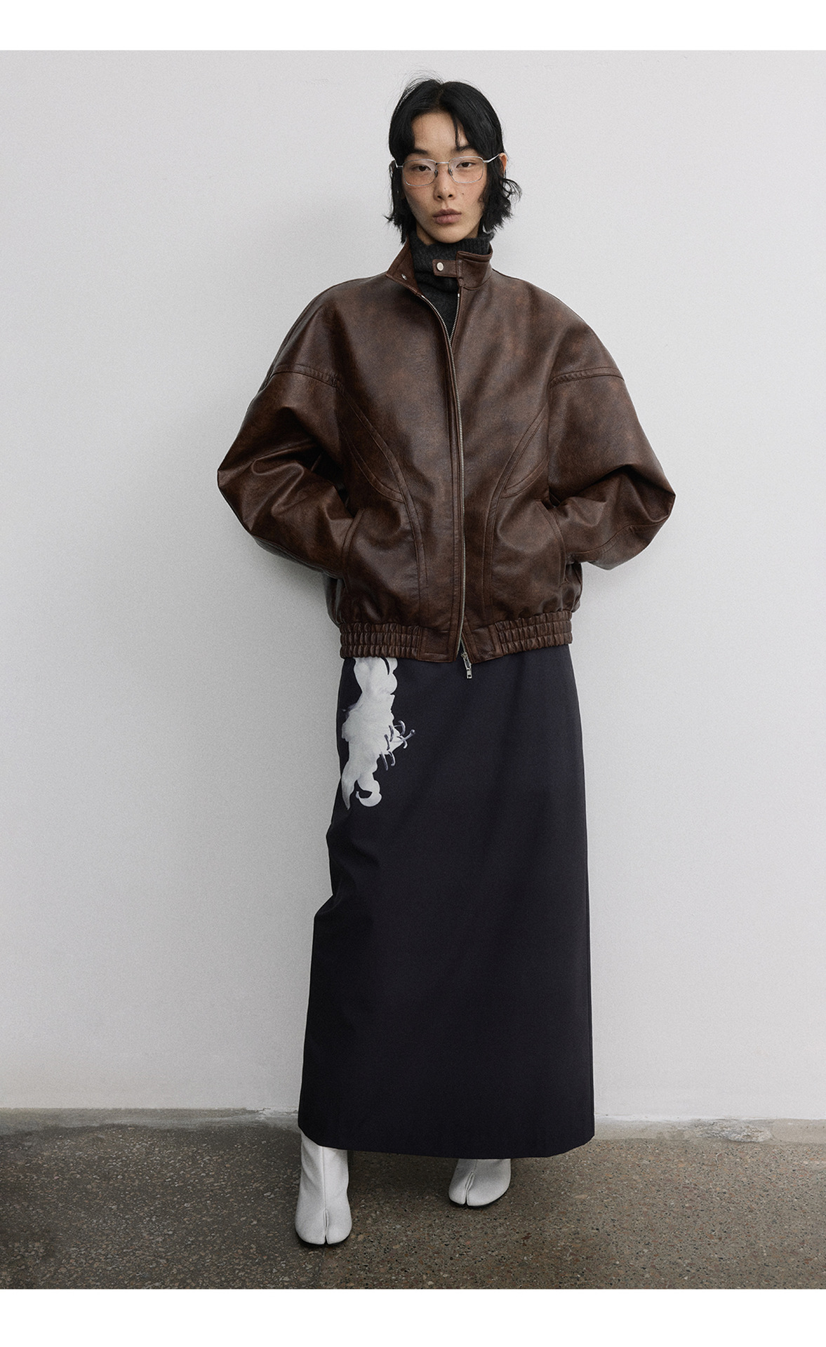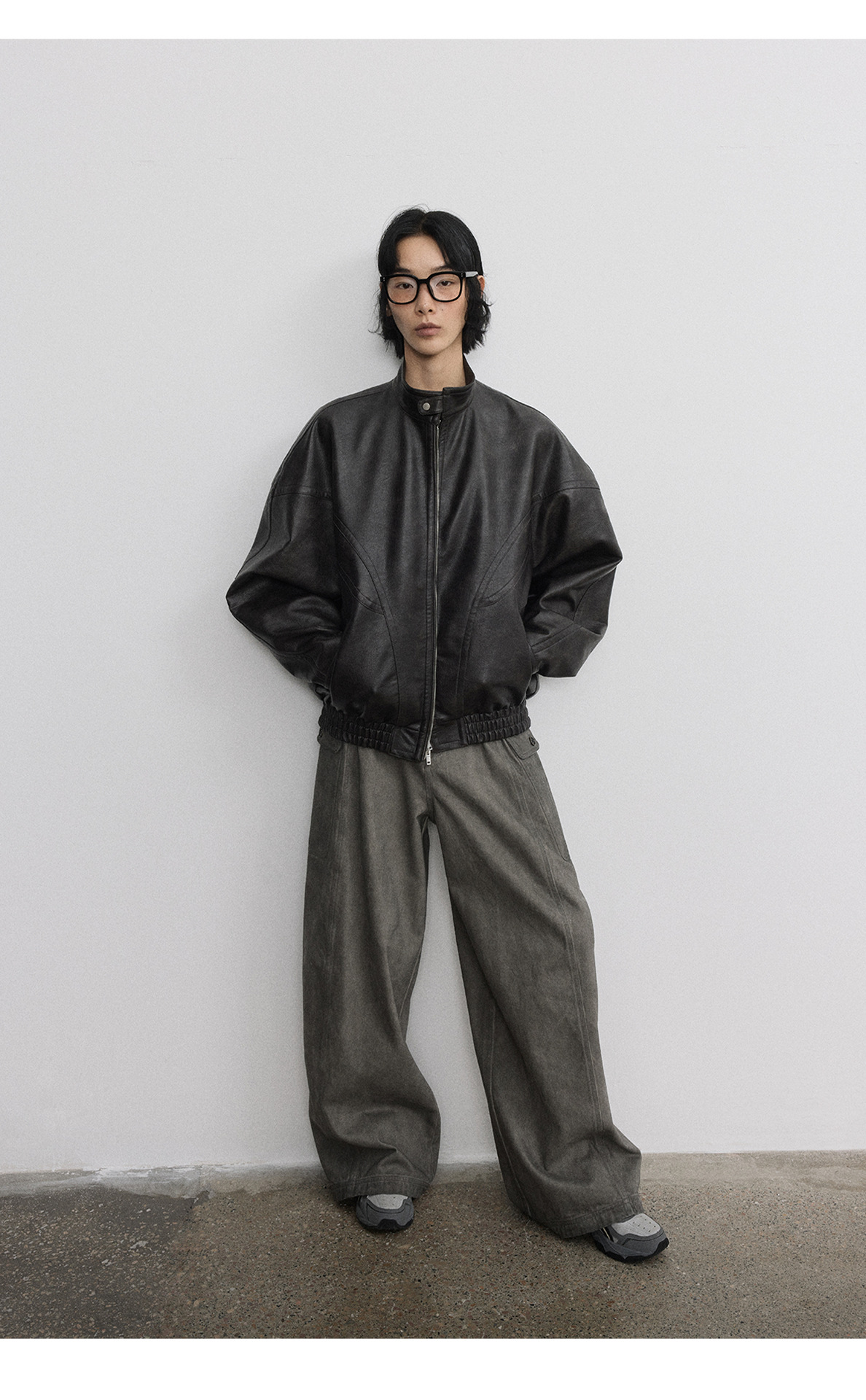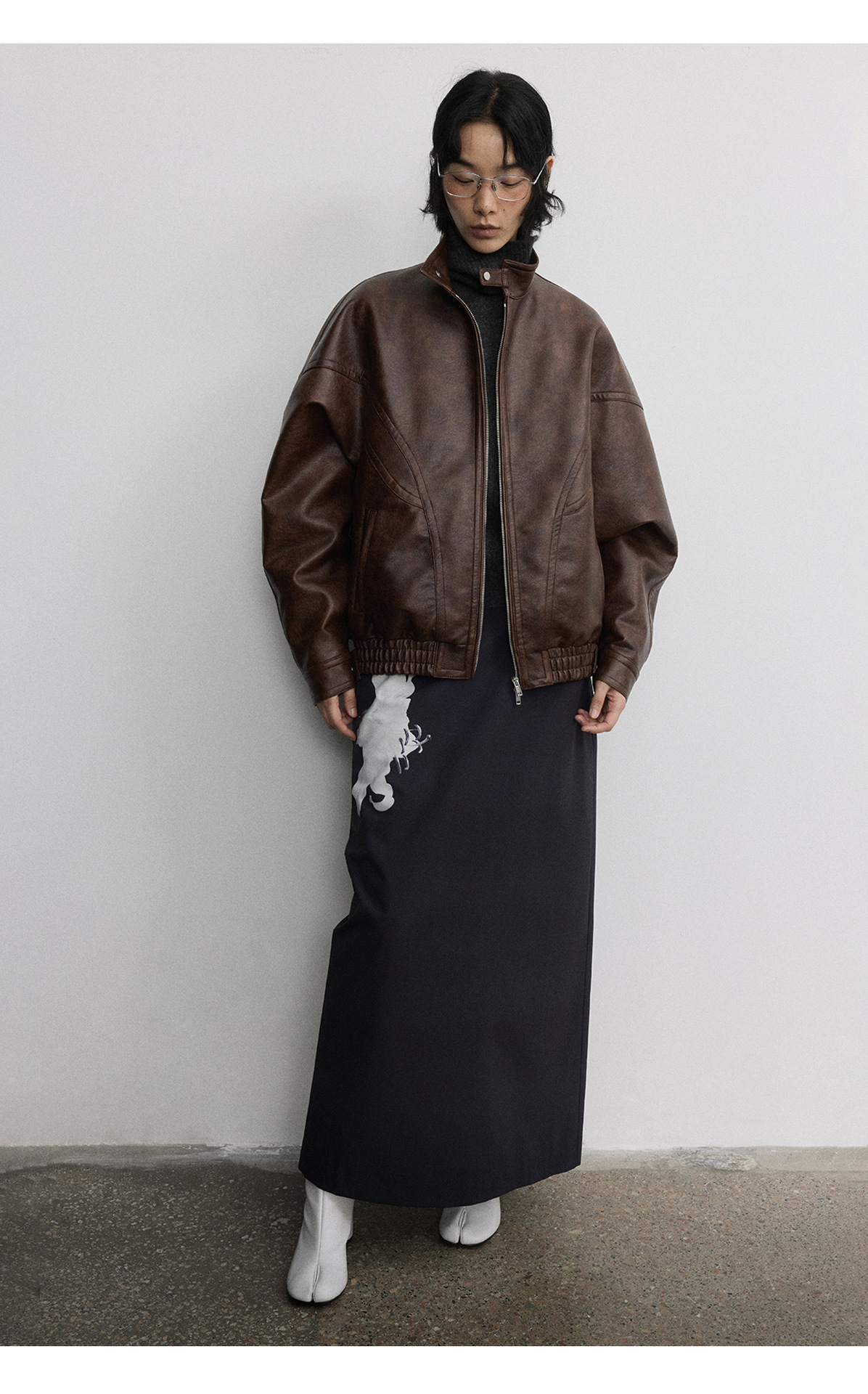 [시간 방문] 여성을위한 새로운 레트로 스탠드 칼라 스티치 다목적 pu 가죽 자켓 느슨한 긴팔 자켓 V7712스토어 가기