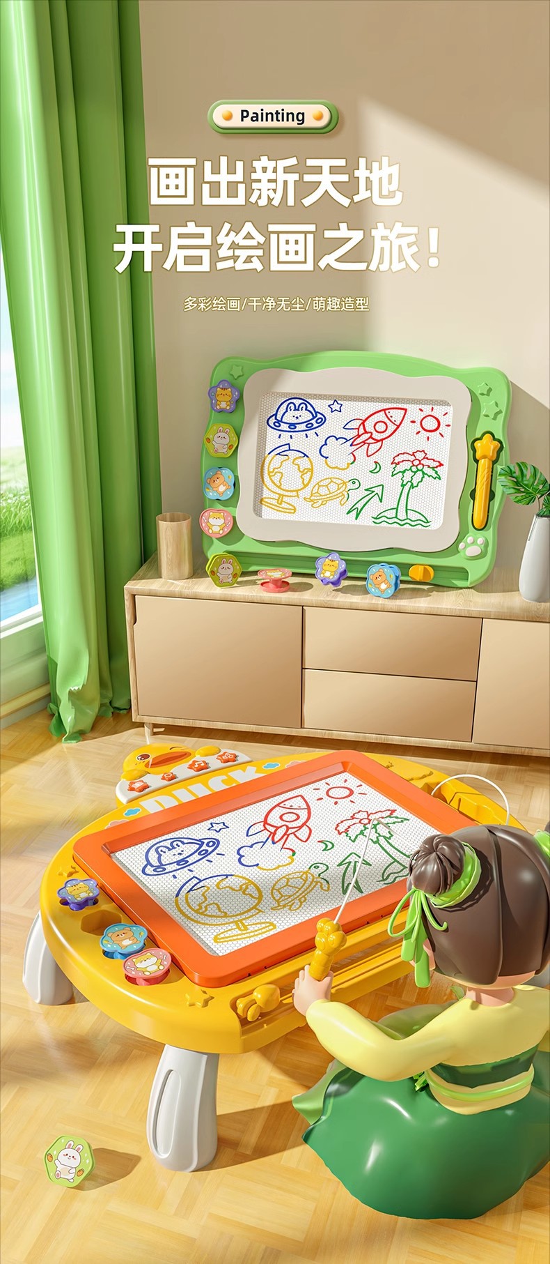 초대형 어린이 드로잉 보드 마그네틱 필기 낙서 보드 컬러 가정용 지울 수있는 어린이 장난감 아기 3 세 5스토어 가기