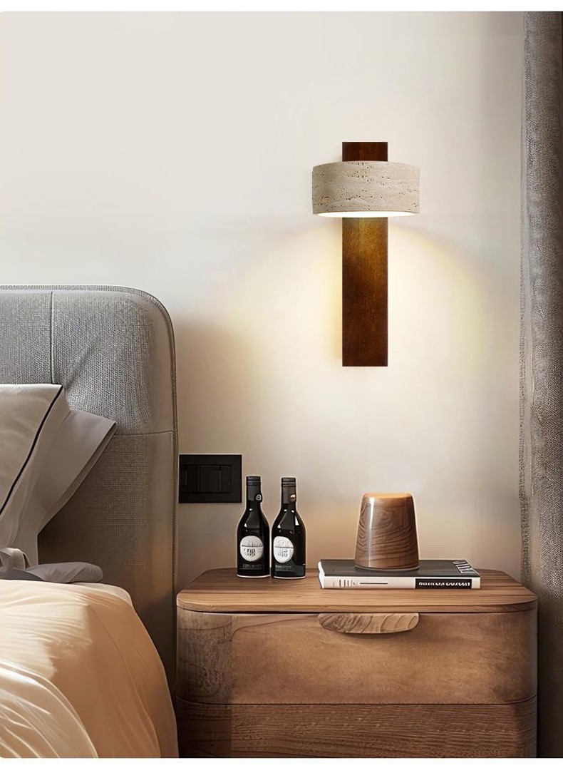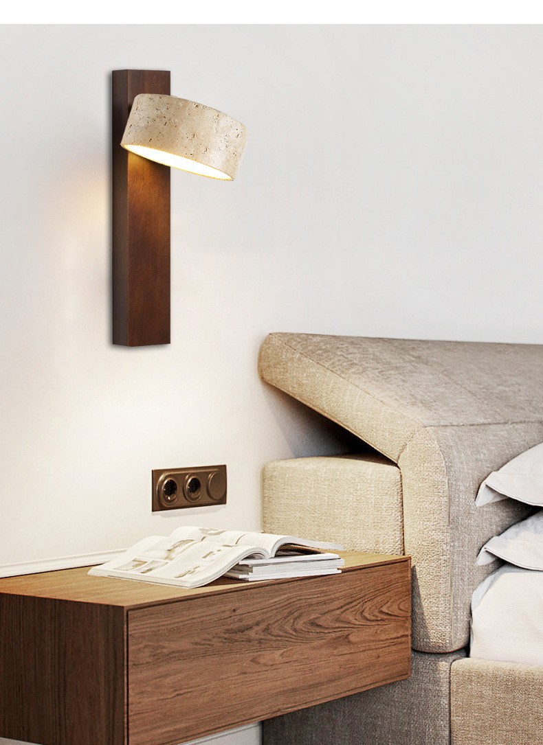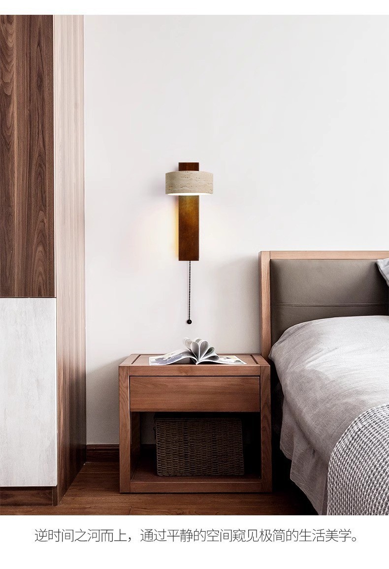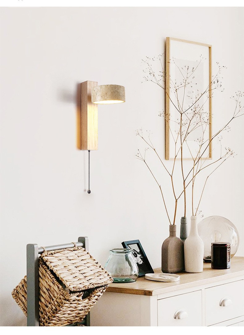 노란 동굴 돌 벽 램프 당김 와이어 스위치가있는 회전 가능한 단단한 나무 침대 헤드 램프 일본 스타일의 조용한 바람 따뜻한 홈스테이 Ausade 램프스토어 가기