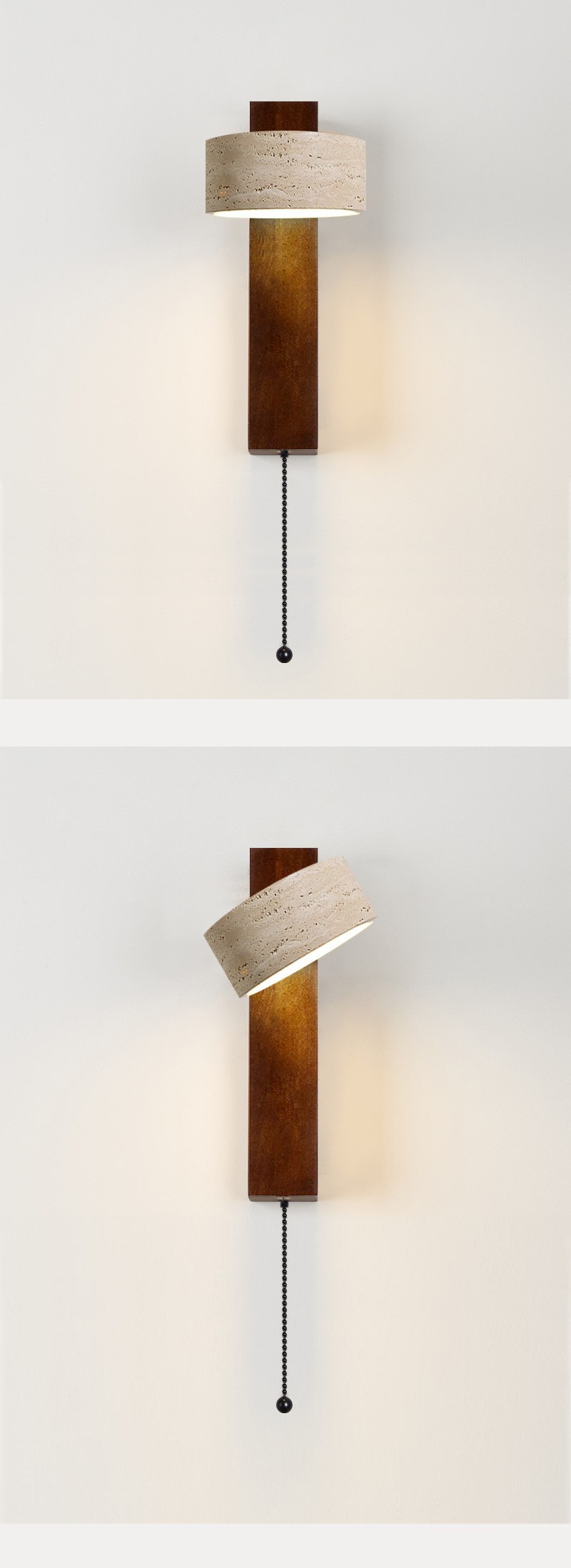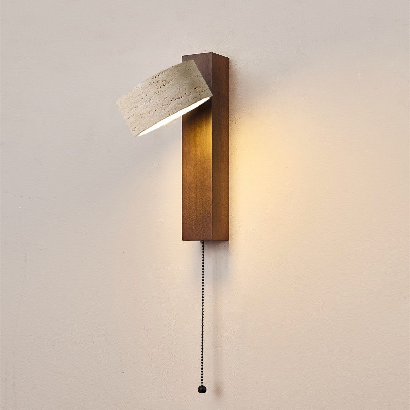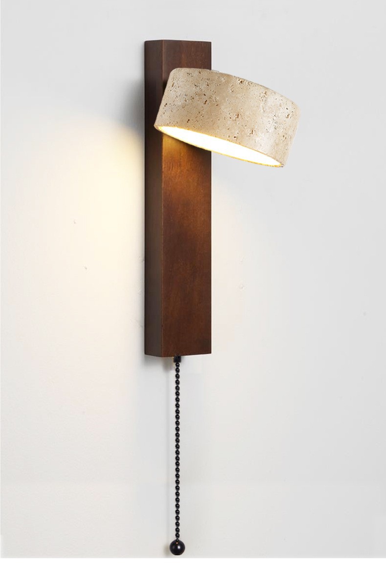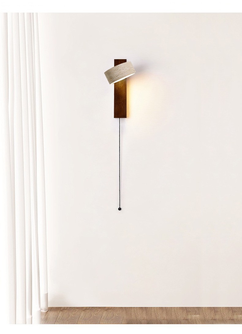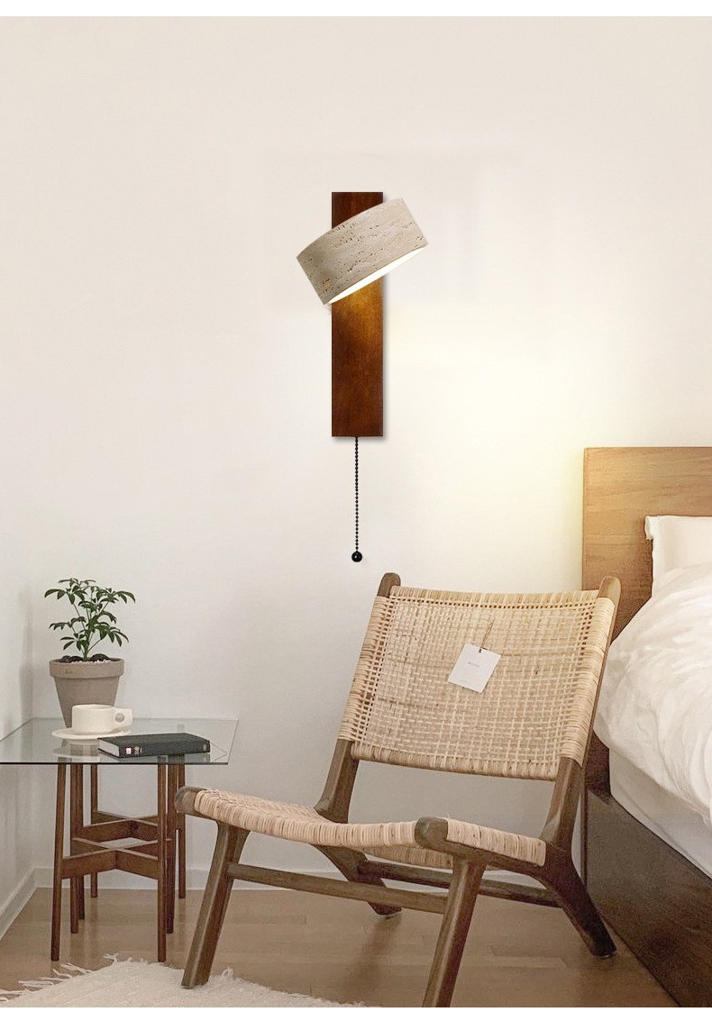 노란 동굴 돌 벽 램프 당김 와이어 스위치가있는 회전 가능한 단단한 나무 침대 헤드 램프 일본 스타일의 조용한 바람 따뜻한 홈스테이 Ausade 램프