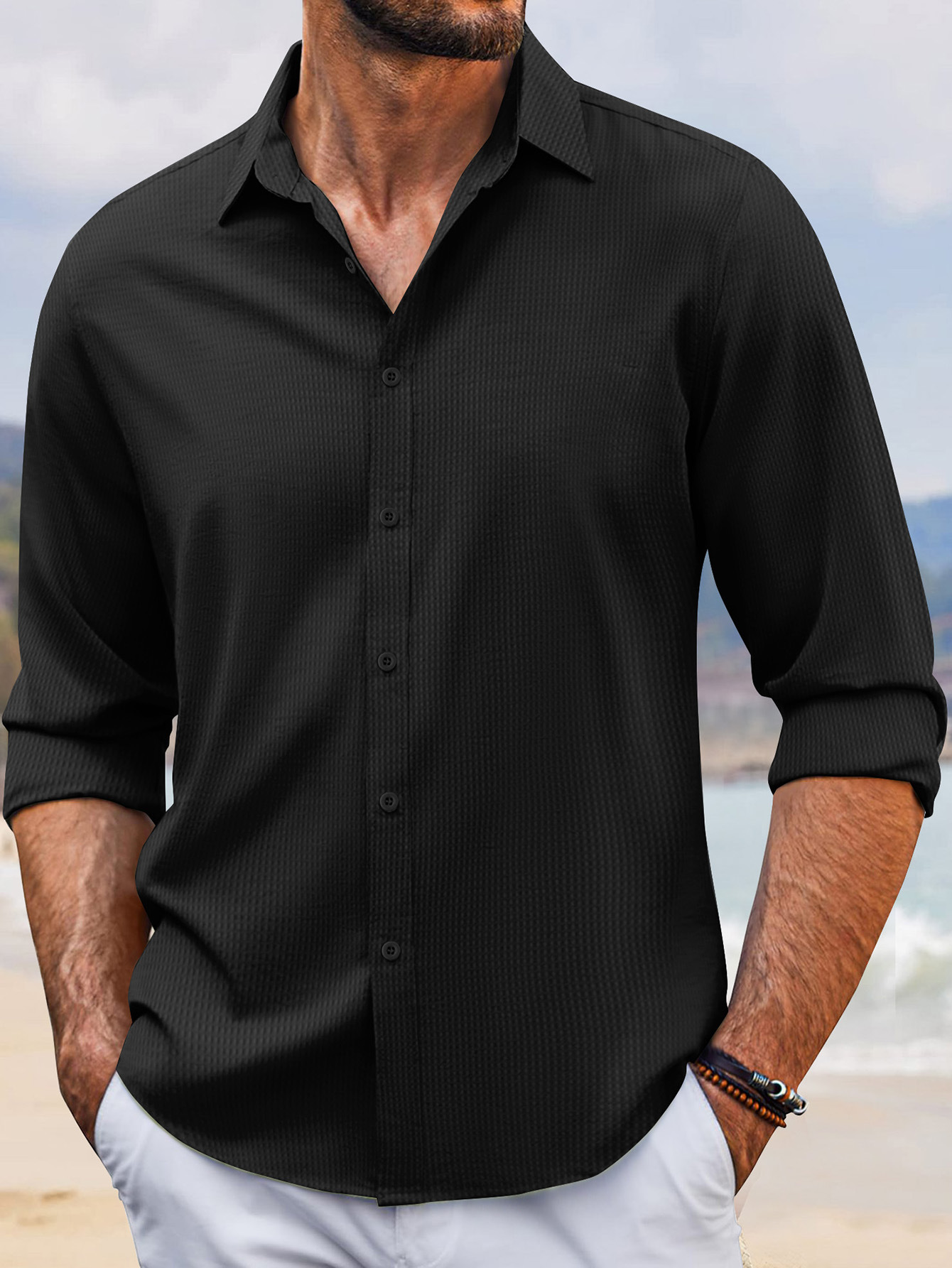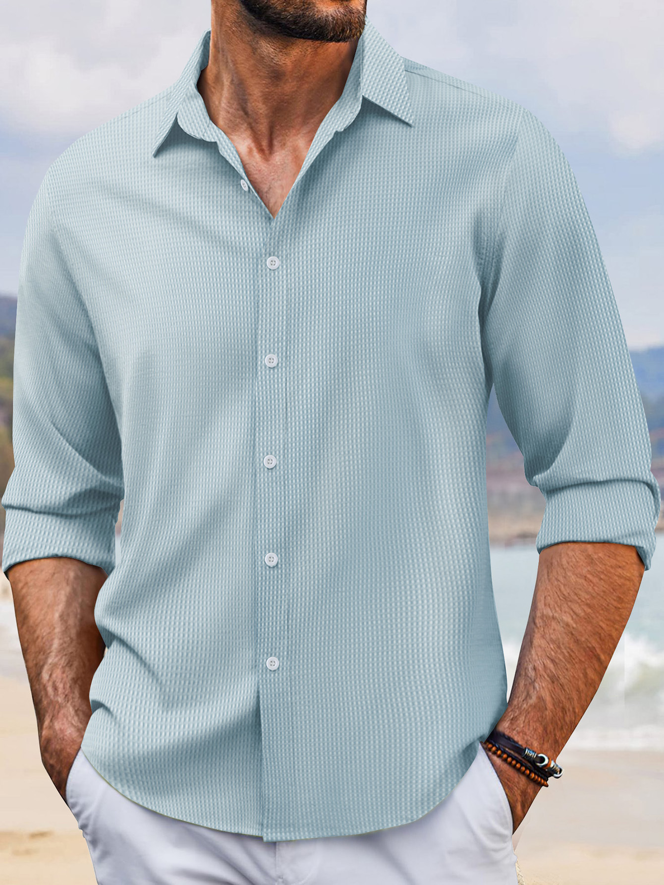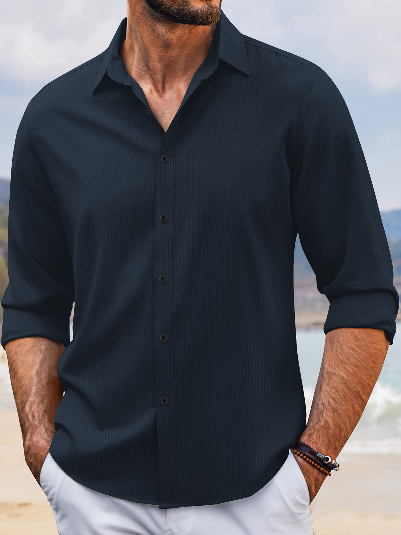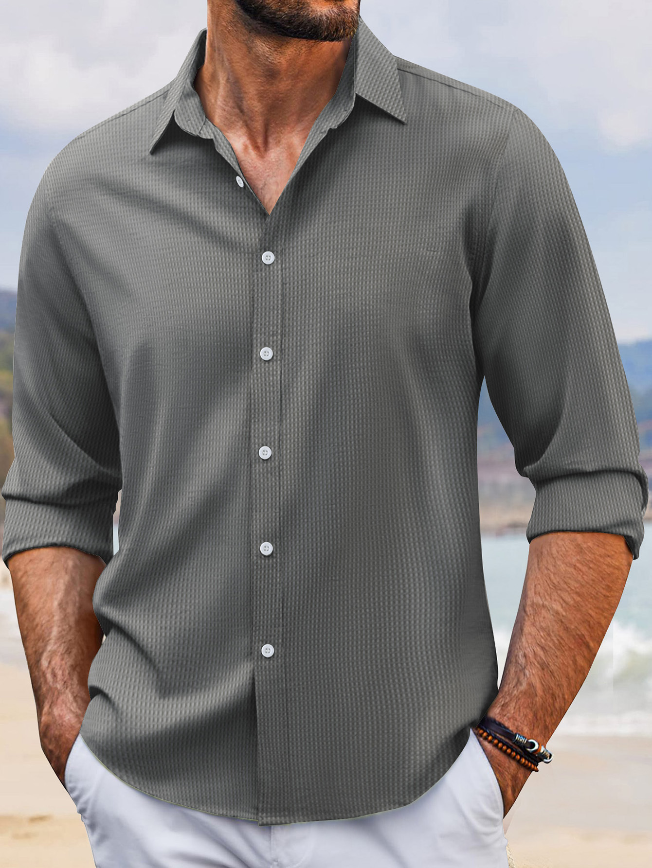 2024 년 봄과 가을 유럽과 미국 국경 새로운 빠른 판매 아마존 폴카 도트 싱글 브레스트 남성 옷깃 긴 소매 셔츠스토어 가기