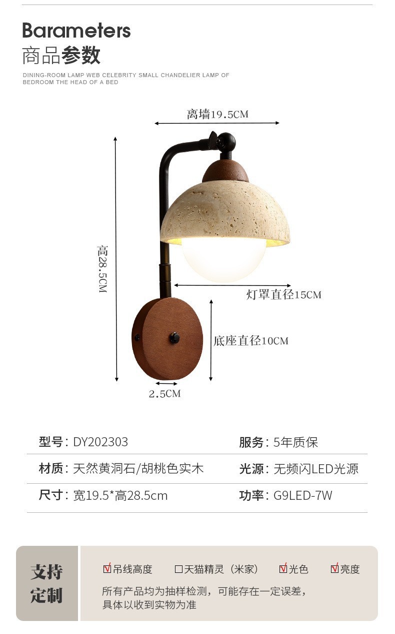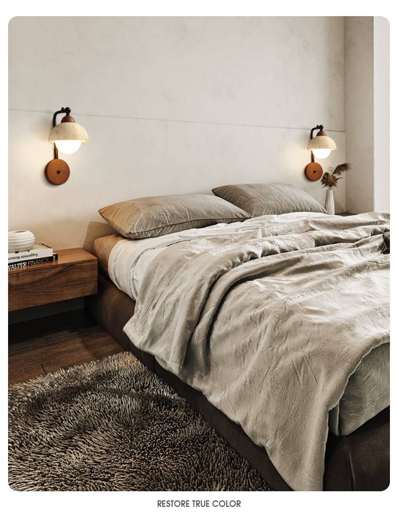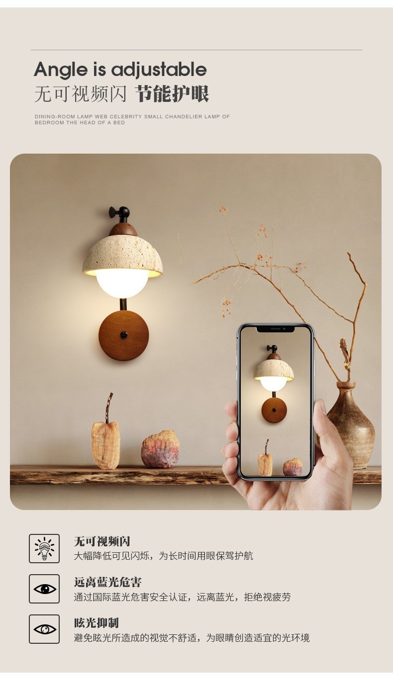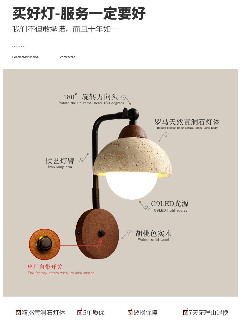 조용한 바람 노란 동굴 돌 벽 램프 북유럽 홈스테이 레스토랑 복도 침실 침실 레트로 월넛 컬러 벽 램프스토어 가기
