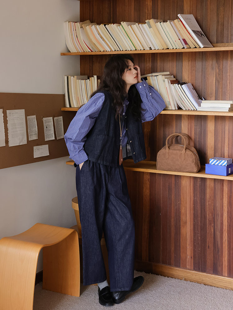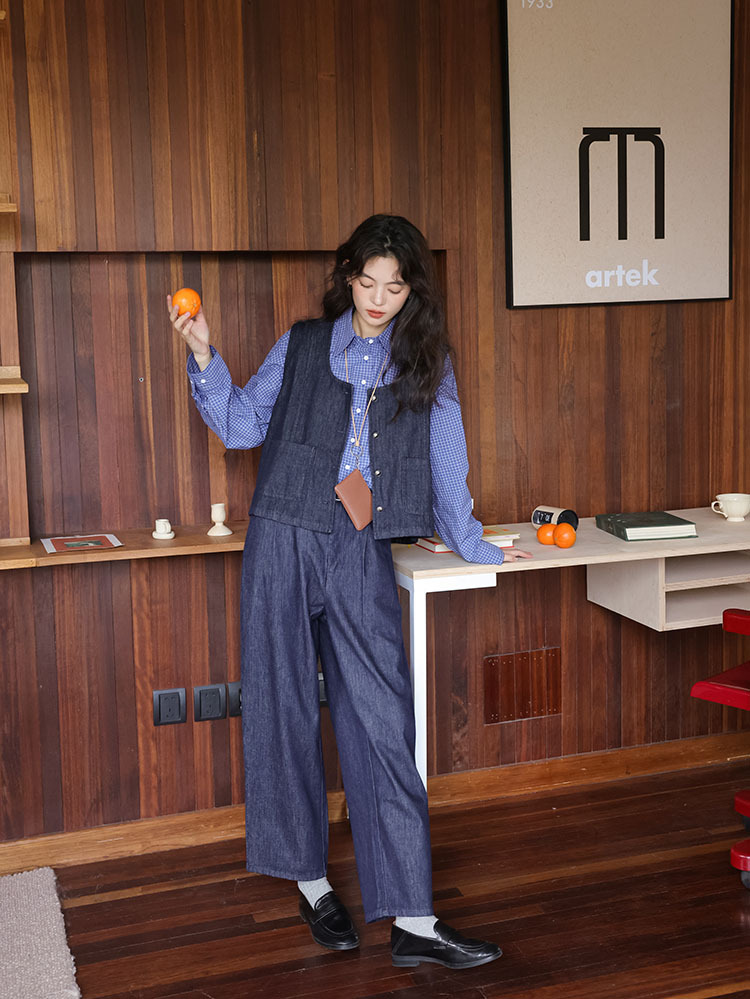 • A46 다크블루 데님 조끼(싱글 조끼)