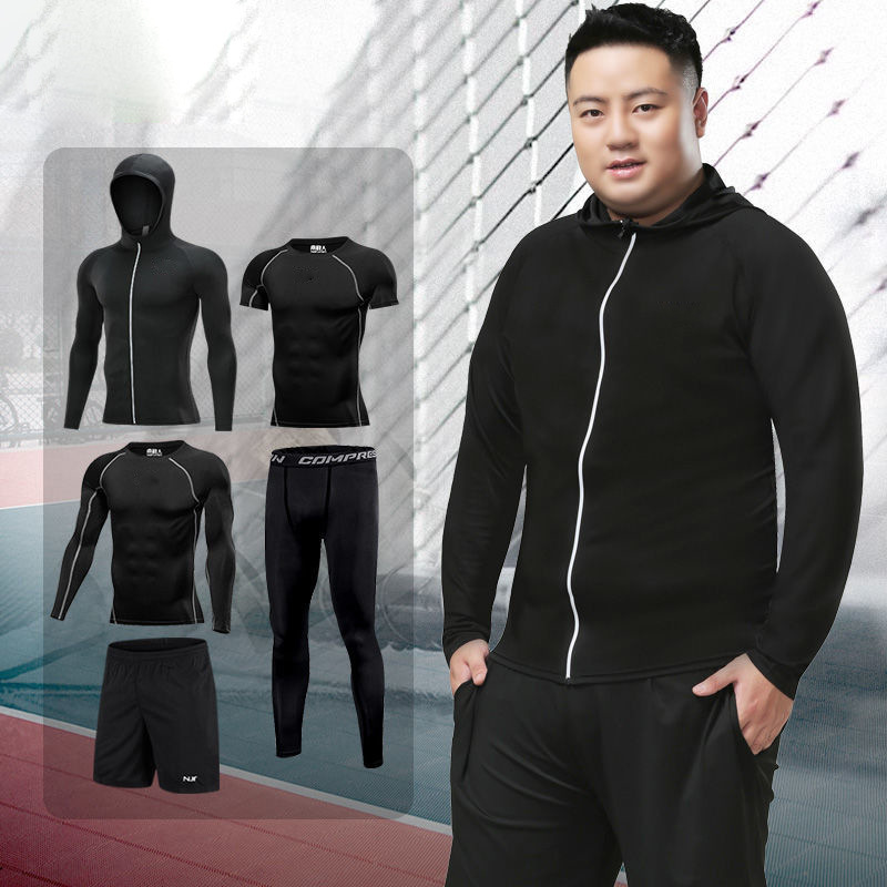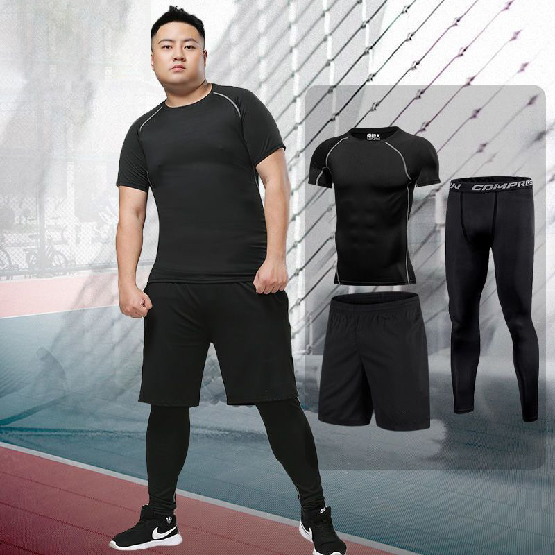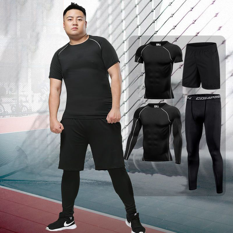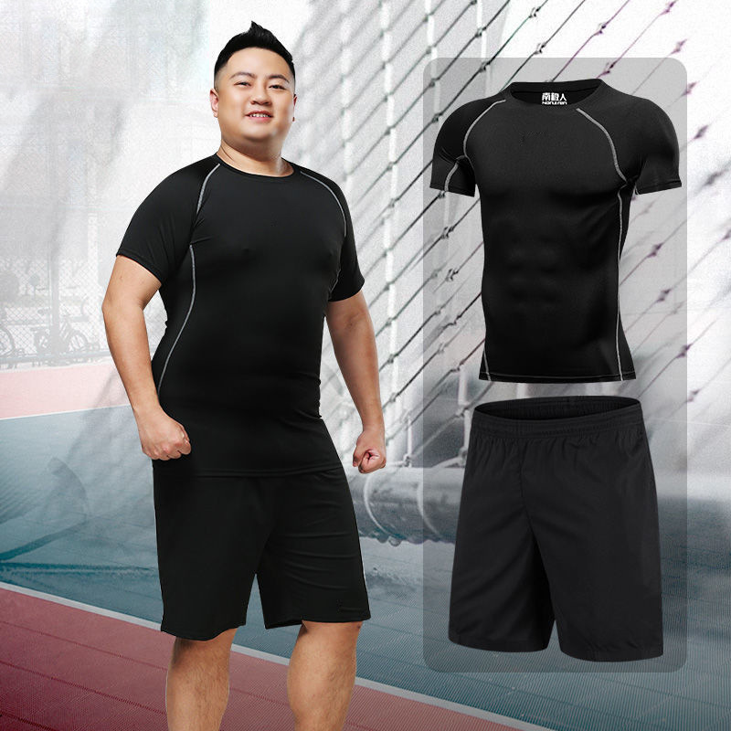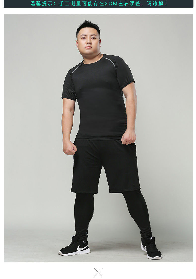 재고 플러스 사이즈 피트니스 세트 세트 남성 플러스 지방 확대 꽉 옷 스포츠 달리기 뚱뚱한 남자 빠른 건조 훈련 세트