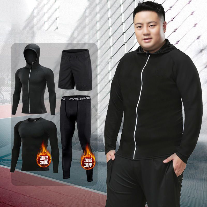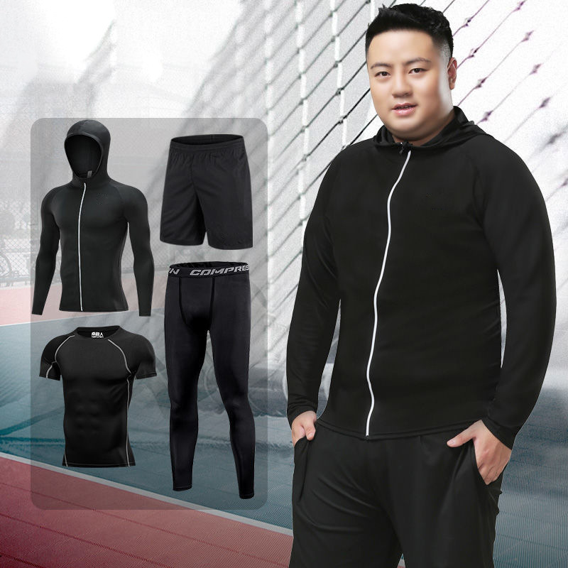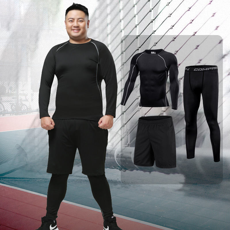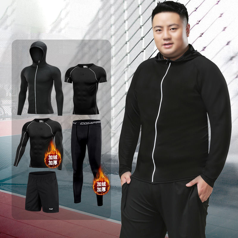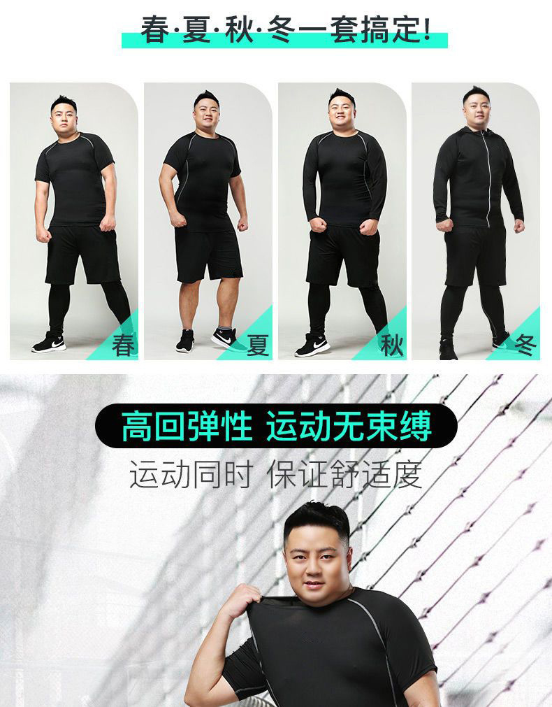 재고 플러스 사이즈 피트니스 세트 세트 남성 플러스 지방 확대 꽉 옷 스포츠 달리기 뚱뚱한 남자 빠른 건조 훈련 세트