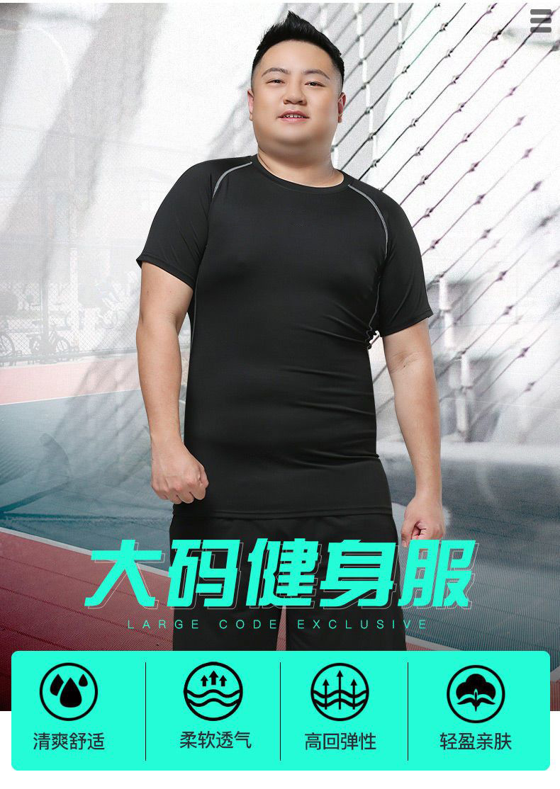 재고 플러스 사이즈 피트니스 세트 세트 남성 플러스 지방 확대 꽉 옷 스포츠 달리기 뚱뚱한 남자 빠른 건조 훈련 세트스토어 가기