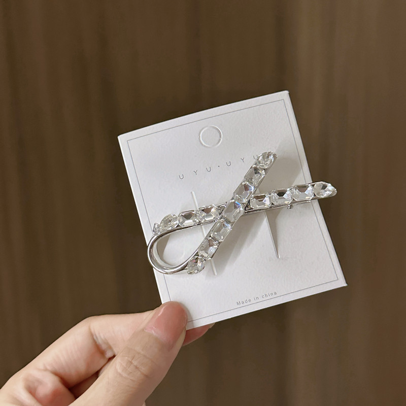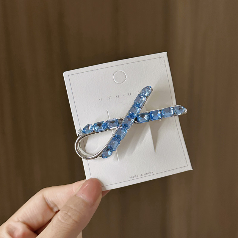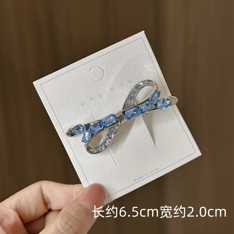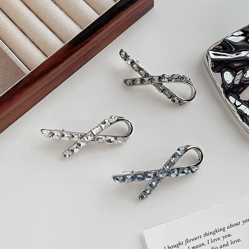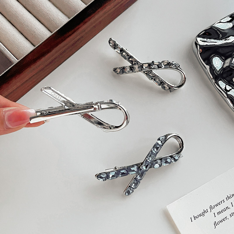 나비 리본 크리스탈 헤어핀, 우아한 크로스 앞머리핀, 고급스러운 패션 사이드핀 헤어 액세서리
