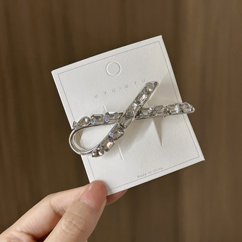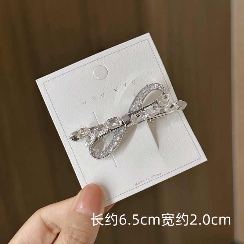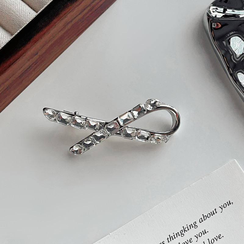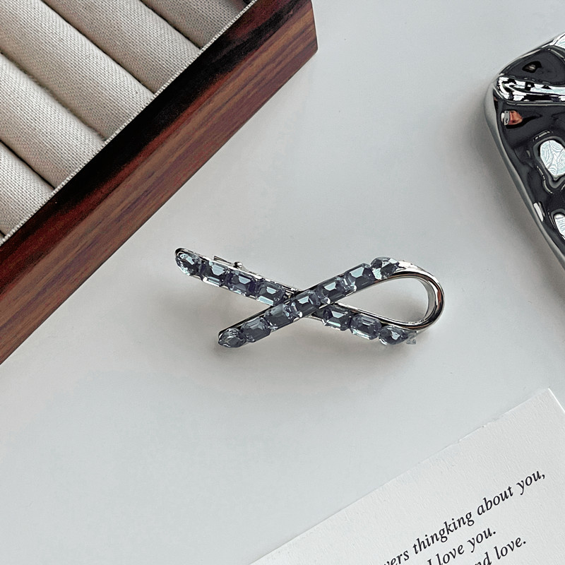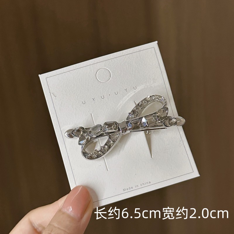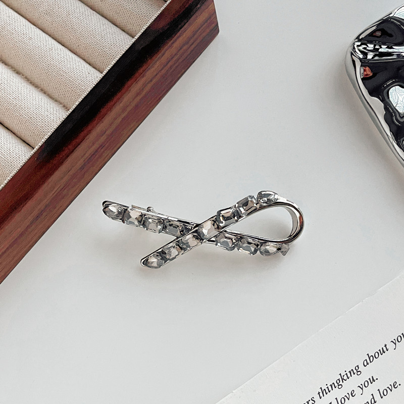 나비 리본 크리스탈 헤어핀, 우아한 크로스 앞머리핀, 고급스러운 패션 사이드핀 헤어 액세서리