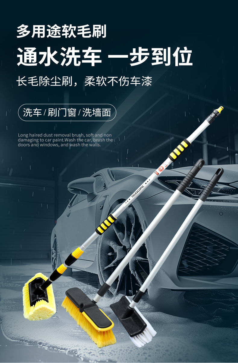 자동차 휴대용 물 세척 브러시 이동식 망원경 자동차 세척 도구 청소 브러시 물 스프레이 부드러운 브러시