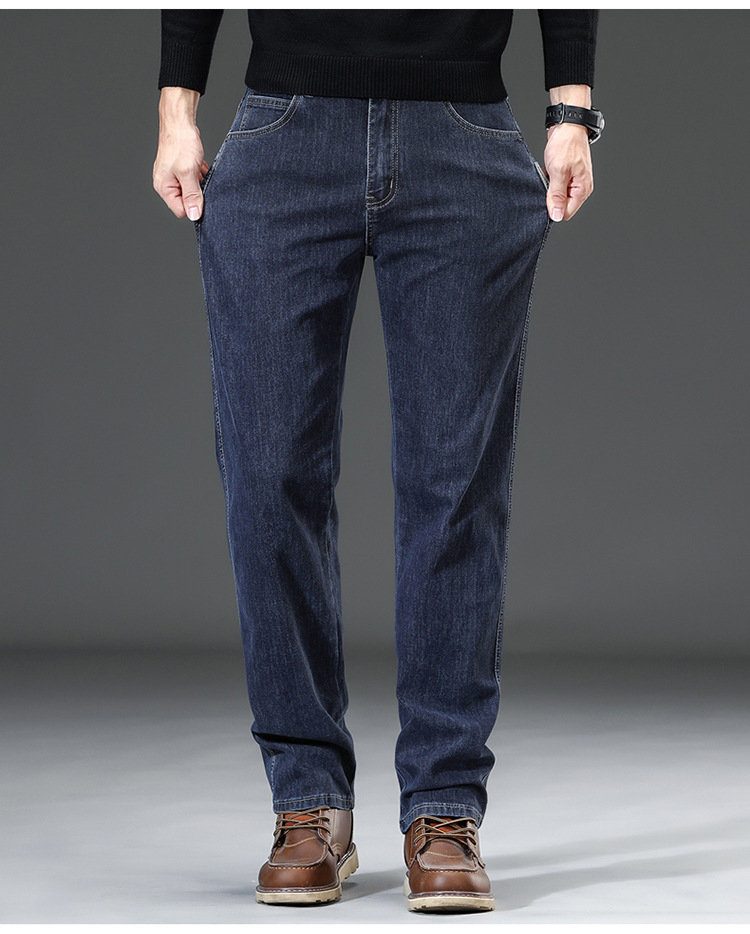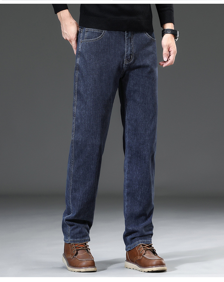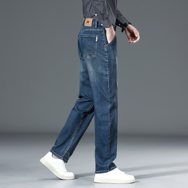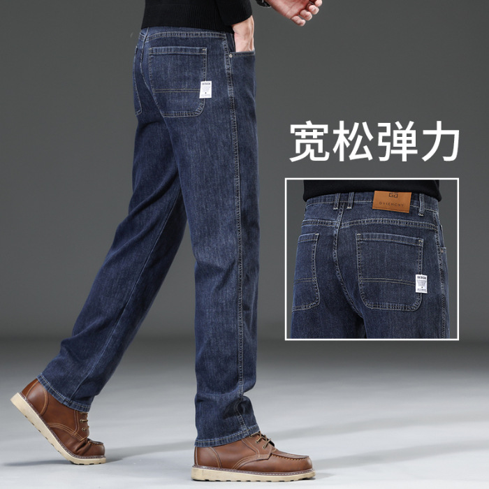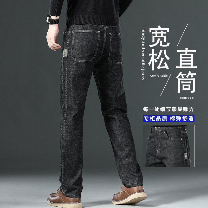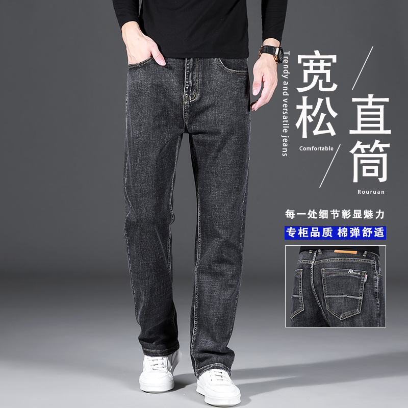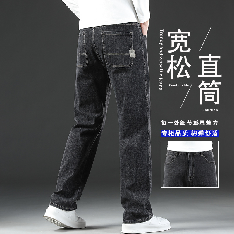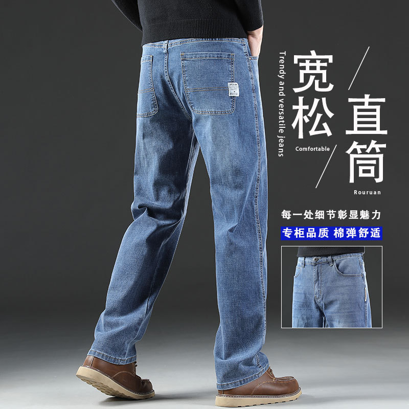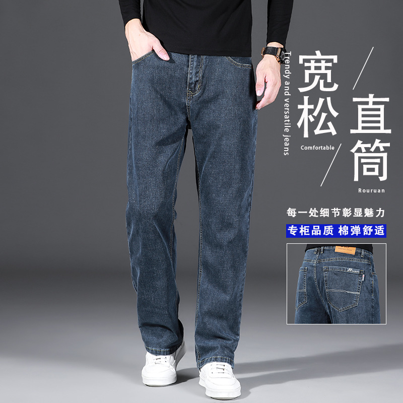 새로운 하이 엔드 청바지 남성용 루즈 스트레이트 와이드 레그 봄과 가을 바지 Xintang 플러스 사이즈 중년 아빠 바지