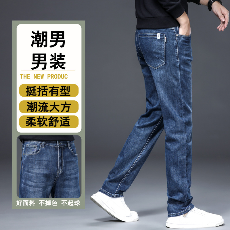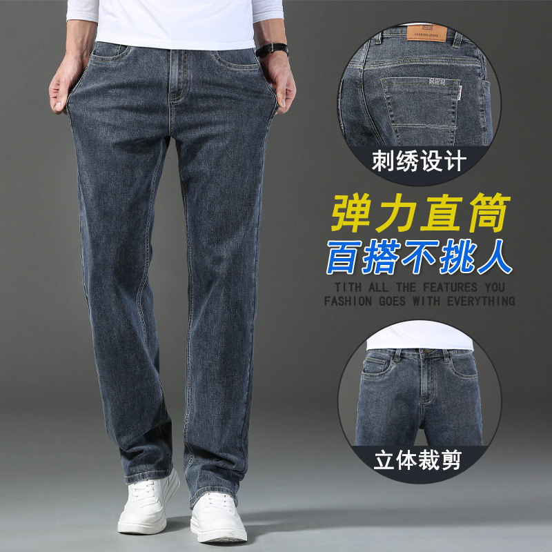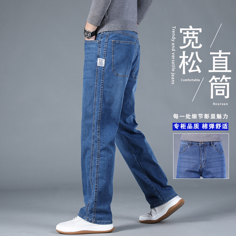 새로운 하이 엔드 청바지 남성용 루즈 스트레이트 와이드 레그 봄과 가을 바지 Xintang 플러스 사이즈 중년 아빠 바지스토어 가기