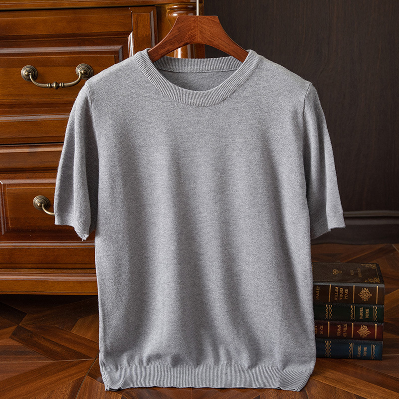 남성용 반팔 티셔츠 한국식 트렌디 한 둥근 목 반소매 봄과 가을 남성용 슬림한 단색 옷 잘 생긴 스웨터스토어 가기