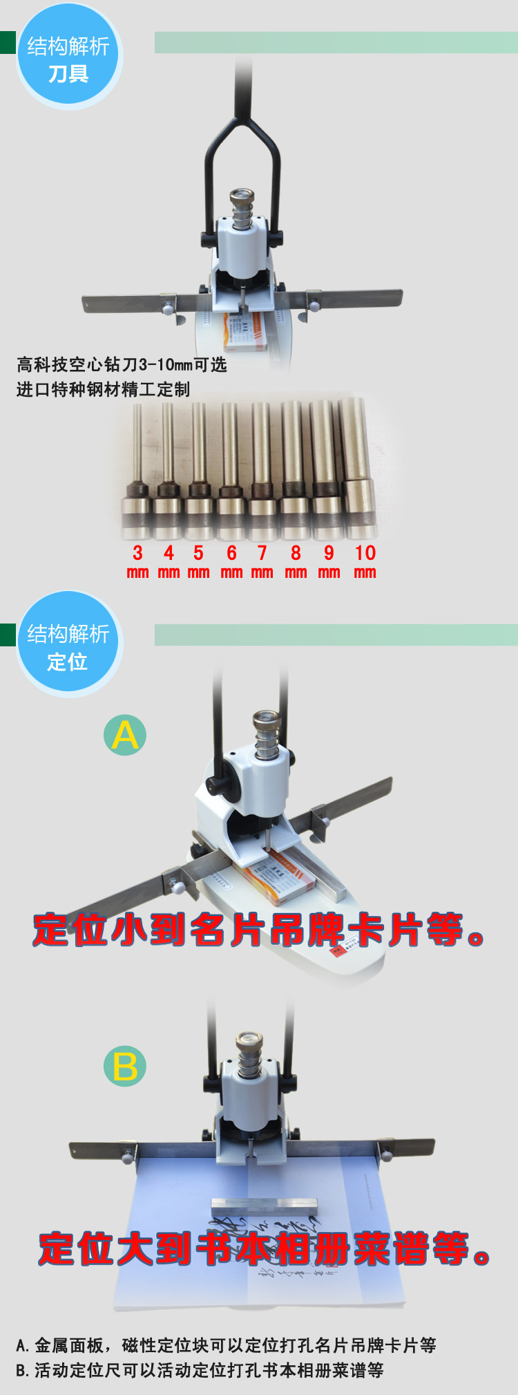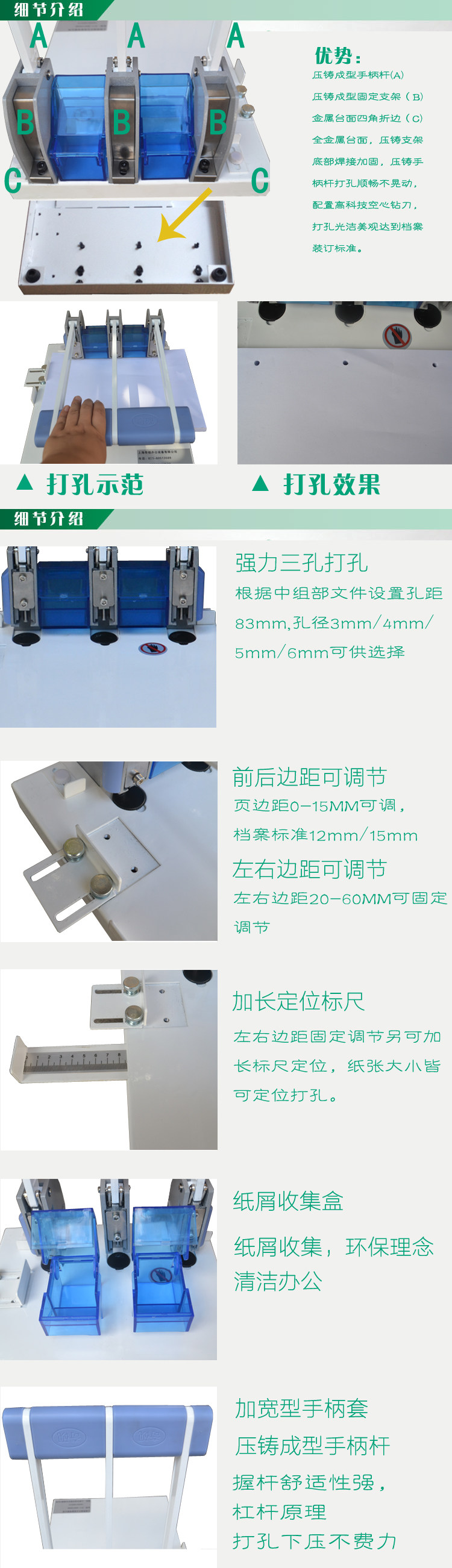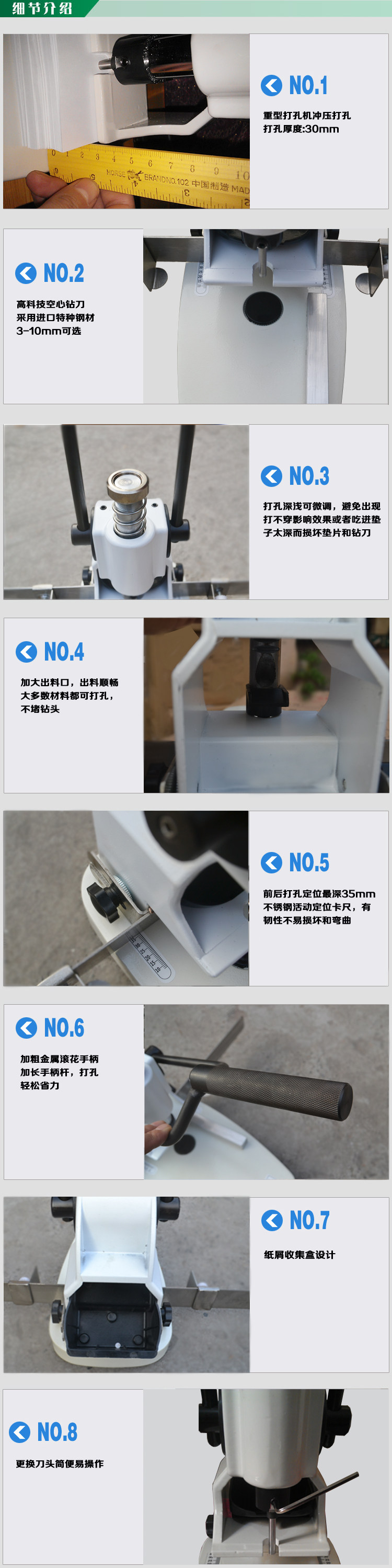 ■高科技空心钻刀打孔光洁没有毛刺,独立式透明纸屑盒实用美观使操作者能清楚地观察钻刀出纸屑情况
