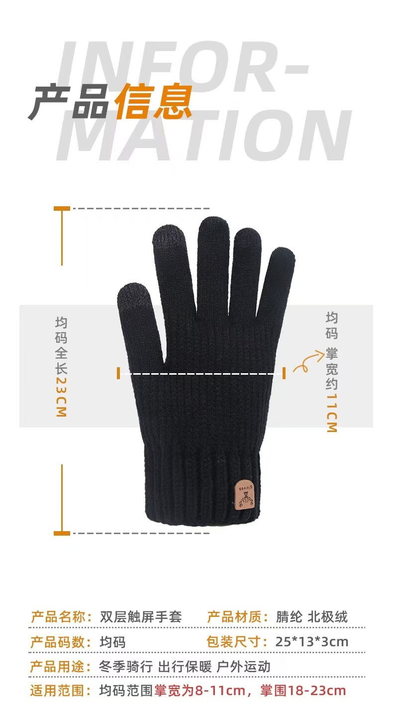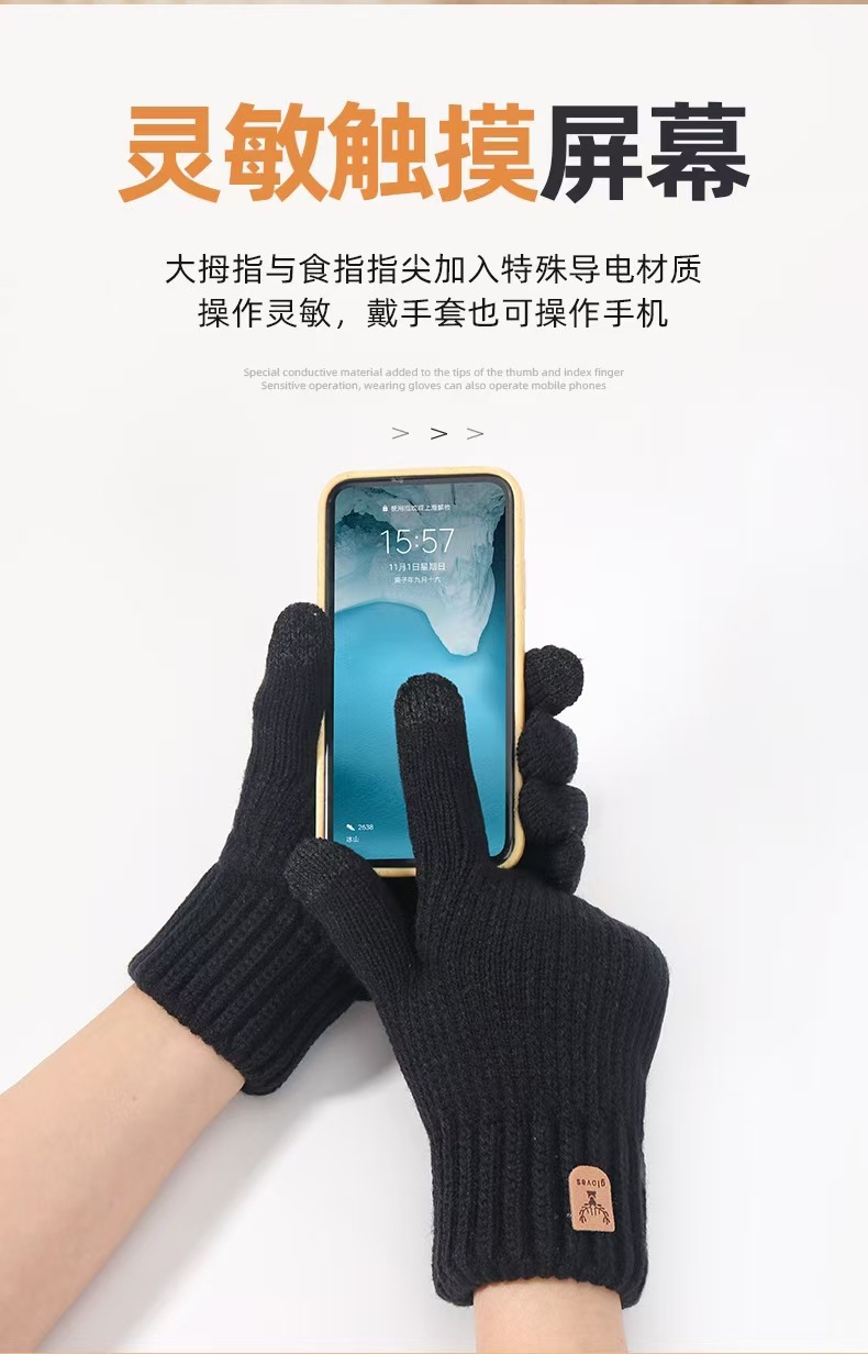 Amazon의 새로운 남성용 겨울 크로스보더 터치 스크린 장갑은 따뜻하고 방한 기능이 있으며 벨벳과 두꺼운 모직 니트 장갑입니다.스토어 가기