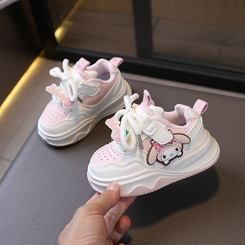 2025 봄과 가을 새로운 어린이 운동화 소녀 운동화 Kuromi 만화 어린이 신발 통기성 부드러운 단독 캐주얼 신발 5스토어 가기