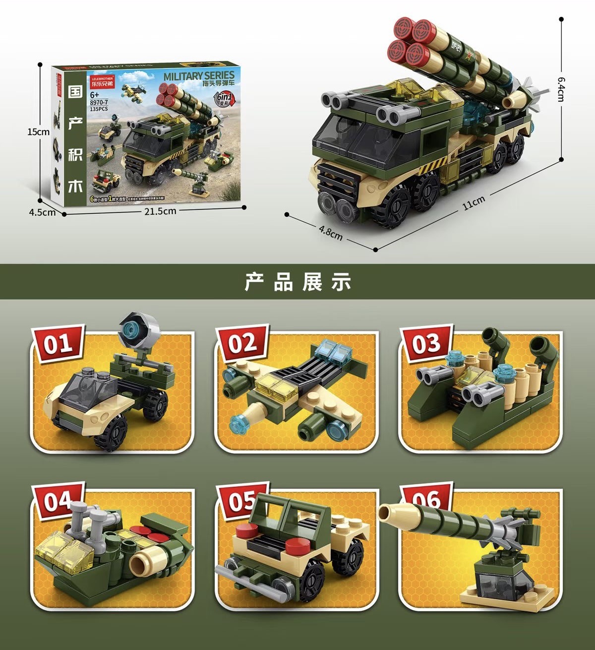 • 8970-7 트랙터 미사일 차량 빌딩 블록 상자 [135PCS]