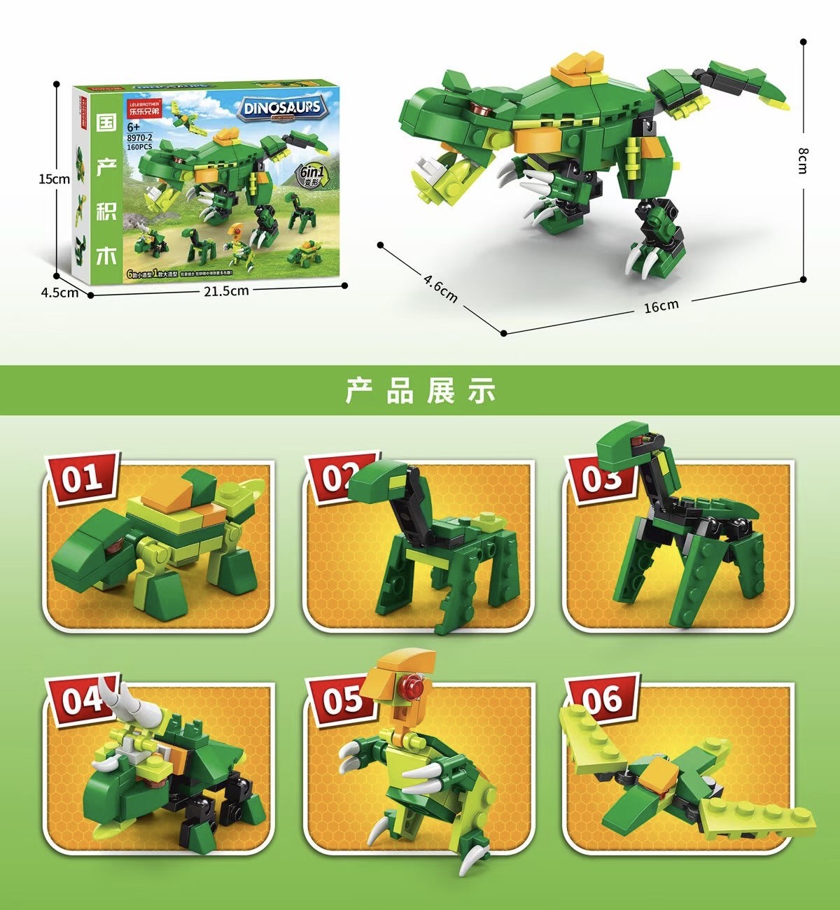 • 8970-2 공룡 변형 빌딩 블록 상자 [160PCS]