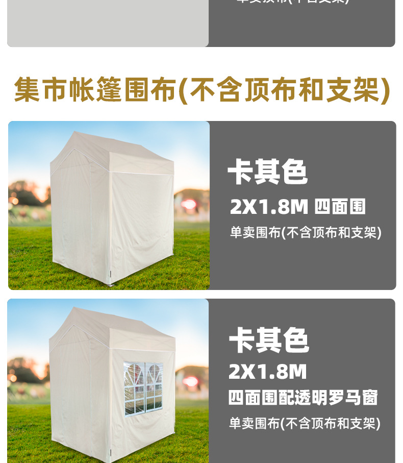 • 투명한 로마 창이 있는 2X1.8M 카키색 4면(브래킷 및 상단 천 제외)