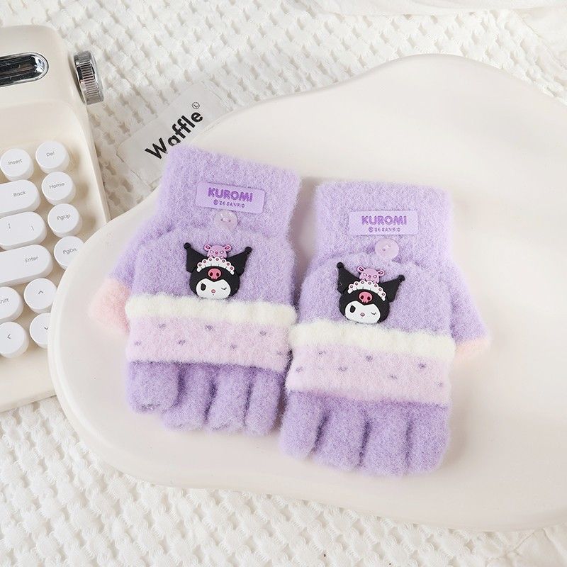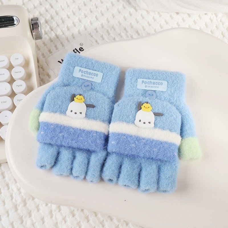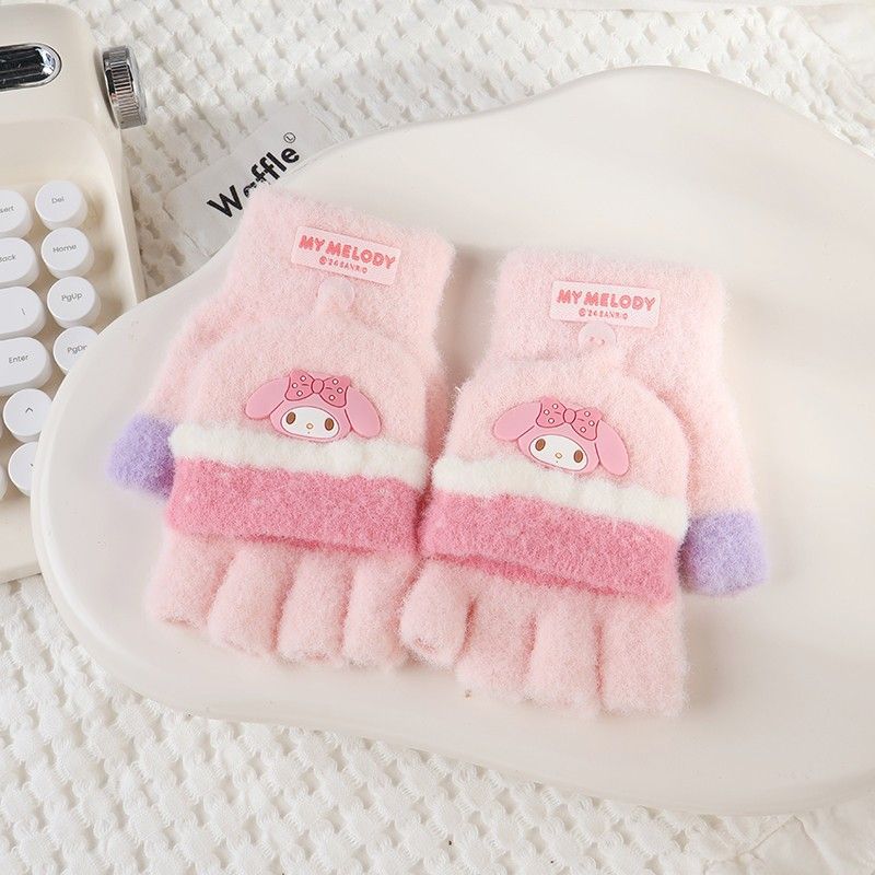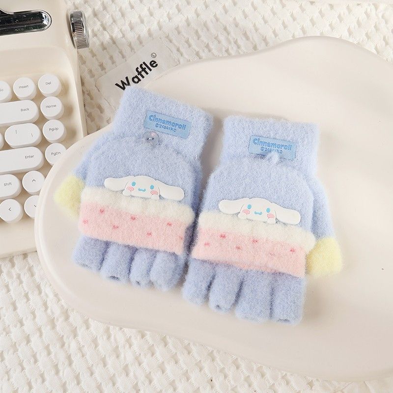 산리오 정품 귀여운 만화 큰 어린이 작은 레이스 플립 커버 장갑 가을과 겨울 따뜻한 감기 방지 봉제 소재 귀여운