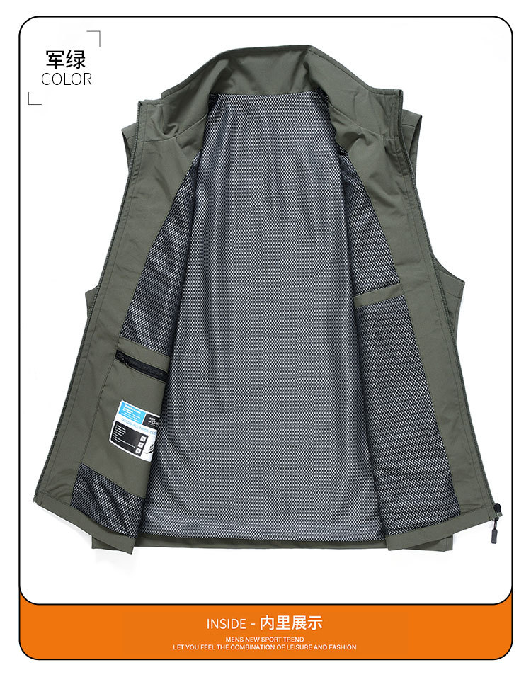 남성 조끼 봄과 가을 얇은 멀티 포켓 조끼 야외 등산 느슨한 조끼 재킷 허리 코트 맞춤 인쇄 로고