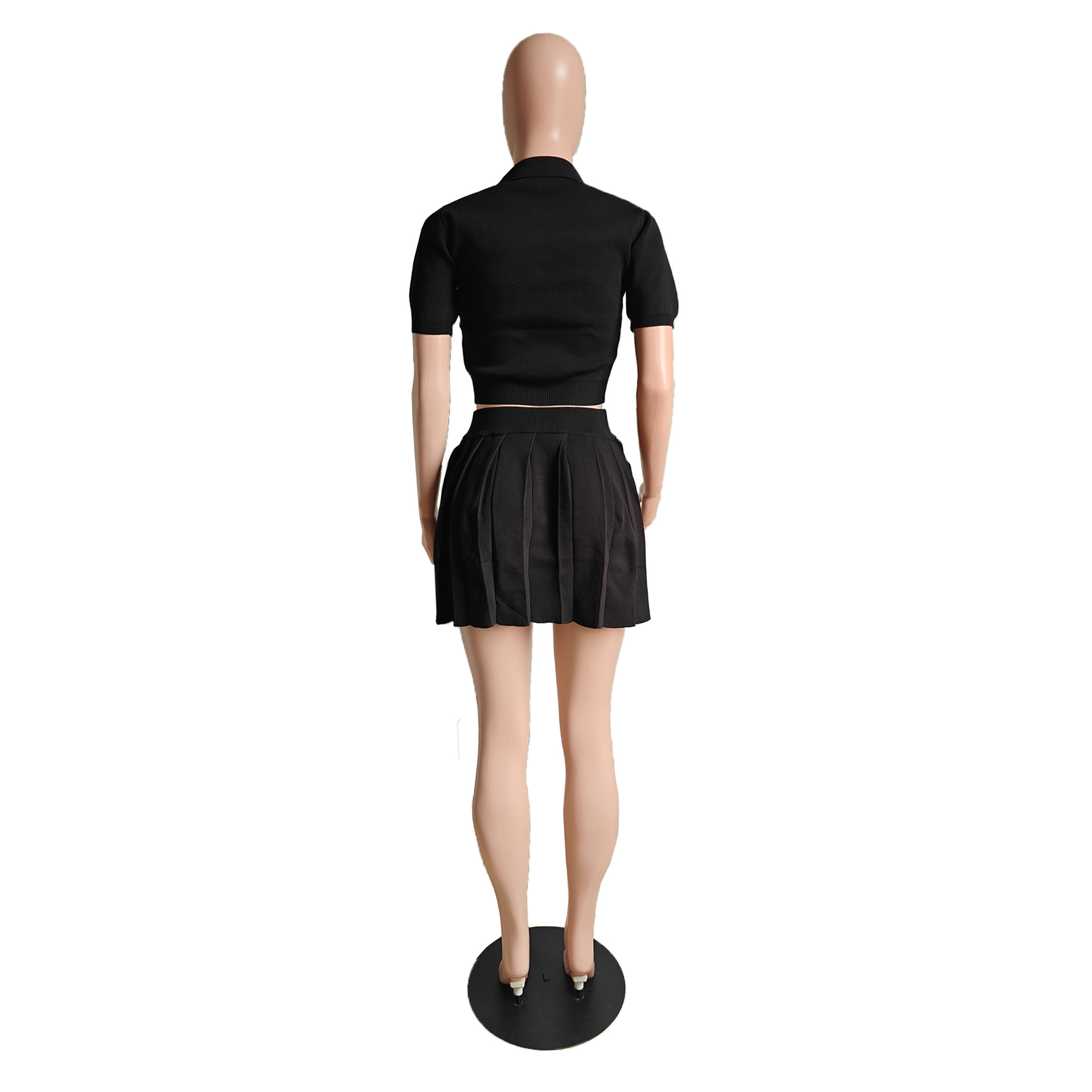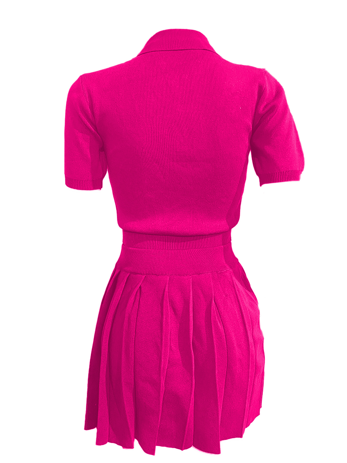 CN0223 유럽과 미국 여성의 2024 가을과 겨울의 새로운 POLO 칼라 브레스트 플리츠 스커트 니트 패션 캐주얼 투피스 세트.