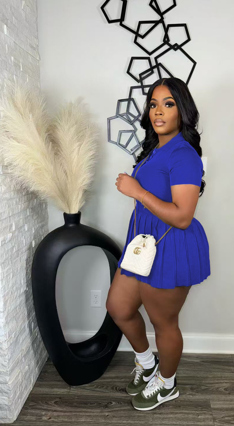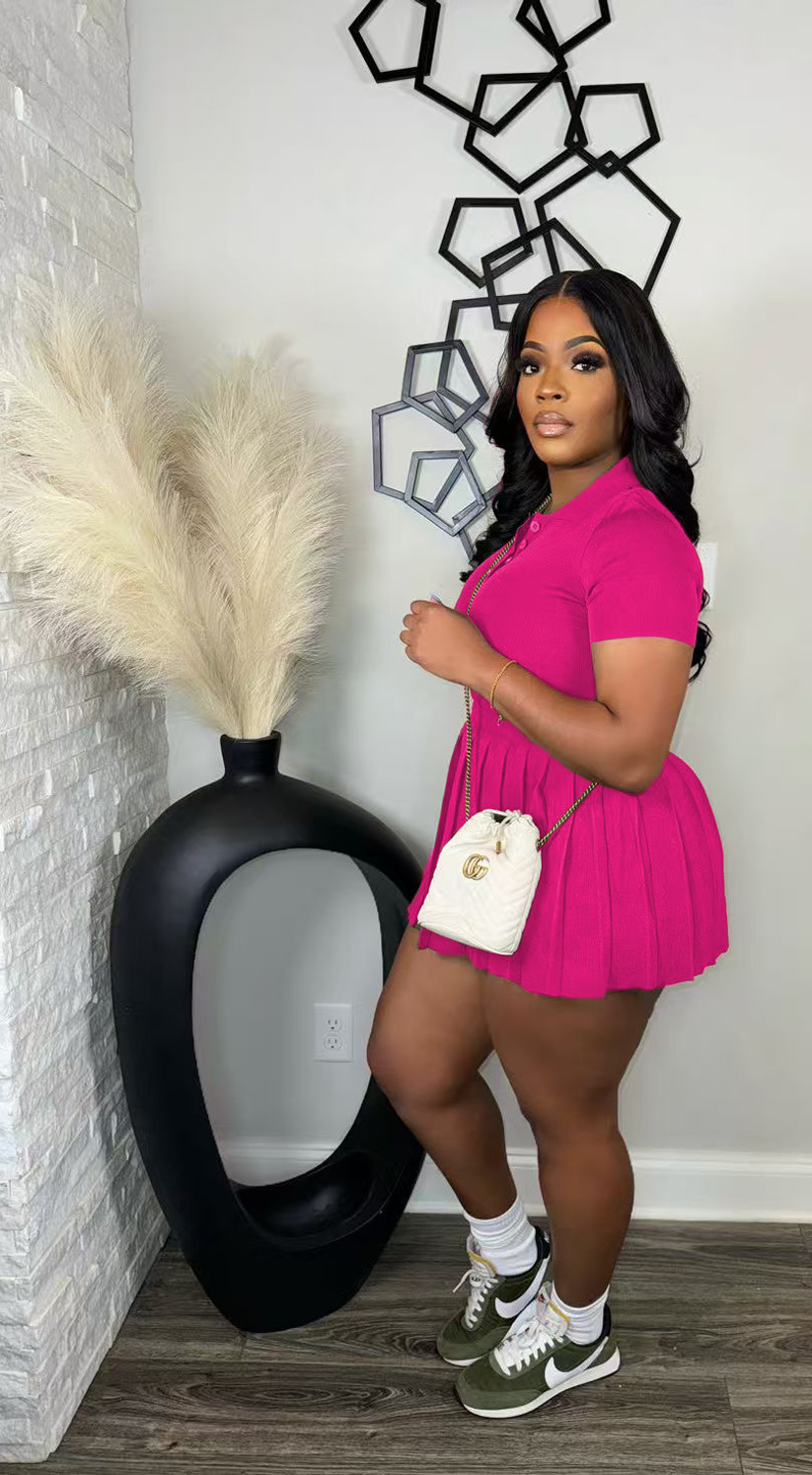 CN0223 유럽과 미국 여성의 2024 가을과 겨울의 새로운 POLO 칼라 브레스트 플리츠 스커트 니트 패션 캐주얼 투피스 세트.스토어 가기