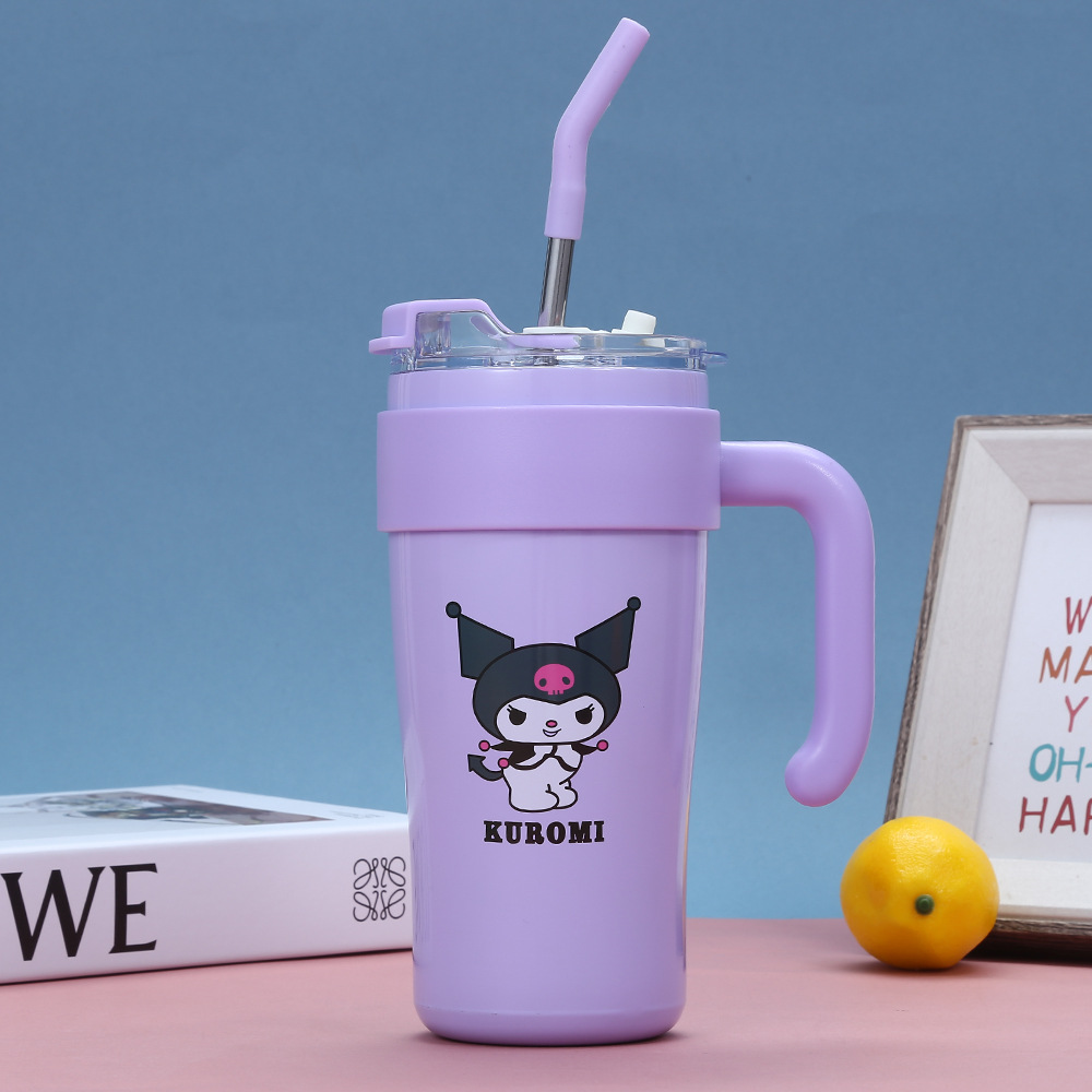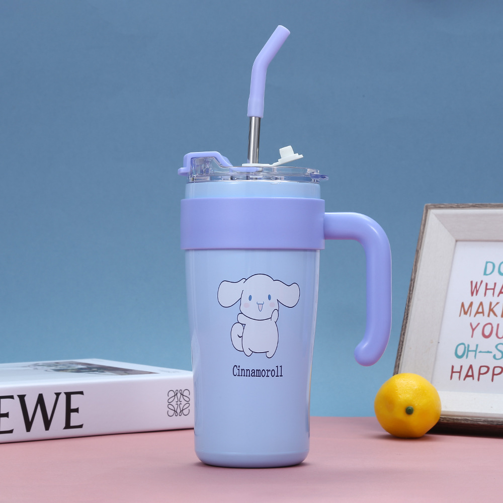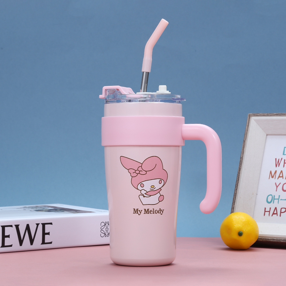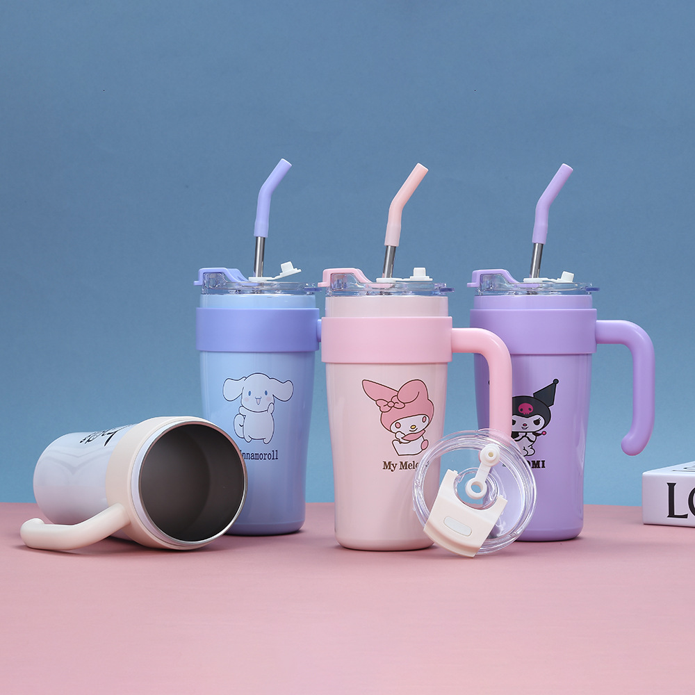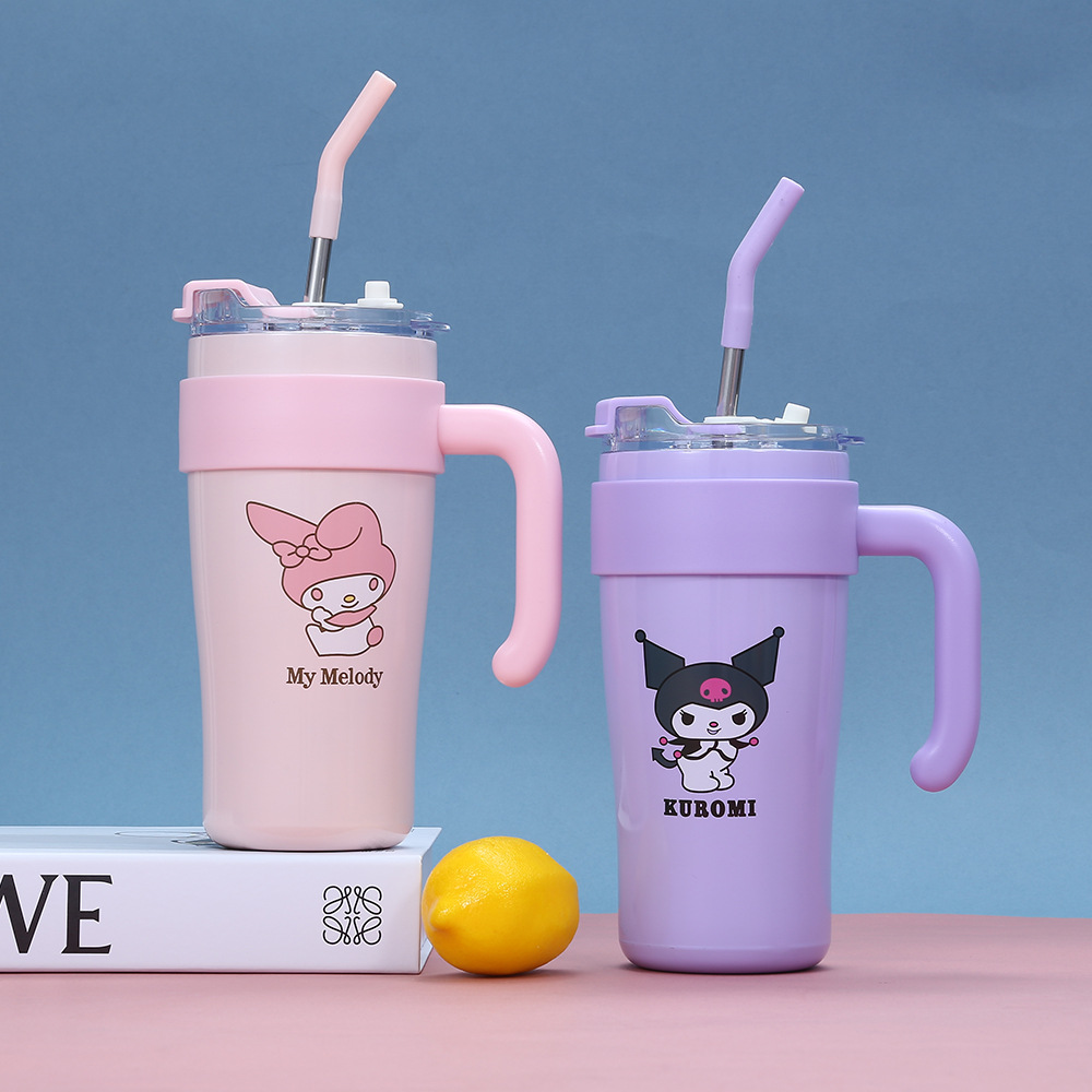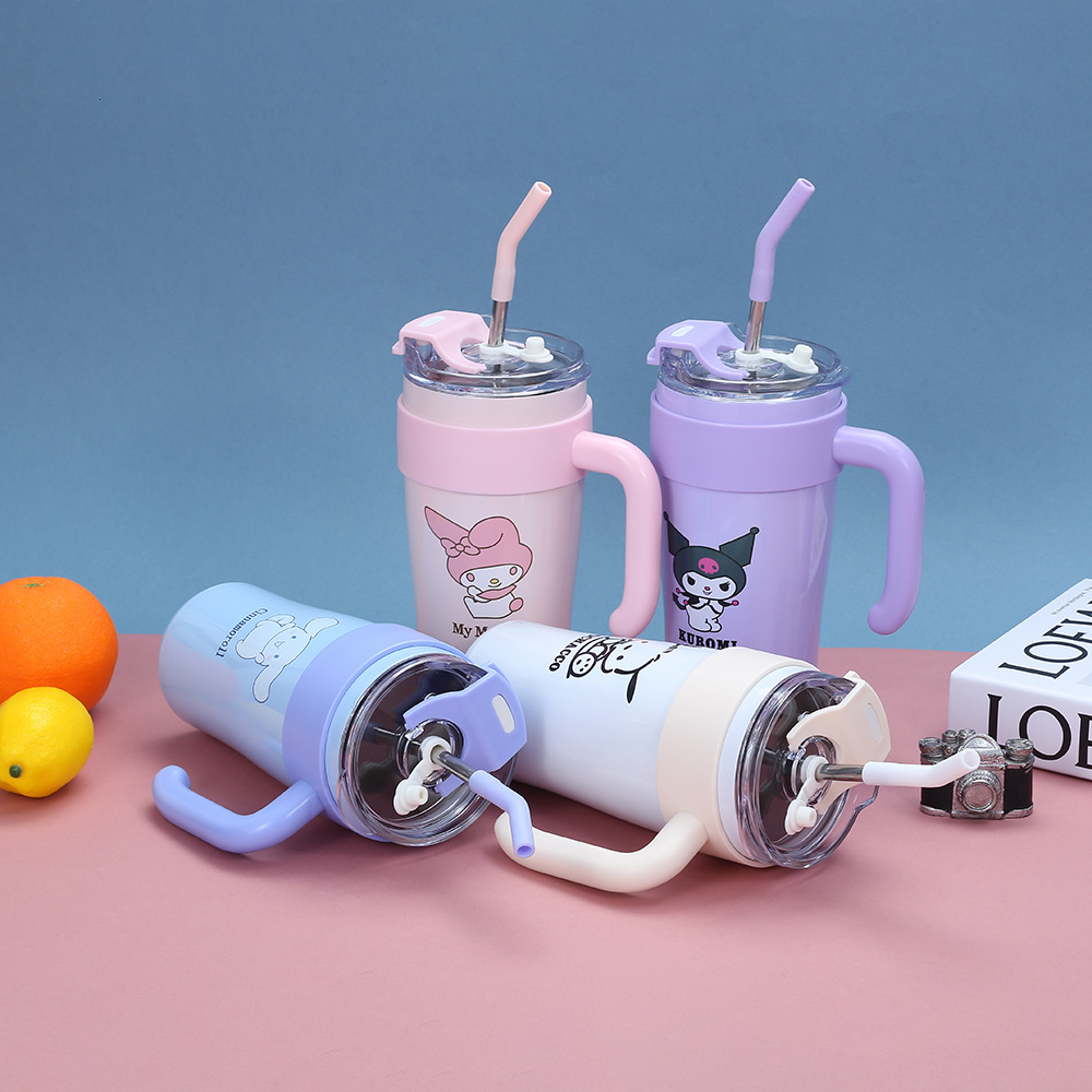 산리오 대용량 보온병 귀여운 물 컵 손잡이 휴대용 아이스 컵 높은 아름다움 가치 소녀 더블 음료 흡입 컵