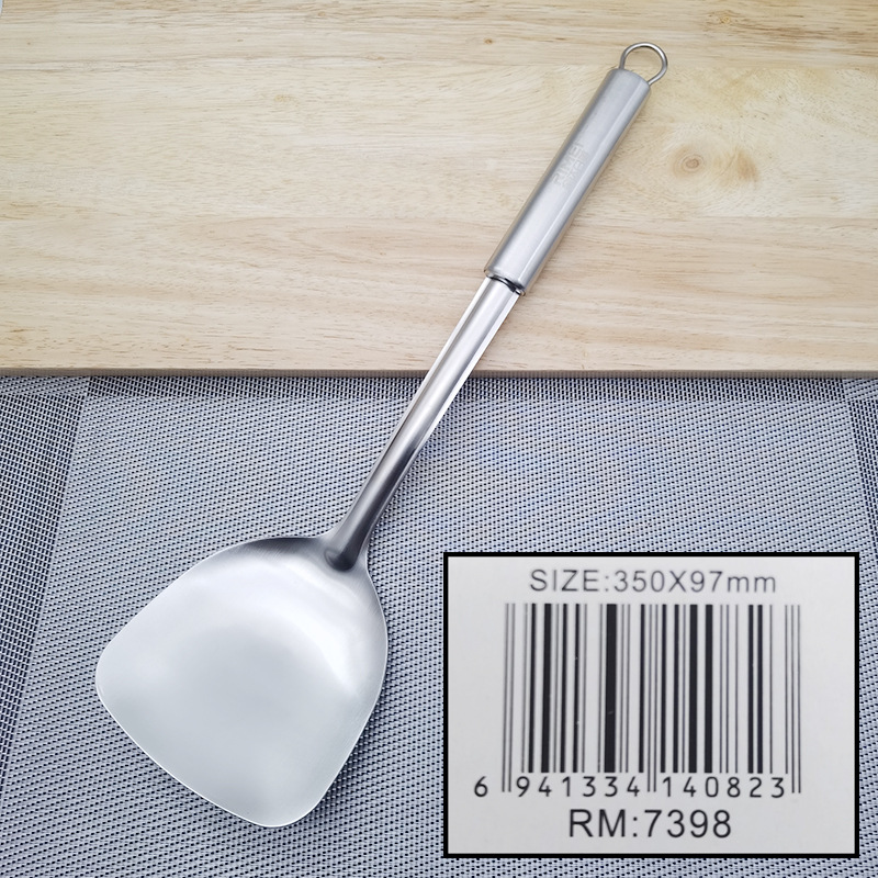 JINDA RIUS 스테인레스 스틸 두꺼운 긴 손잡이 플랫 삽 주방 가정용 볶음 볶음 튀김 철 삽 조리기구 볶음 스푼 수프 스푼
