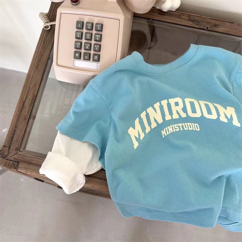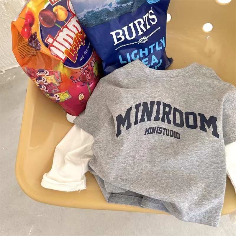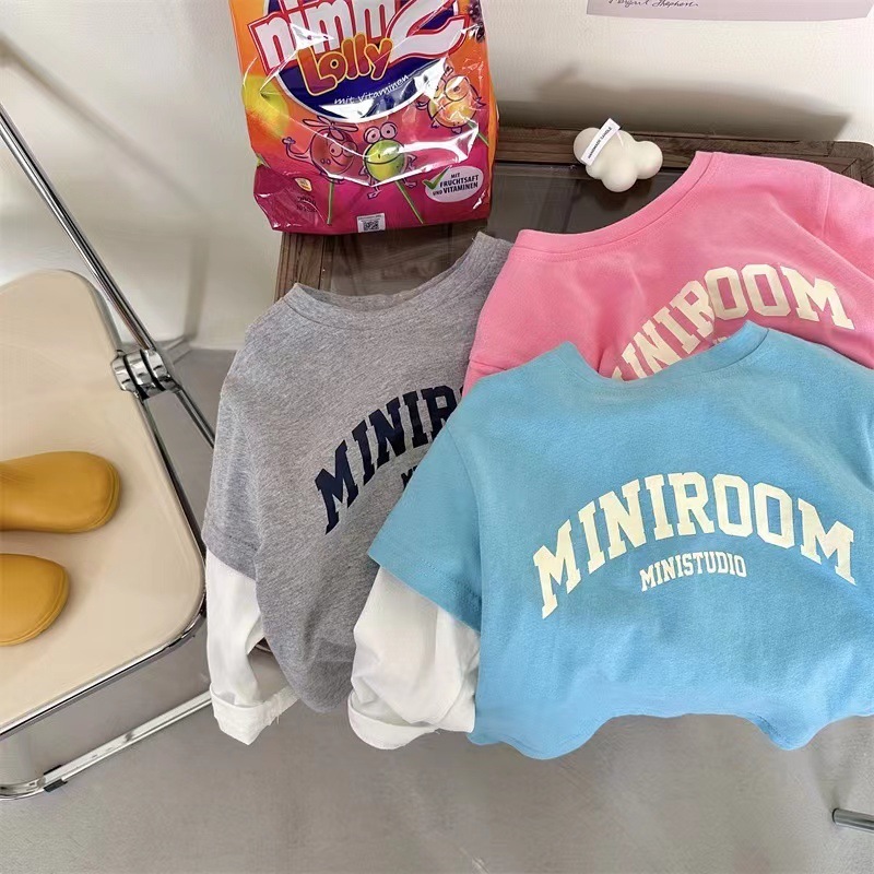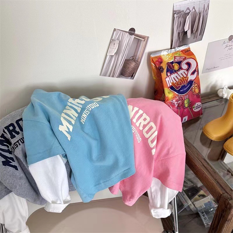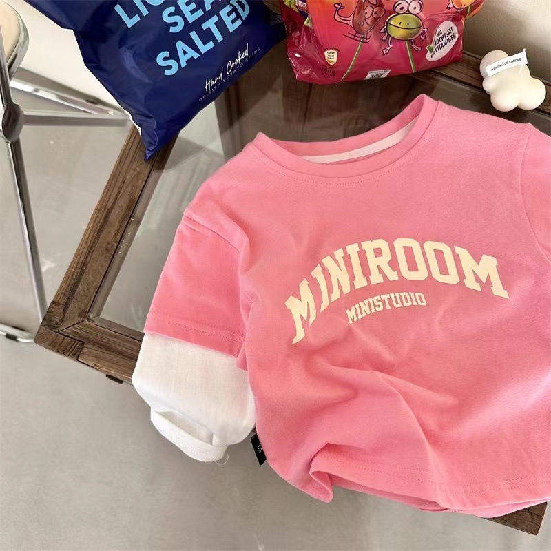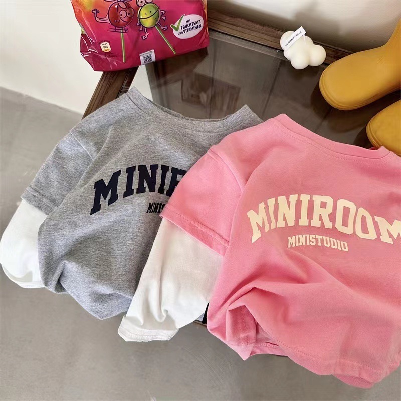 소년 소녀 가짜 2 조각베이스 셔츠 캐주얼 봄과 가을 새로운 긴 소매 티셔츠 아기 서양식 어린이 탑스토어 가기